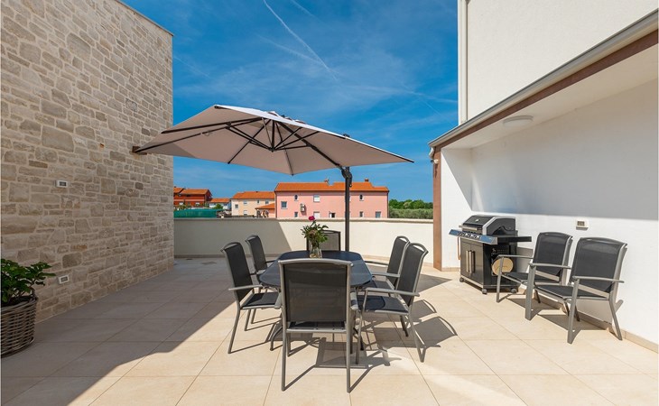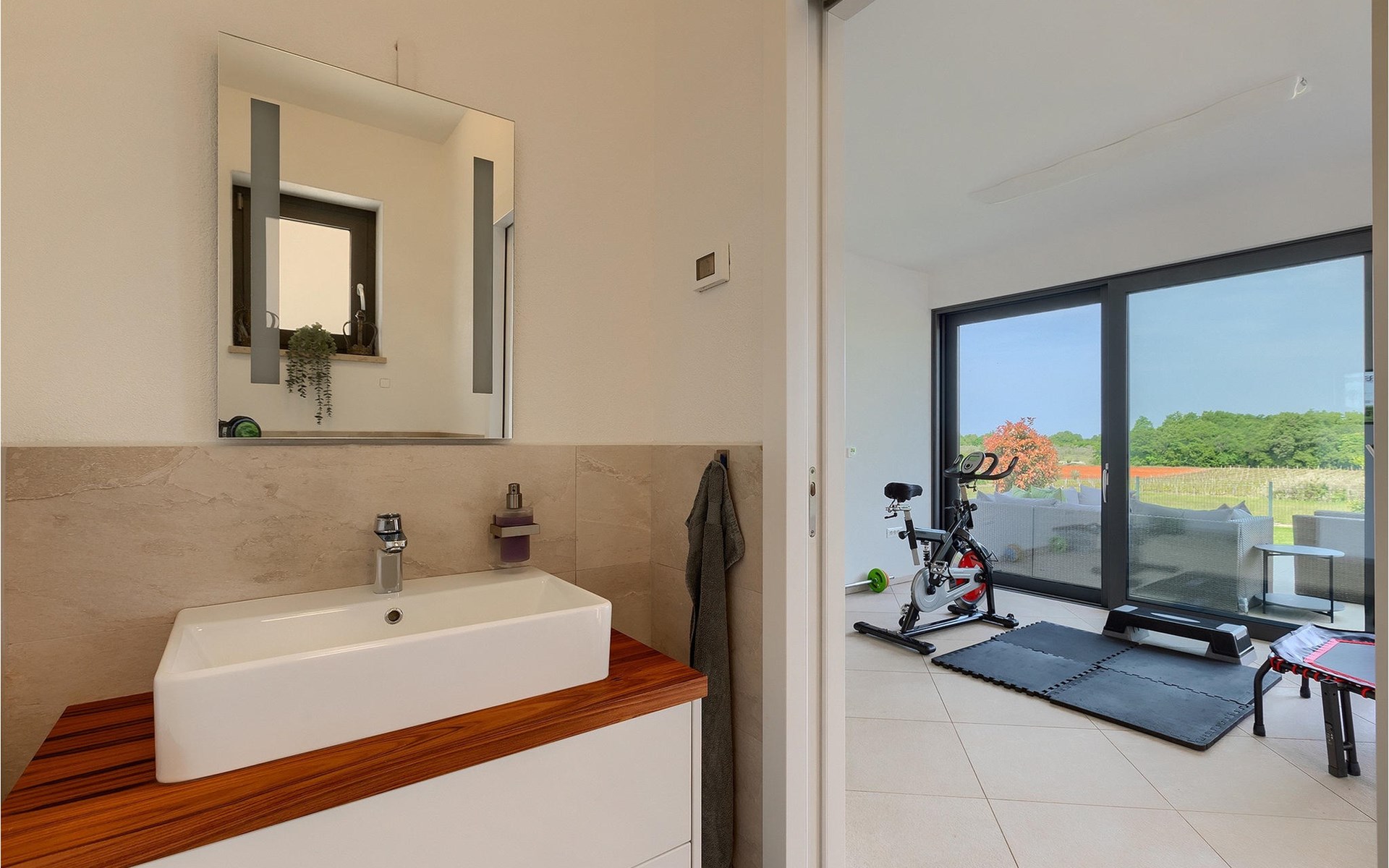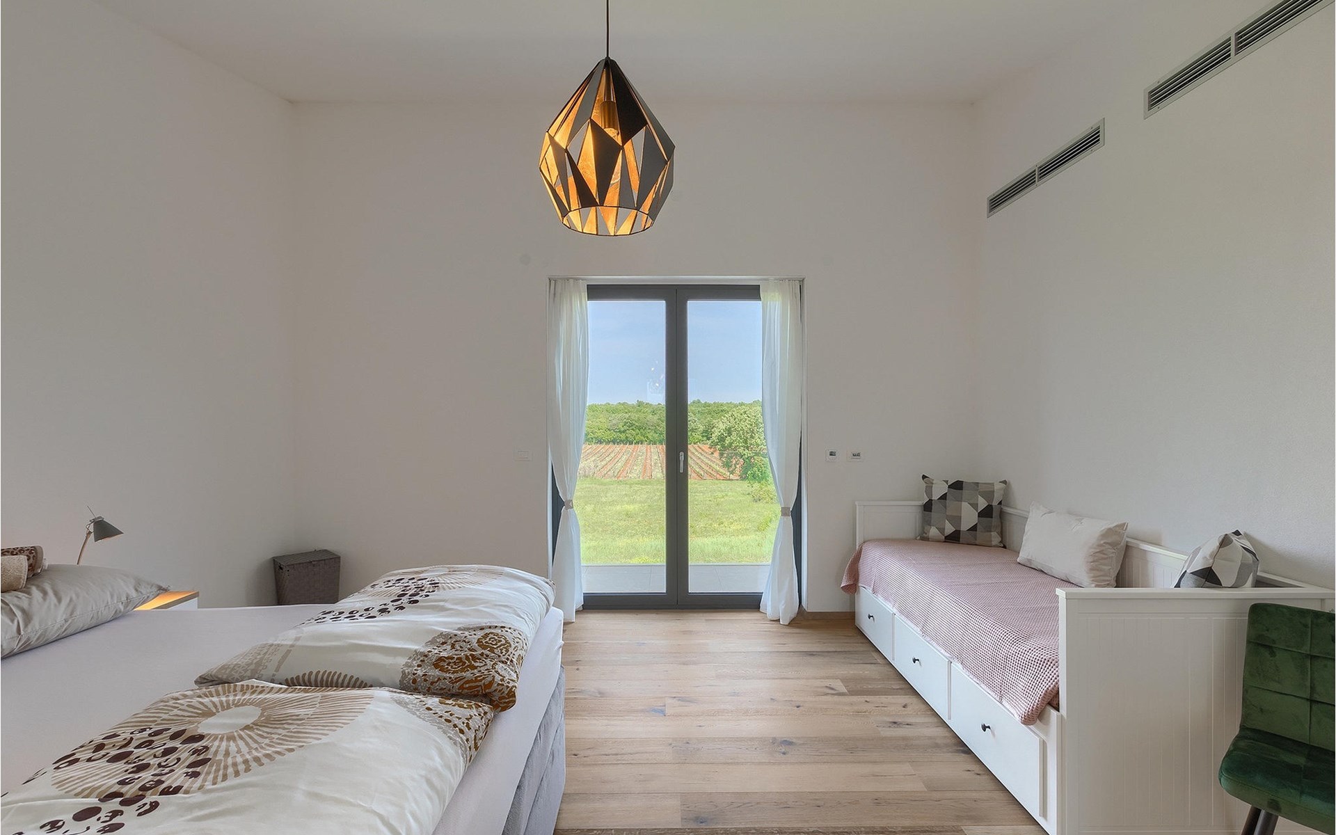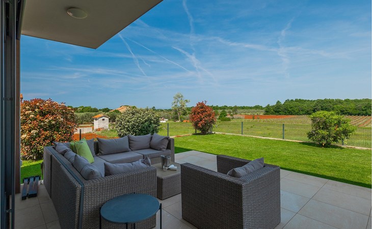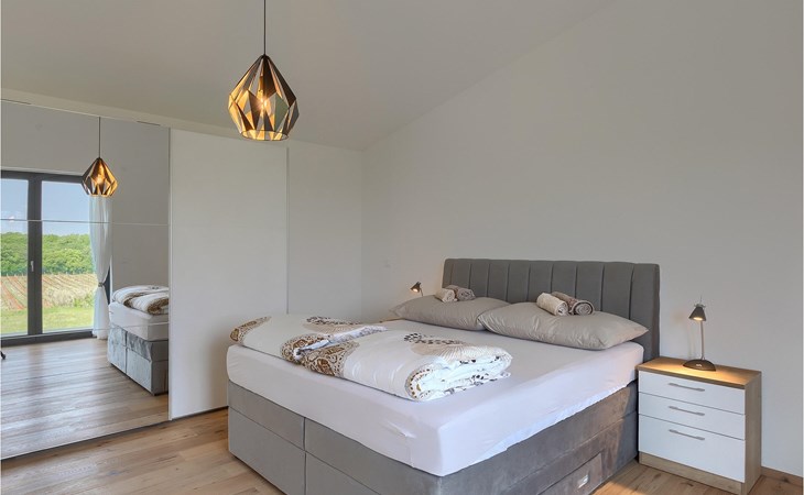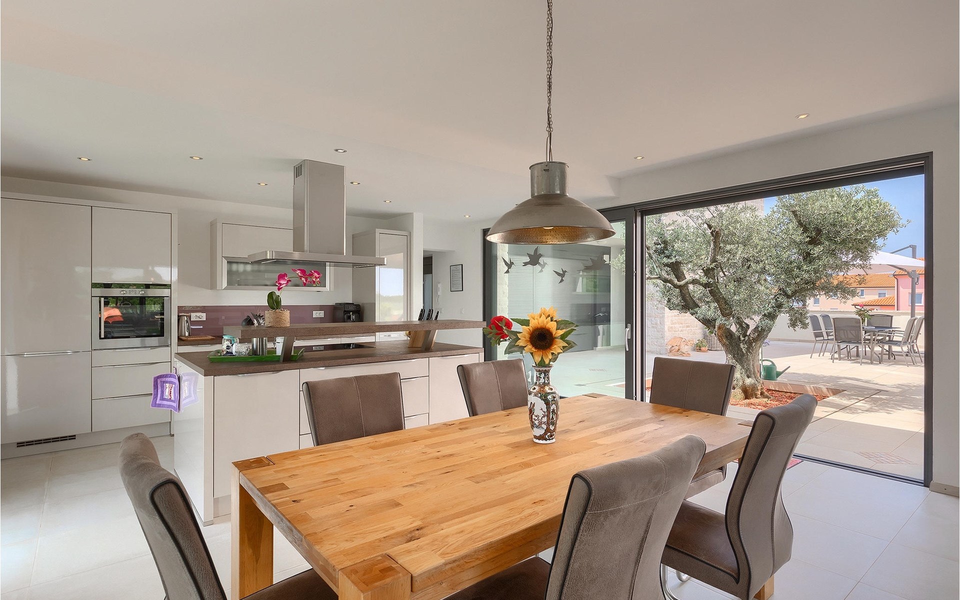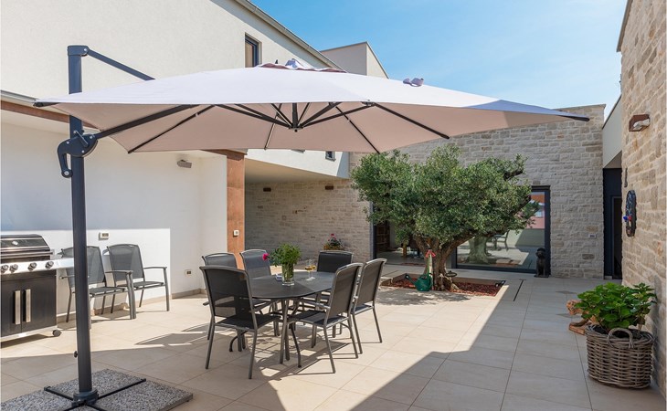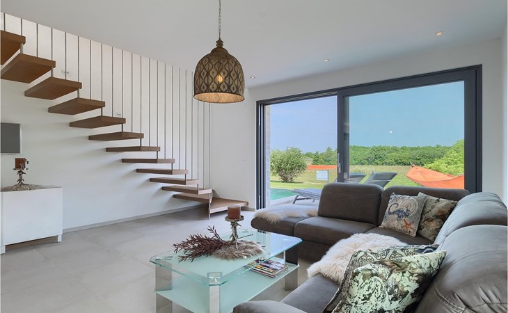 Am Stadtrand von Novigrad an der Westküste Istriens liegt die luxuriöse Villa Felice Novigrad umgeben von grüner Landschaft. Dies ist die Villa, in der Sie Ihren wohlverdienten Urlaub mit Familie und Freunden in vollen Zügen genießen können. Der absolute Hingucker ist neben dem modernen Design der Villa sicherlich der 50m2 große private Pool. Erfrischen Sie sich hier an heißen Sommertagen und lassen Sie die Seele baumeln, während Sie Ihren Blick über die grüne Umgebung schweifen lassen. Entspannen Sie auf einer der Sonnenliegen und tanken Sie die istrische Sonne.