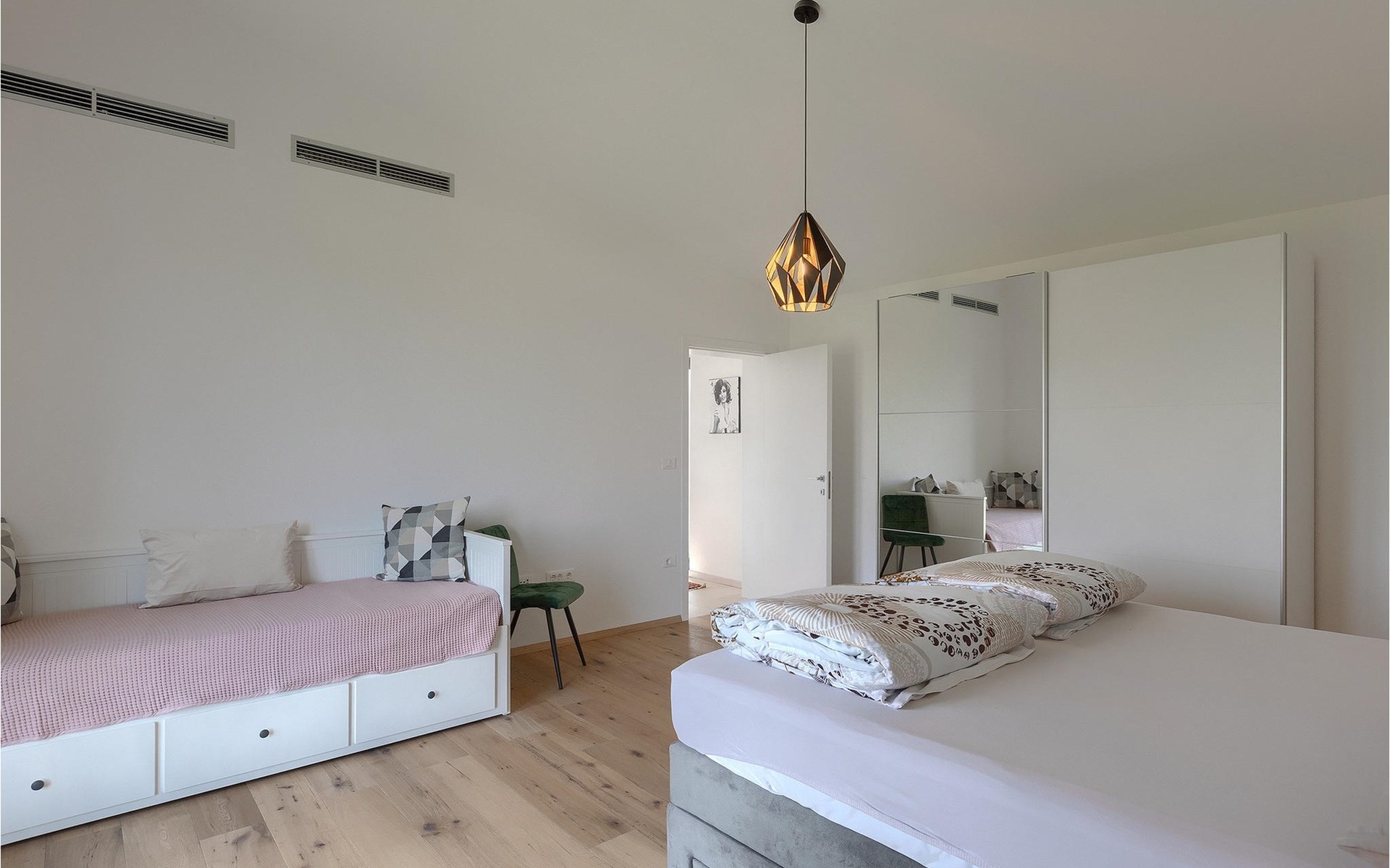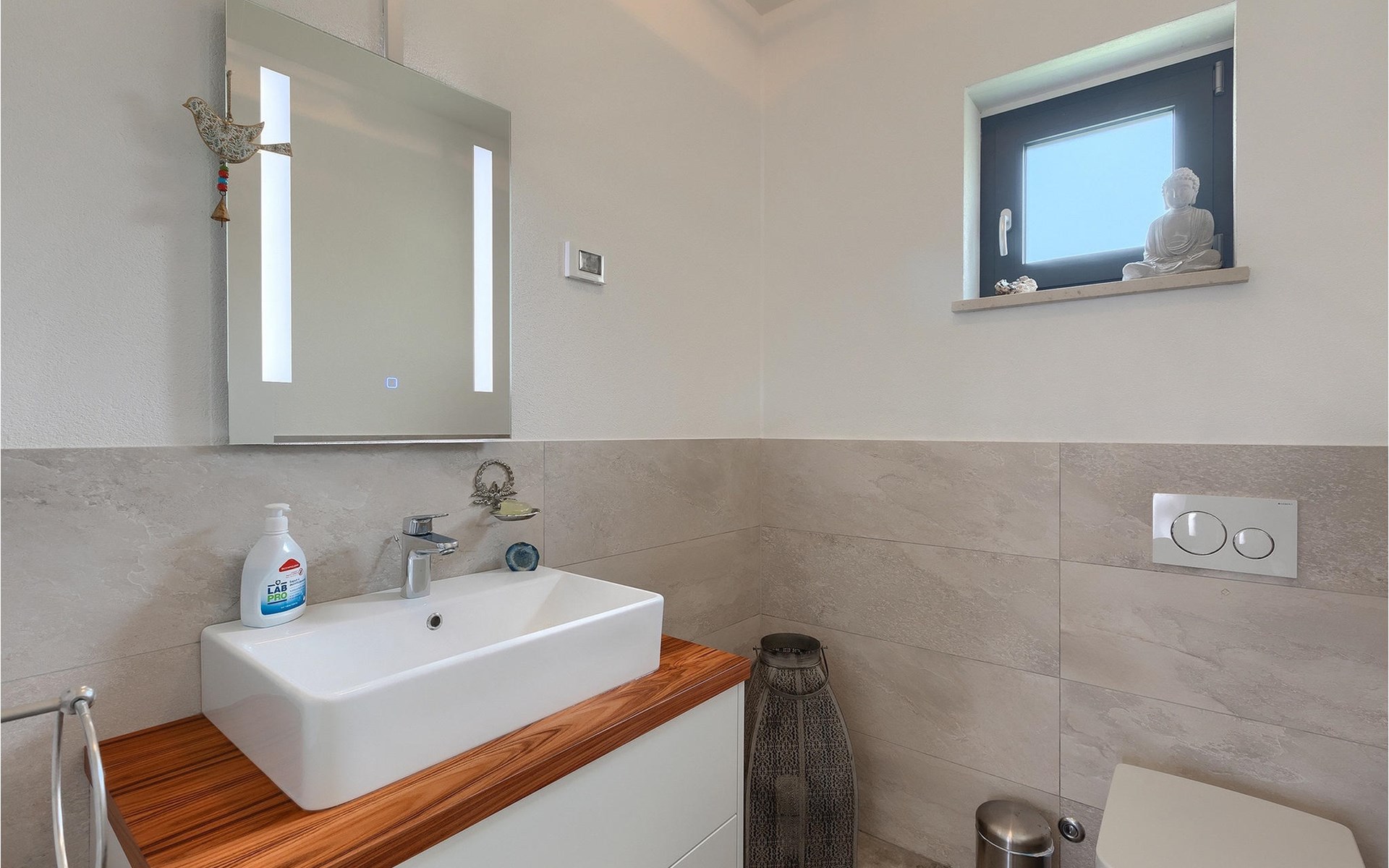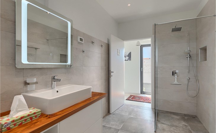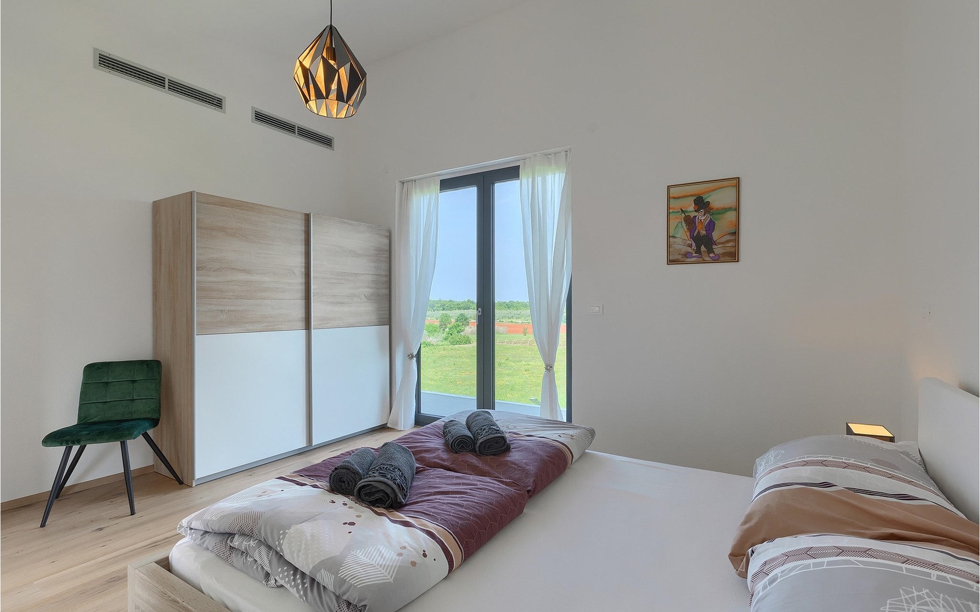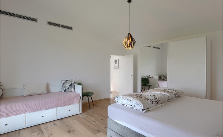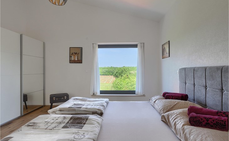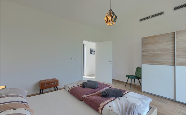 Betreten Sie das helle und offene Interieur der Villa Felice Novigrad, so befinden Sie sich im voll klimatisierten Wohn- und Essbereich mit gut ausgestatteter Küche. Die 3 großzügigen Schlafzimmer auf der oberen Etage verfügen über gemütliche Doppelbetten, die erholsame Nächte versprechen. In einem der Schlafzimmer gibt es dazu noch eine Schlafcouch für 2 Personen. Zwei der Schlafzimmer haben Zugang zum großen Balkon. Hervorzuheben ist die fantastische Lage der Villa Felice Novigrad, denn sie liegt nur 2,8km entfernt vom nächsten Kiesstrand.