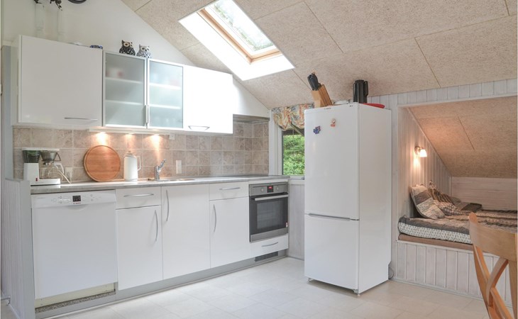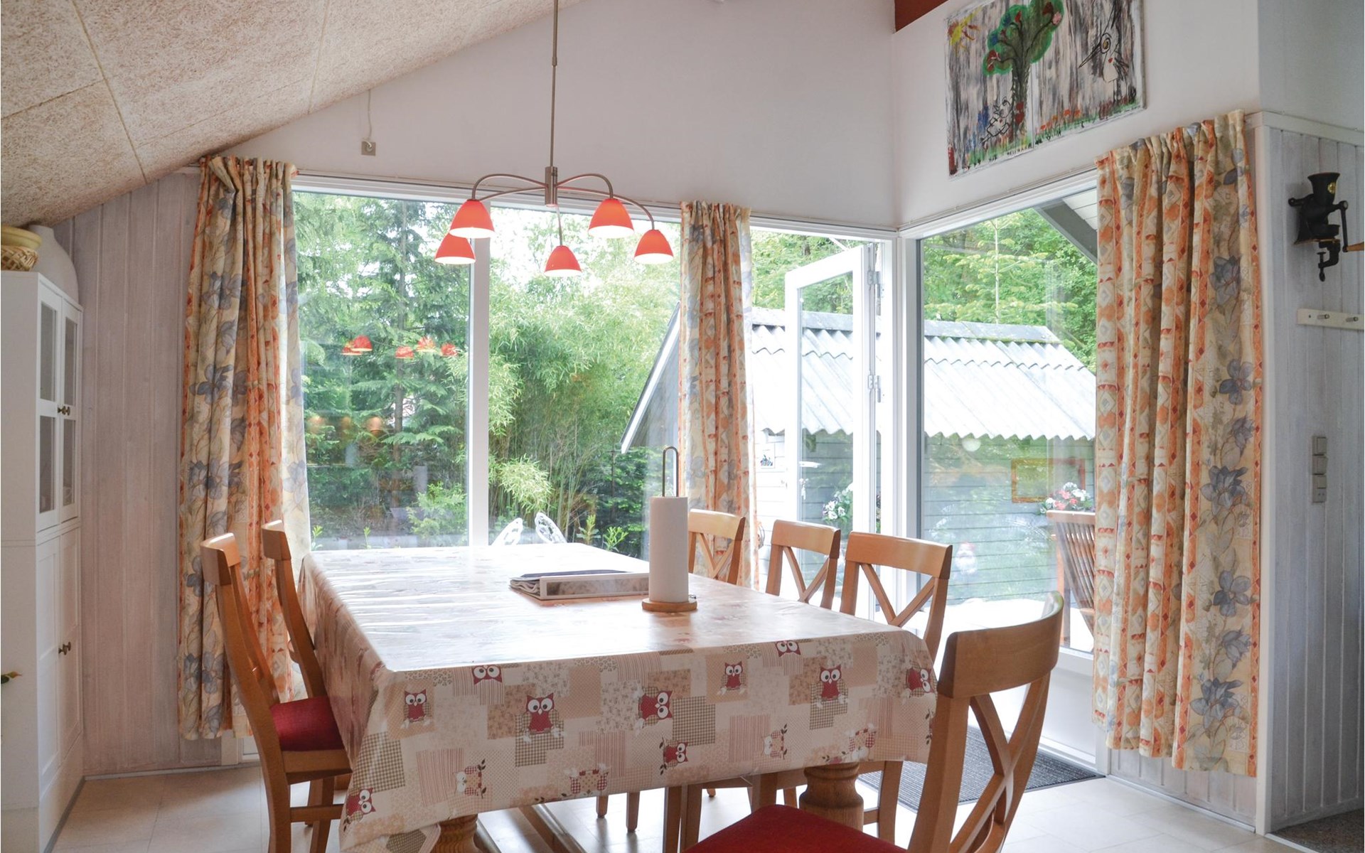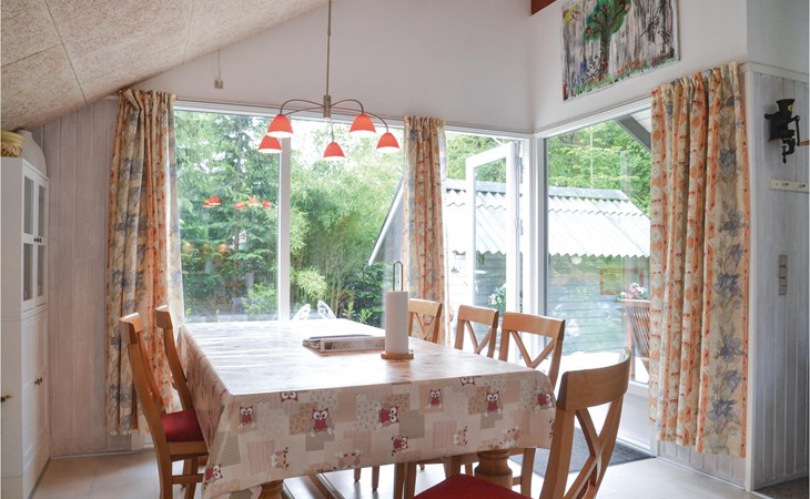 Das schöne Gebiet beim See Kvie Sø ist für seine Ruhe und unberührte Natur bekannt, hier finden Sie dieses schöne Ferienhaus auf einem geshclossenen und ungestörtenNaturgrundstück. Das Haus ist unter anderem mit einer guten Wohnküche mit Kaminofen und Alkoven eingerichtet. Die Gegend ist sehr gut für Familien mit Kindern geeignet, da man im Sommer im reinen, ruhigen und flachen Wasser des Sees mit Sandstrand sehr gut baden kann. In der Umgebung gibt es mehrere Naturpfade und bringen Sie unbedingt Ihre Fahrräder mit. Vom kleinen, gemütlichen örtlichen Restaurant, das direkt am See liegt, können Sie die Aussicht genießen. Das Angeln im Kvie Sø ist nicht erlaubt, doch die nahe gelegenen Seen und Bäche bieten sehr gute Angelmöglichkeiten. Die Stadt Ansager sowie mehrere Sehenswürdigkeiten und Attraktionen liegen nicht weit entfernt. Ebenso befindet sich das Legoland in der Nähe des Sees.