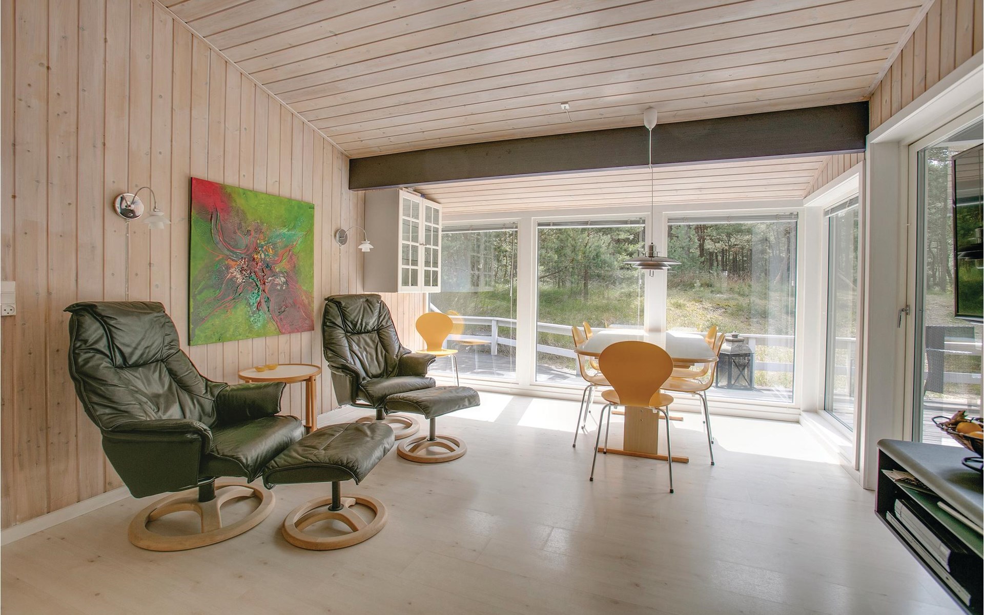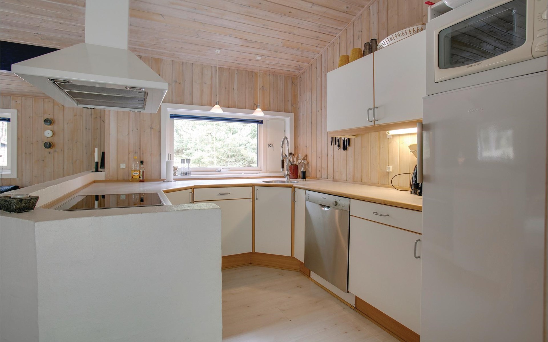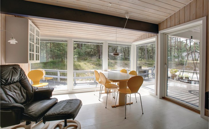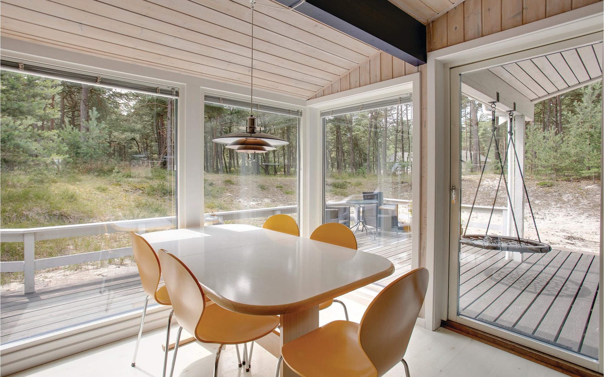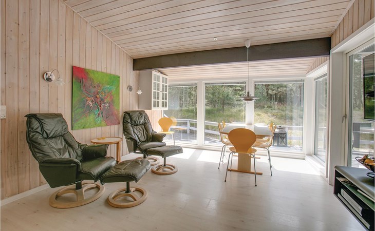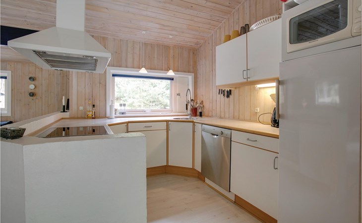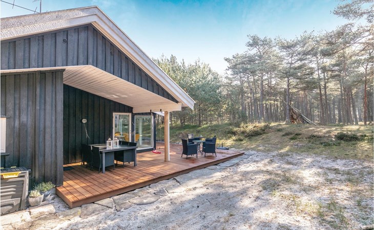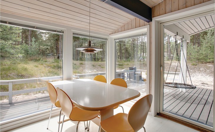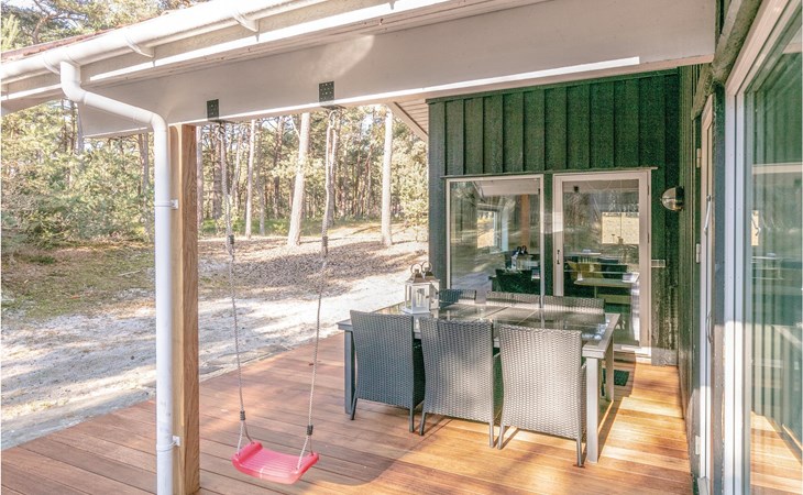 Auf einem großen Naturgrundstück, in der Nähe eines schönen Sandstrands, steht dieses gepflegte und geräumige Ferienhaus. Es wirkt insgesamt hell und modern eingerichtet, und von guter Atmosphäre geprägt. Ihre Urlaubsmahlzeiten können Sie einfach in der komplett ausgestatteten, offenen Küche zubereiten, und inzwischen kann die Familie sich im kombinierten Wohn- und Esszimmer in den komfortablen Möbeln entspannen. Der Kaminofen und die Wärmepumpe sorgen für eine angenehme Temperatur im Haus, zu jeder Jahreszeit, und im ganzen Haus haben sie gratis Internet zur Verfügung. Auf der großen Terrasse aus Holz mit schönen Gartenmöbeln, Schaukel und Grill können Sie Ihren Urlaub in vollen Zügen genießen. Ganz einfach ein herrliches Ferienhaus für einen ebenso herrlichen Urlaub.