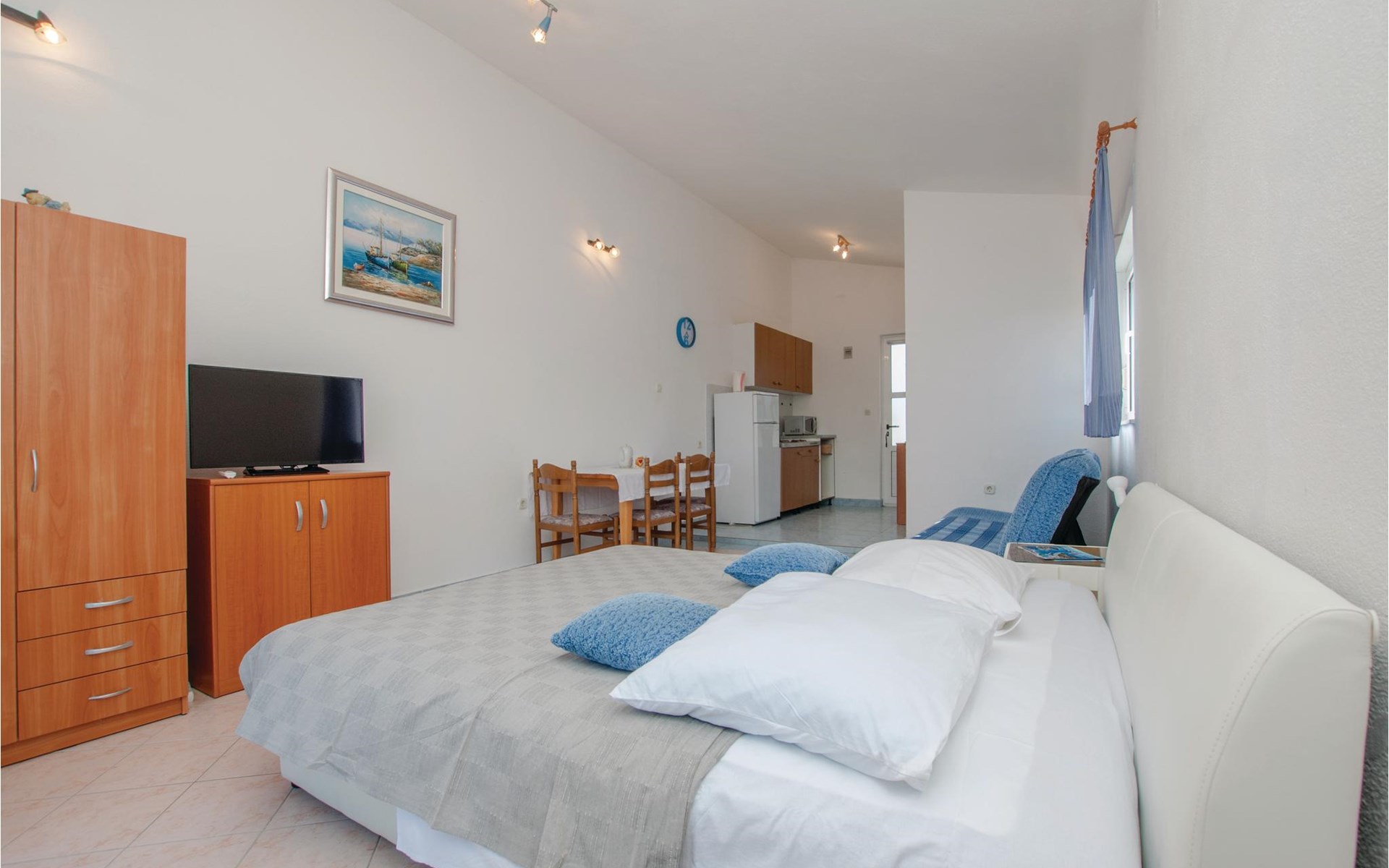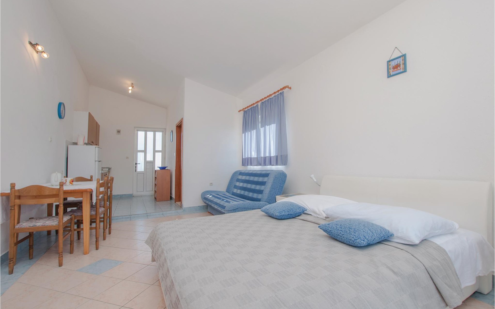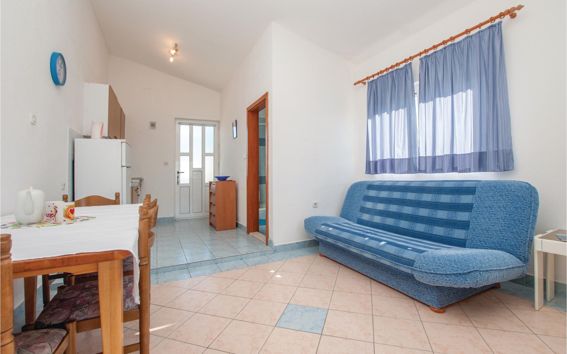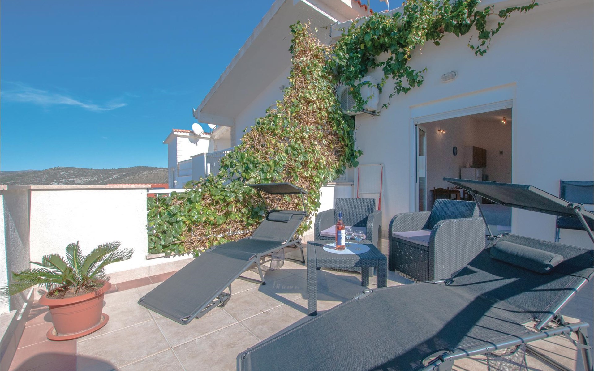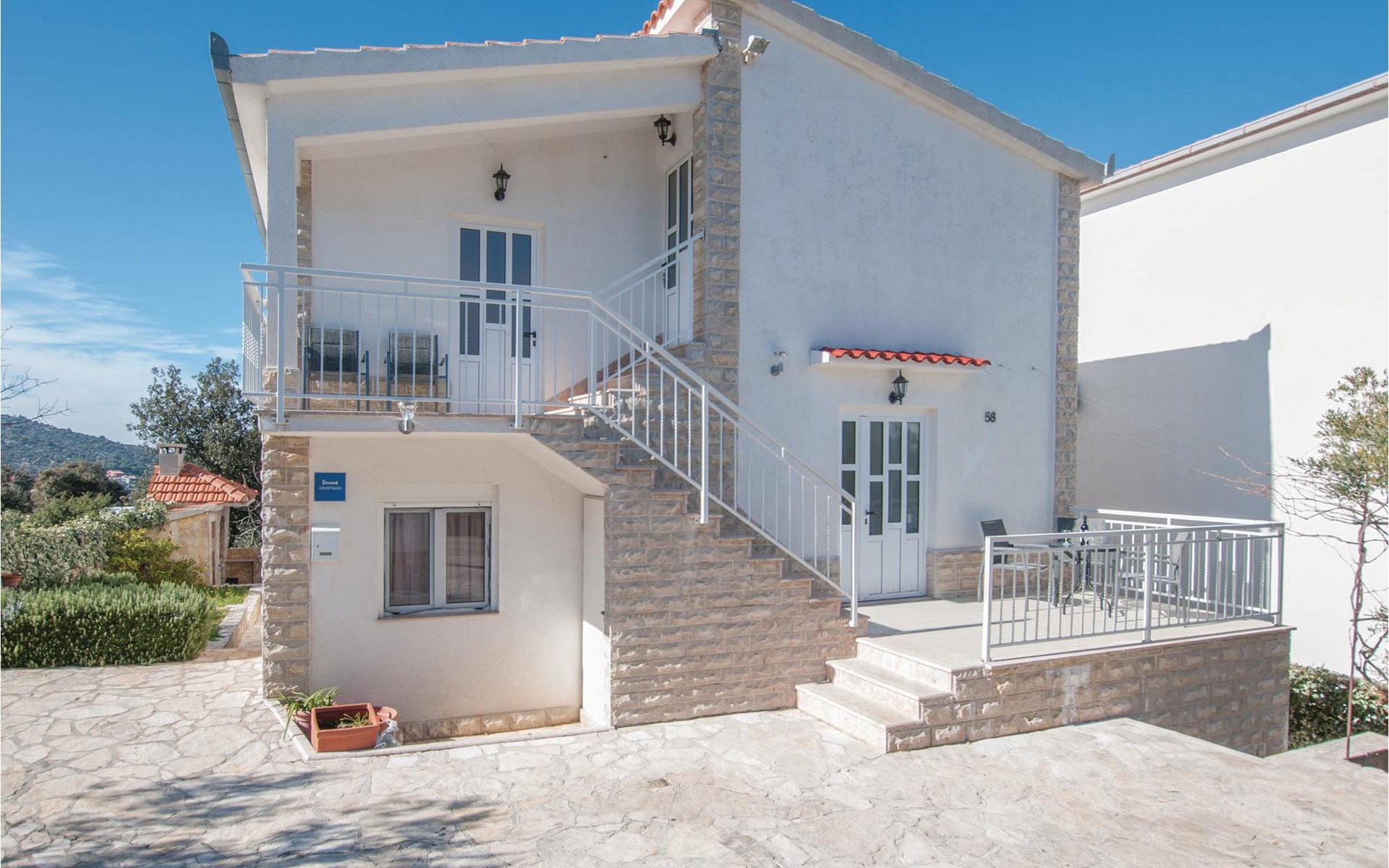 In der Bucht Mezaroca, im kleinen Ort Razanj und unweit von der Stadt Rogoznica befindet sich diese Ferienwohnung auf der ersten Etage. Diese taghelle Ferienwohnung ist modern und pragmatisch eingerichtet und ist mit vor allem mit dem nötigsten ausgestattet. Auf der schönen Terrasse haben Sie einen Panoramablick auf die ganze Bucht, wo Sie Ihren Morgenkaffee oder den Sonnenuntergang genießen können. Auf dem gemeinsamen Grundstück steht auch ein Grill, wo Sie Ihre Versuche die kroatische Küche nachzuahmen ausprobieren können.