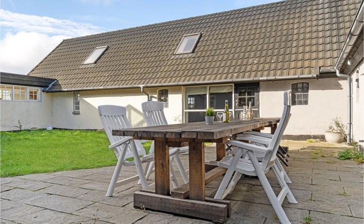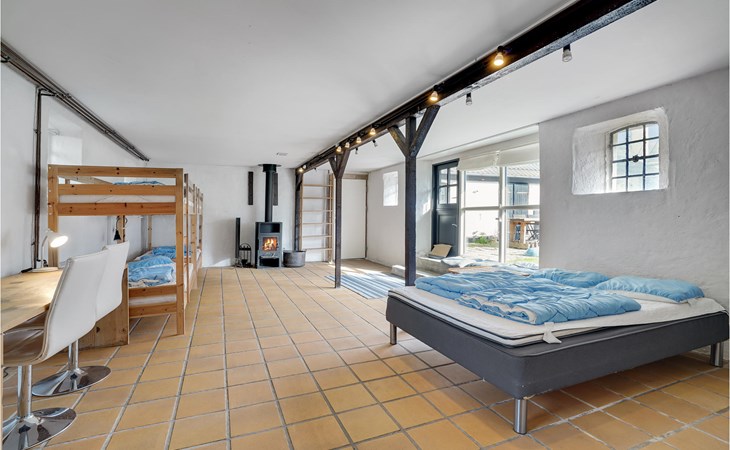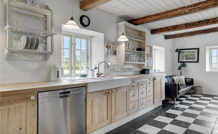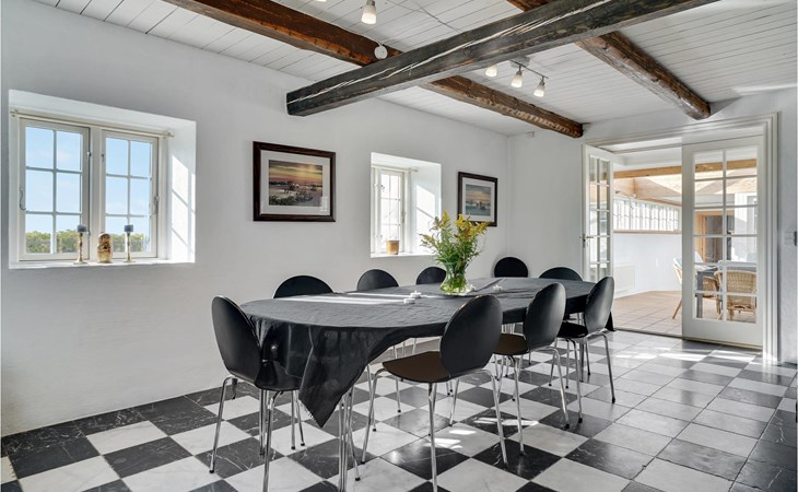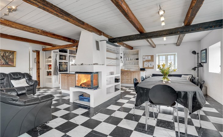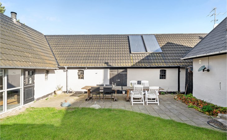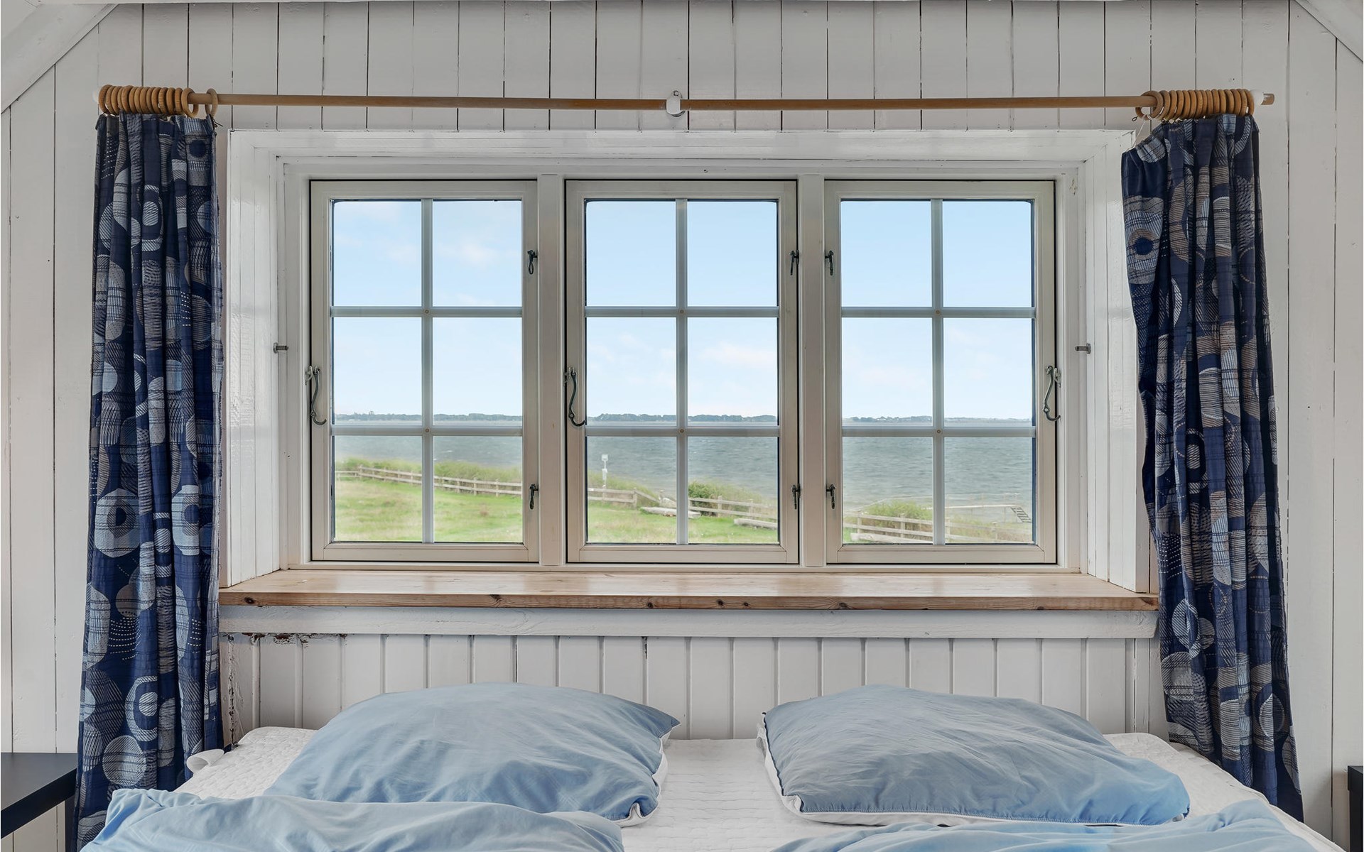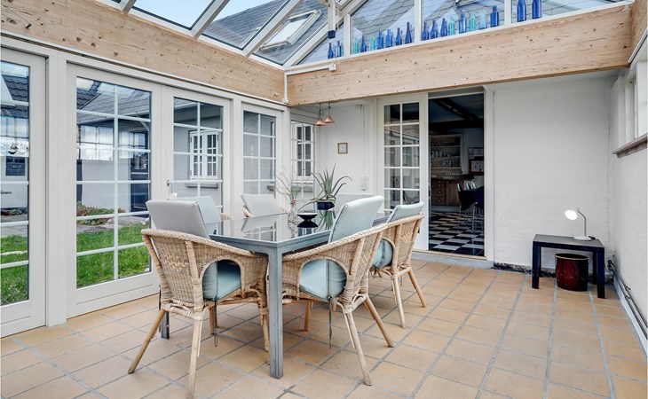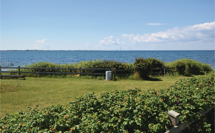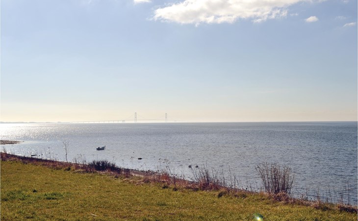 Dreiflügeliger, zum Ferienhaus umgebauter Hof/Landsitz nur 50 m von der Küste entfernt, mit einzigartiger Aussicht auf die Große Belt Brücke. Im Haus gibt es eine schöne, französisch inspirierte Wohnküche mit Kamin, wo die ganze Familie am Esstisch Platz findet. Die zwei Flügel sind durch einen Wintergarten mit viel Glas verbunden, von wo aus Sie in den Hofgarten gelangen, der das Zentrum aller Gebäude bildet. Es gibt noch eine weitere Terrasse, auf der Sie die sonnigen Tage genießen können, während der Grill angemacht wird oder ein Feuer an der Feuerstelle.