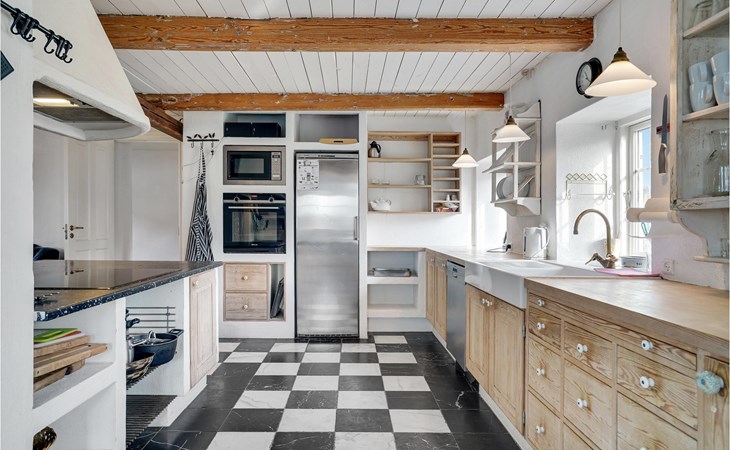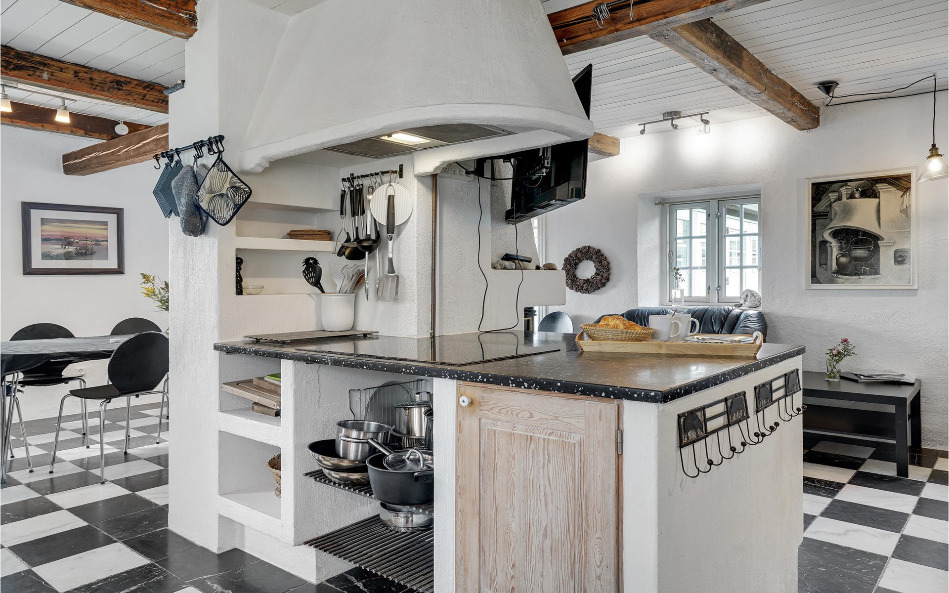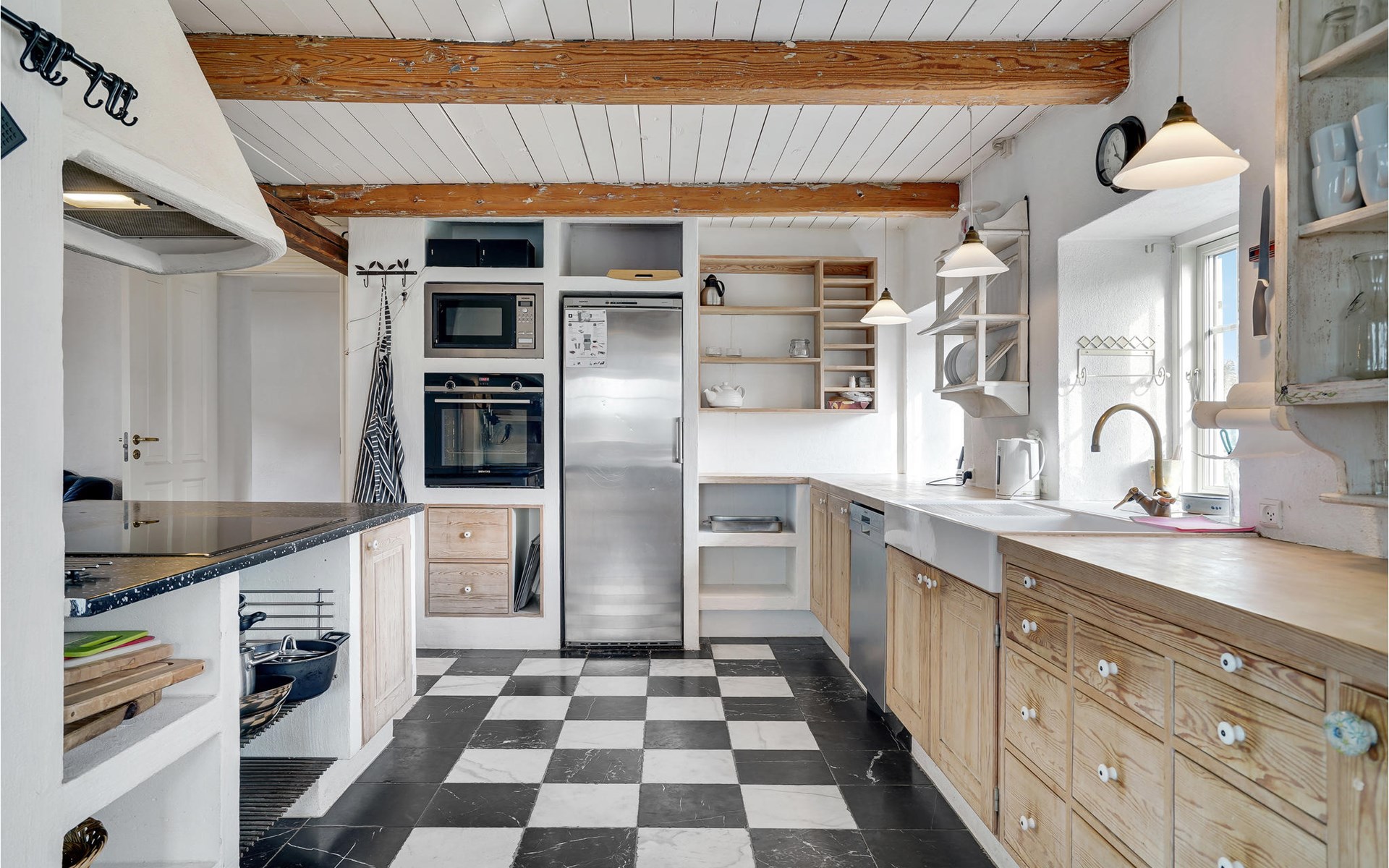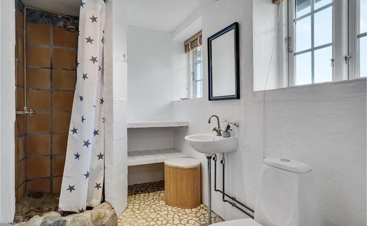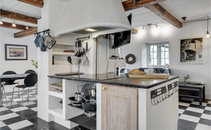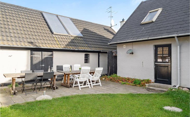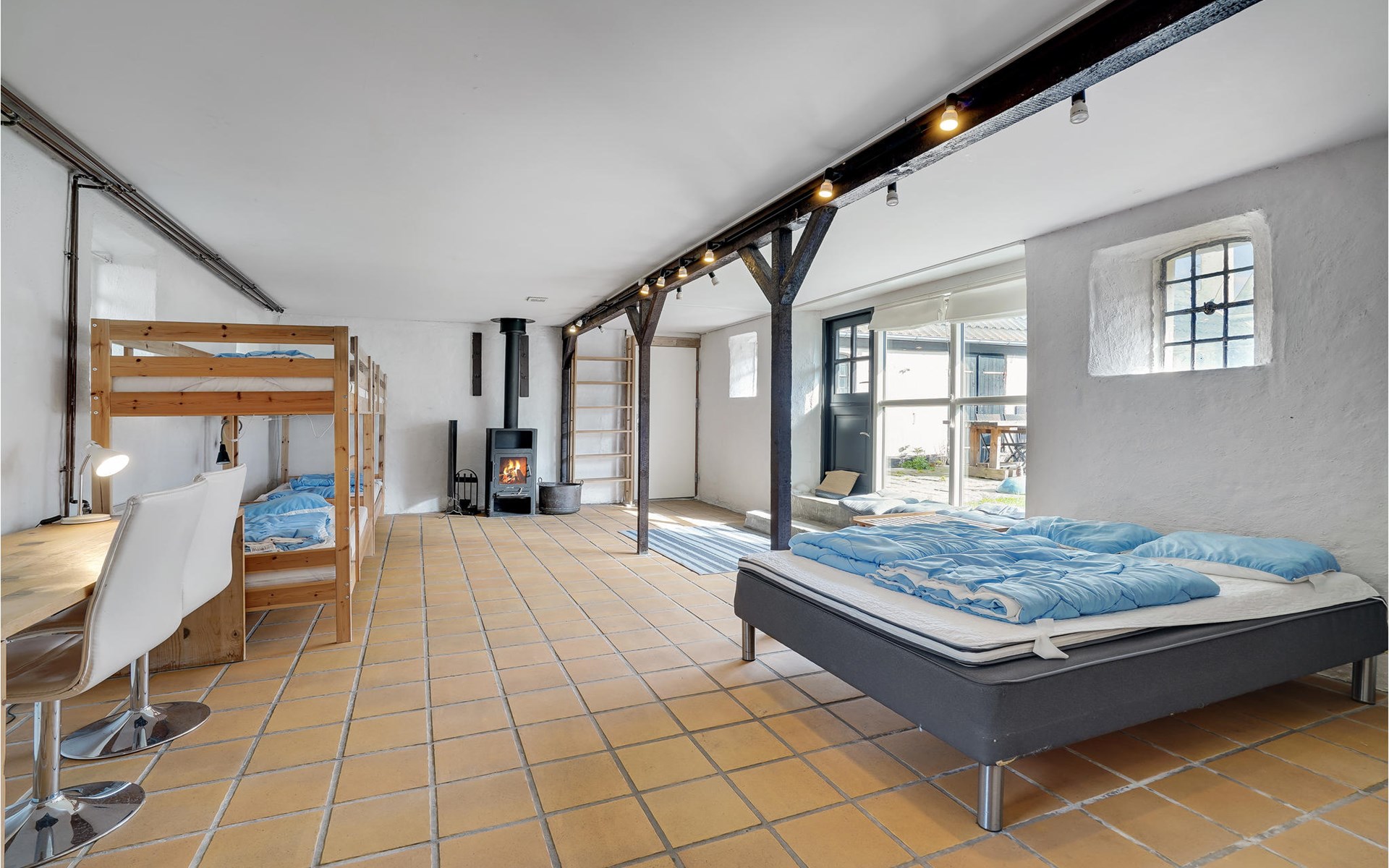 Dreiflügeliger, zum Ferienhaus umgebauter Hof/Landsitz nur 50 m von der Küste entfernt, mit einzigartiger Aussicht auf die Große Belt Brücke. Im Haus gibt es eine schöne, französisch inspirierte Wohnküche mit Kamin, wo die ganze Familie am Esstisch Platz findet. Die zwei Flügel sind durch einen Wintergarten mit viel Glas verbunden, von wo aus Sie in den Hofgarten gelangen, der das Zentrum aller Gebäude bildet. Es gibt noch eine weitere Terrasse, auf der Sie die sonnigen Tage genießen können, während der Grill angemacht wird oder ein Feuer an der Feuerstelle.
