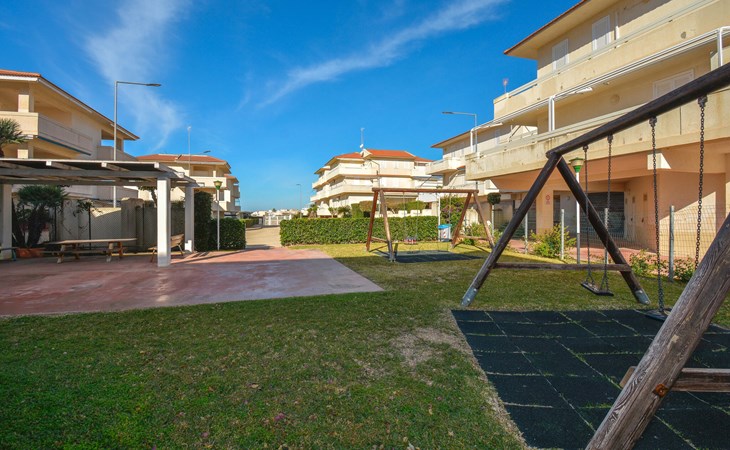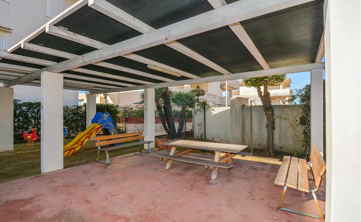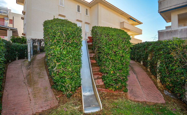 Treten Sie hinaus und machen Sie es sich auf dem Balkon gemütlich. Setzen Sie sich an den Esstisch für gemeinsame Mahlzeiten im Freien und entspannte Stunden. Lassen Sie Ihre Kinder auf dem Spielplatz mit Rutsche und Wippen toben, während Sie im Schatten auf der Terrasse zur Ruhe kommen.