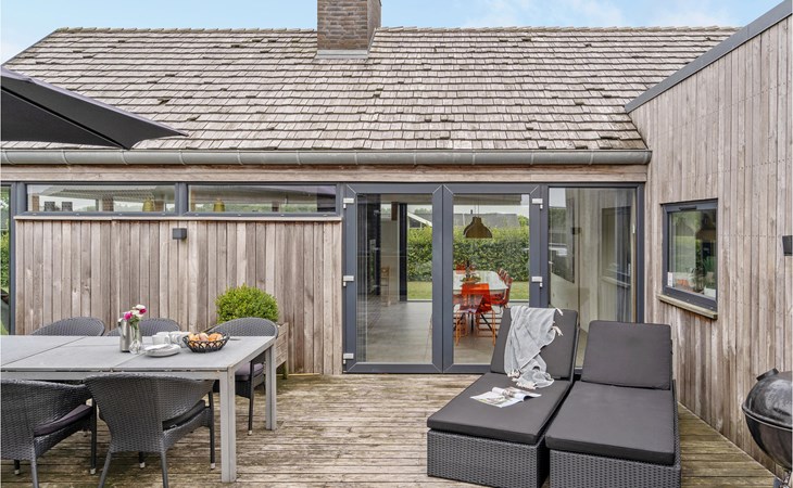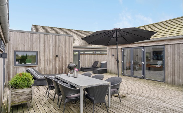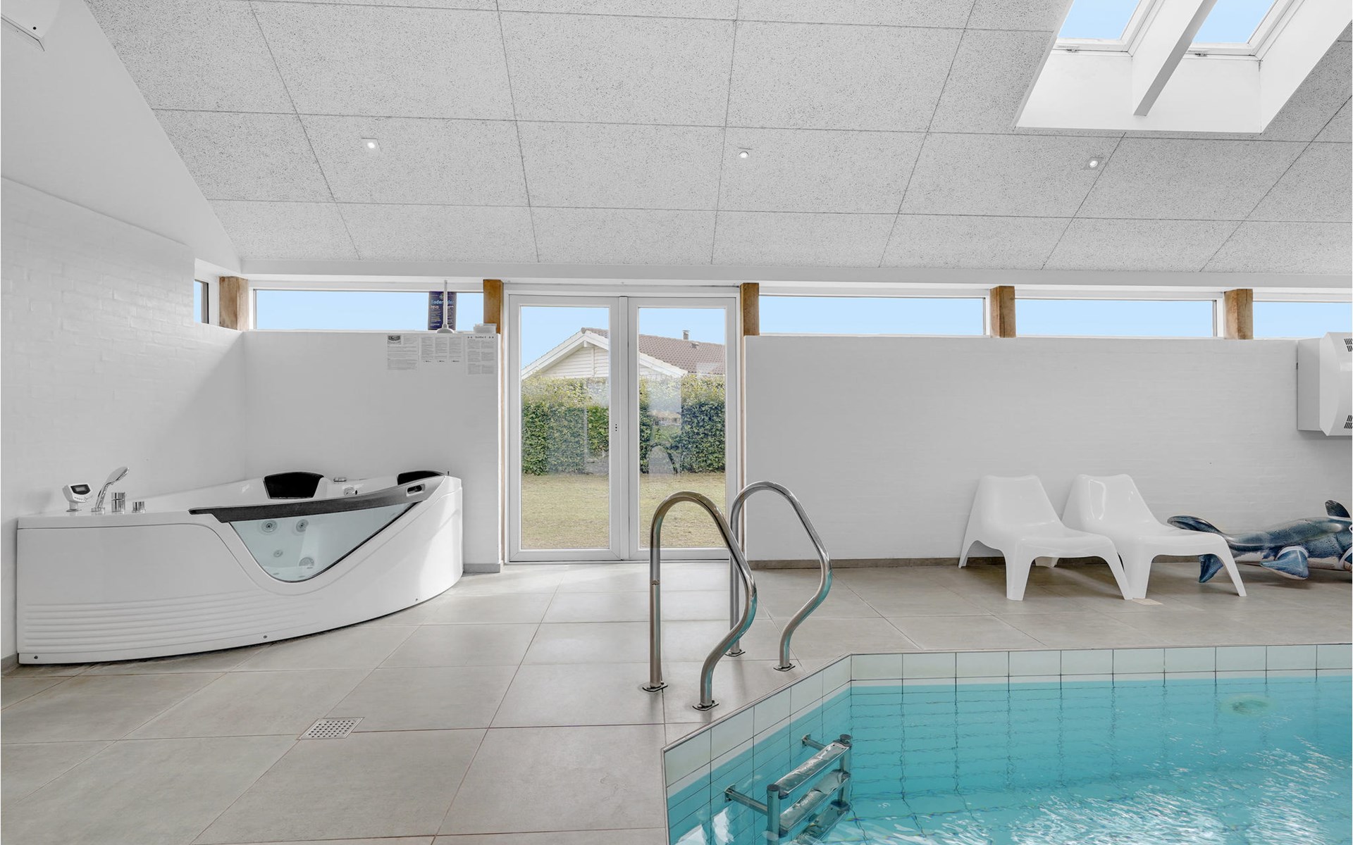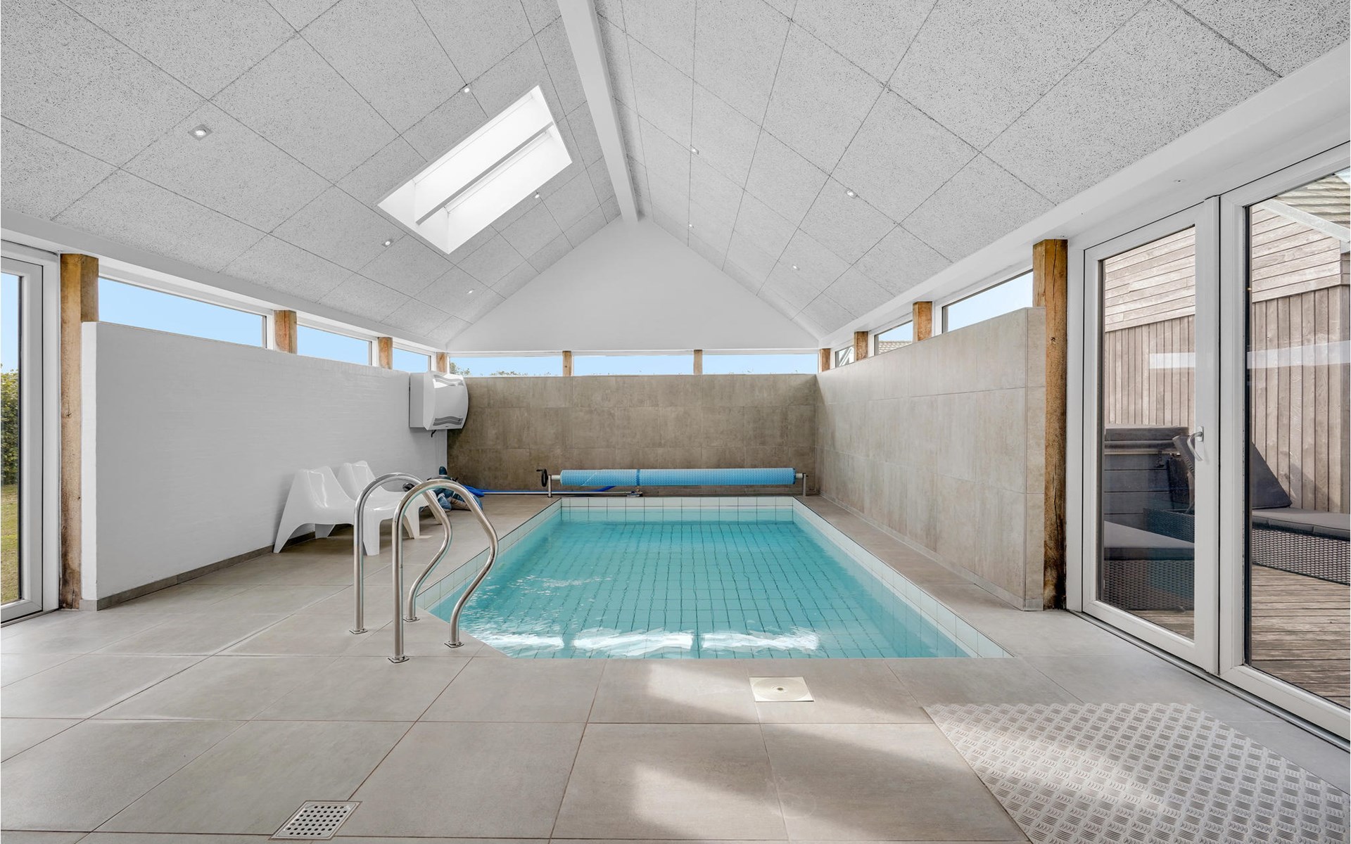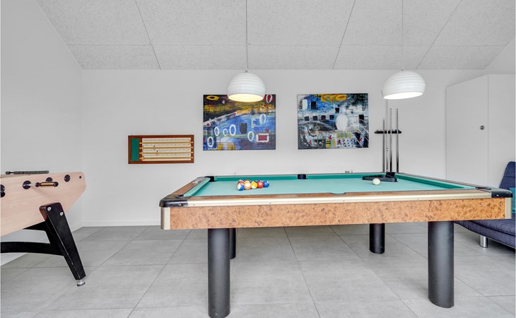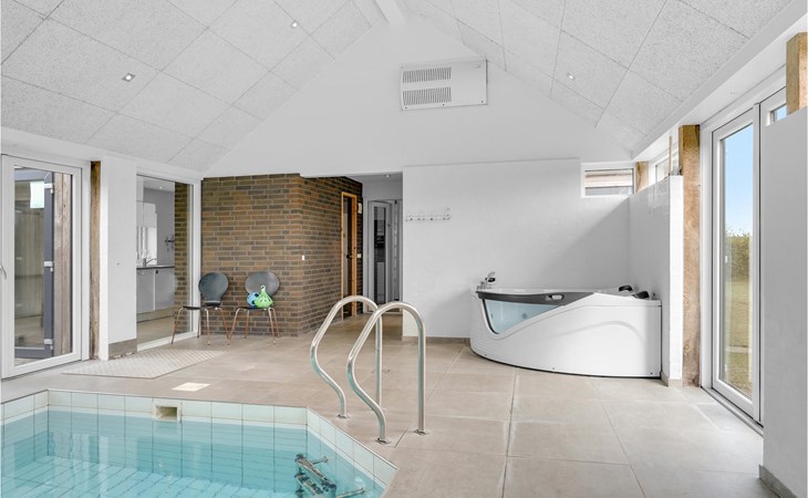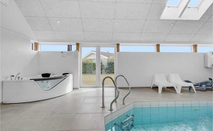 Das wunderschöne Haus erwartet Sie am Flovt Strand. Die helle Einrichtung lässt Sie sich sofort wohlfühlen, sie ist modern und behaglich. Schöne Schlafzimmer, eine geräumige Wohnküche und gute Badezimmer sorgen für viel Komfort. Im großen Pool können sie ganz unabhängig vom Wetter das Wasser genießen. Sie entspannen in der Sauna, geben sich der Unterwassermassage hing, willkommen zum Ausspannen. Im separaten Aktivitätsbereich mit Tischfußball, Pool und mehr, wird dafür gesorgt, dass Ihnen bestimmt nie langweilig wird. Im Garten gibt es Spielgeräte für die Kinder und einen Außen-Whirlpool. Auch die Terrasse lässt Urlaubsfeeling aufkommen. Das Haus liegt ganz nah am absolut besten Badestrand der Gegend. In dem Ferienhausgebiet werden viele Häuser gebaut, es kann deshalb zu Baustellenlärm kommen.