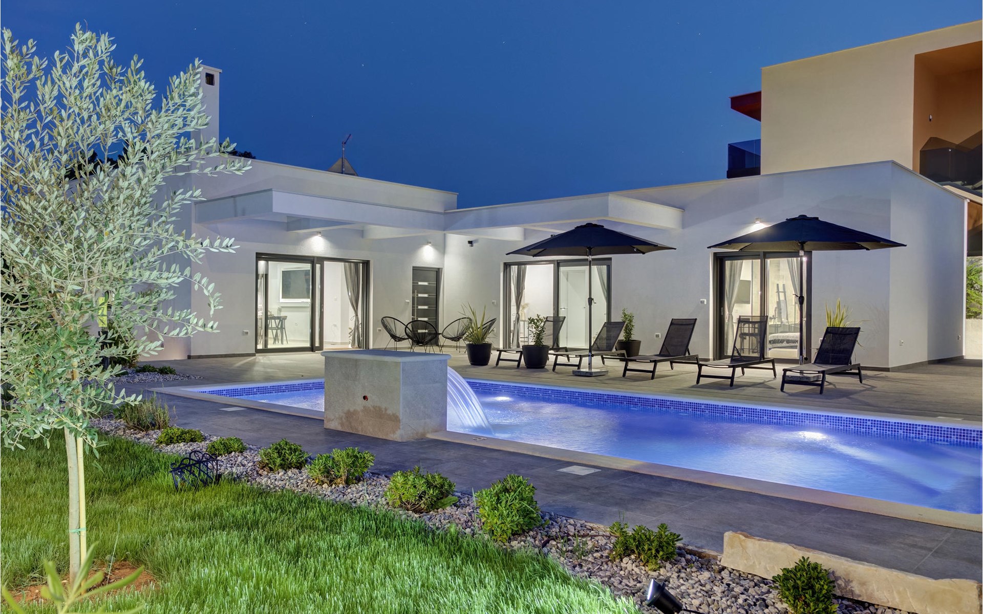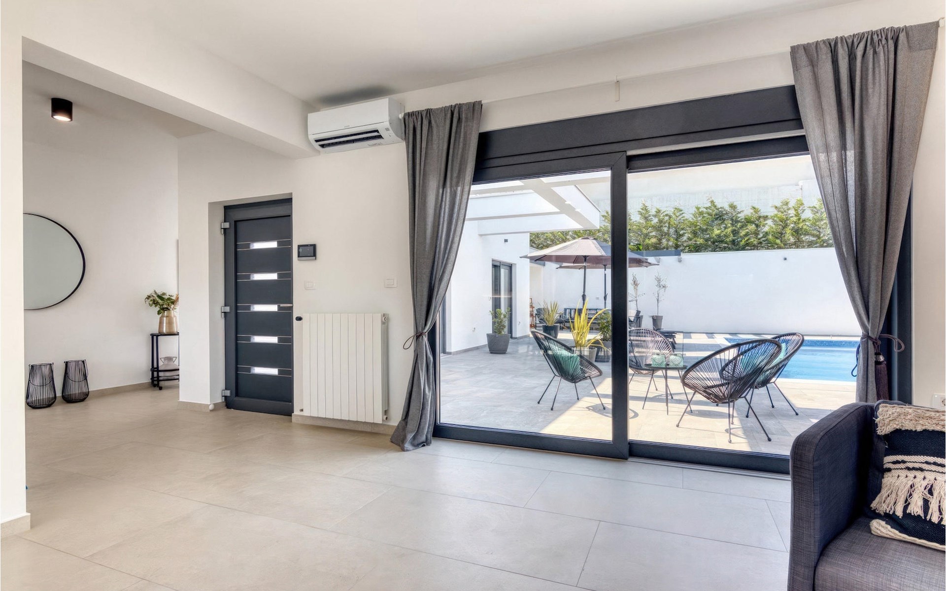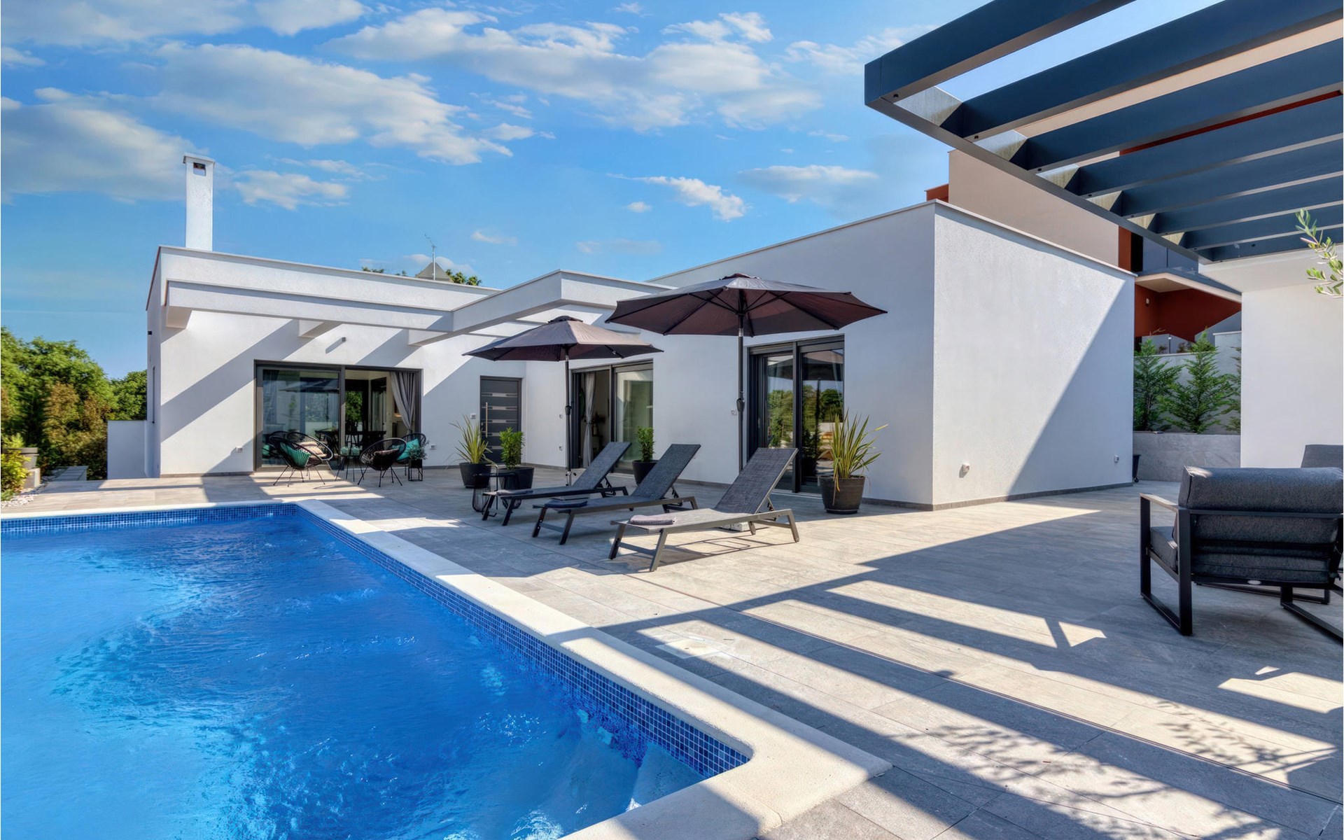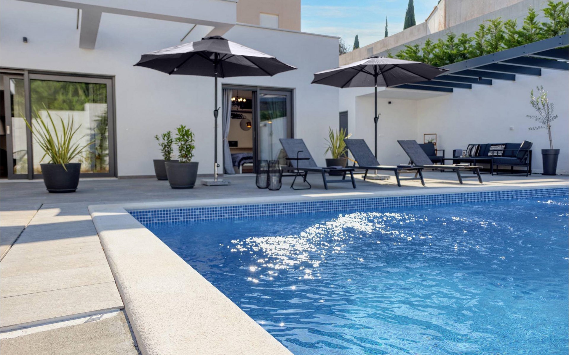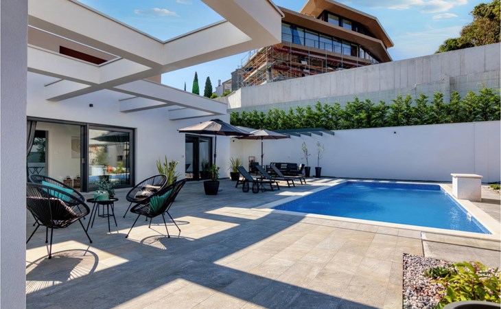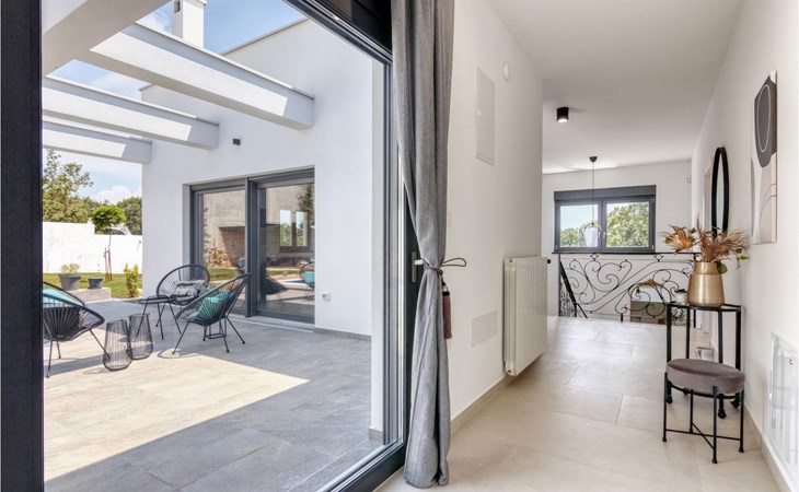 Villa Design M ist eine wunderschöne Villa mit modernem Design in der Nähe von Pula. Die Villa verfügt über einen komplett eingezäunten Garten, sodass Sie während Ihres Urlaubs absolute Privatsphäre genießen können. Vor der Villa befindet sich ein wunderschöner Pool von 36 m2, umgeben von viel Grün. Erfrischen Sie sich darin während der Sommerhitze. Schaffen Sie unvergessliche Erinnerungen durch geselliges Beisammensein im überdachten Bereich am Pool. Ganz am Eingang der Villa befindet sich der erste entspannende Raum mit viel Tageslicht, einem Doppelbett und einem eigenen Badezimmer. Im Erdgeschoss der Villa gibt es auch eine Waschküche. Treppen mit Spiralmotiven wirken edel und verbinden das Erdgeschoss mit dem ersten Stock. Im ersten Stock befinden sich drei komfortable Schlafzimmer mit Doppelbetten und eigenem Bad. Auf dieser Etage befindet sich eine voll ausgestattete Küche, die alles für die Zubereitung köstlicher traditioneller Gerichte wie schwarzes Risotto oder Brudet bietet. Verbringen Sie Zeit in angenehmer Atmosphäre im Esszimmer oder Wohnzimmer im ersten Stock der Villa. Verpassen Sie nicht einen Urlaub in der Villa Design M und gönnen Sie sich ein istrisches Abenteuer in Pjescana uvala. Pjescana uvala ist ein Dorf südlich von Pula in der Gemeinde Medulin. Es ist bekannt für seinen wunderschönen Sand- und Kiesstrand, ideal für einen ganztägigen Aufenthalt im Freien mit Familie oder Freunden in mediterraner Atmosphäre. Entlang der Küste gibt es zahlreiche ausgezeichnete gastronomische Einrichtungen und verschiedene touristische Einrichtungen, die Sie unbedingt besuchen sollten. Verpassen Sie nicht, den Waldpark Soline zu besuchen, der für seinen Steineichenwald, einen wunderschönen Aussichtspunkt mit Blick auf die istrischen Inseln und die blaue Adria sowie die Bildungs- und Freizeitpromenade bekannt ist, die zum ältesten Steinbruch Istriens führt. Der Brijuni-Nationalpark mit seinem beliebten Safaripark ist ein Muss. Nur 6 km von Pjescana uvala entfernt liegt Pula, die größte Stadt Istriens, wo Sie die Pula-Arena, den Augustus-Tempel, das Goldene Tor und viele andere kulturelle und historische Denkmäler besichtigen können. Die Temperatur des beheizten Schwimmbades hängt von äußeren Faktoren, einschließlich der Wetterbedingungen, ab und daher kann die Wassertemperatur nicht garantiert werden.