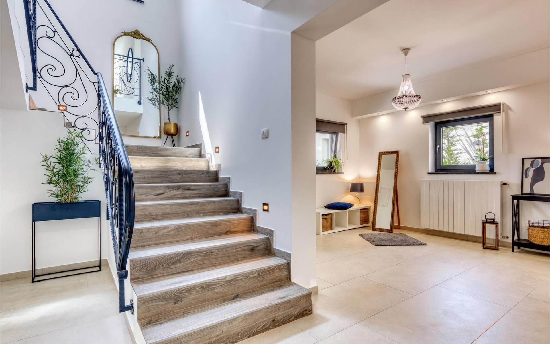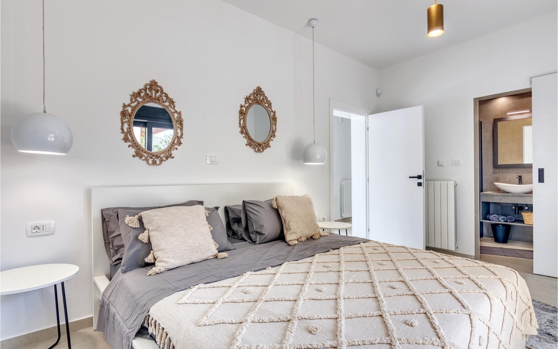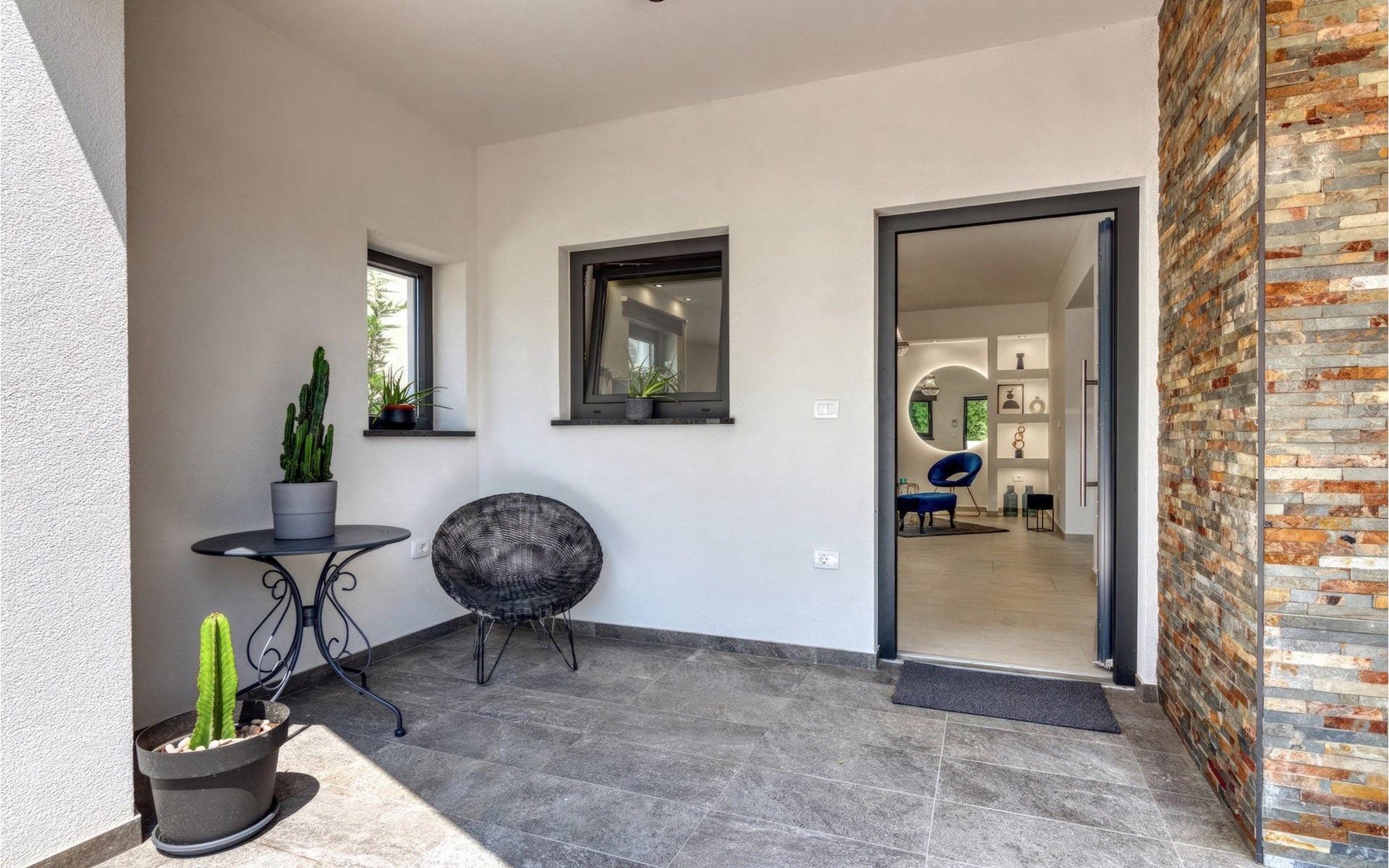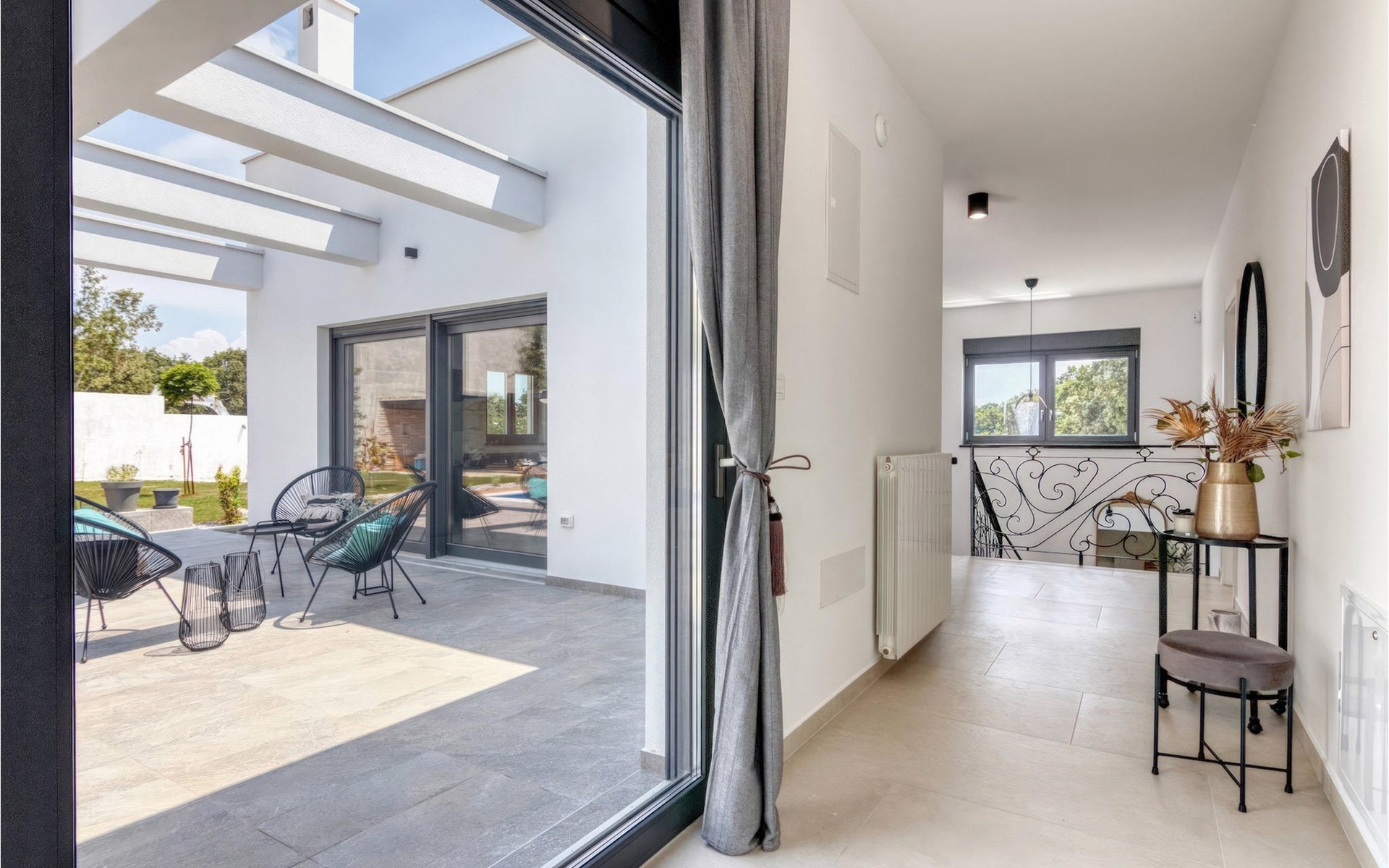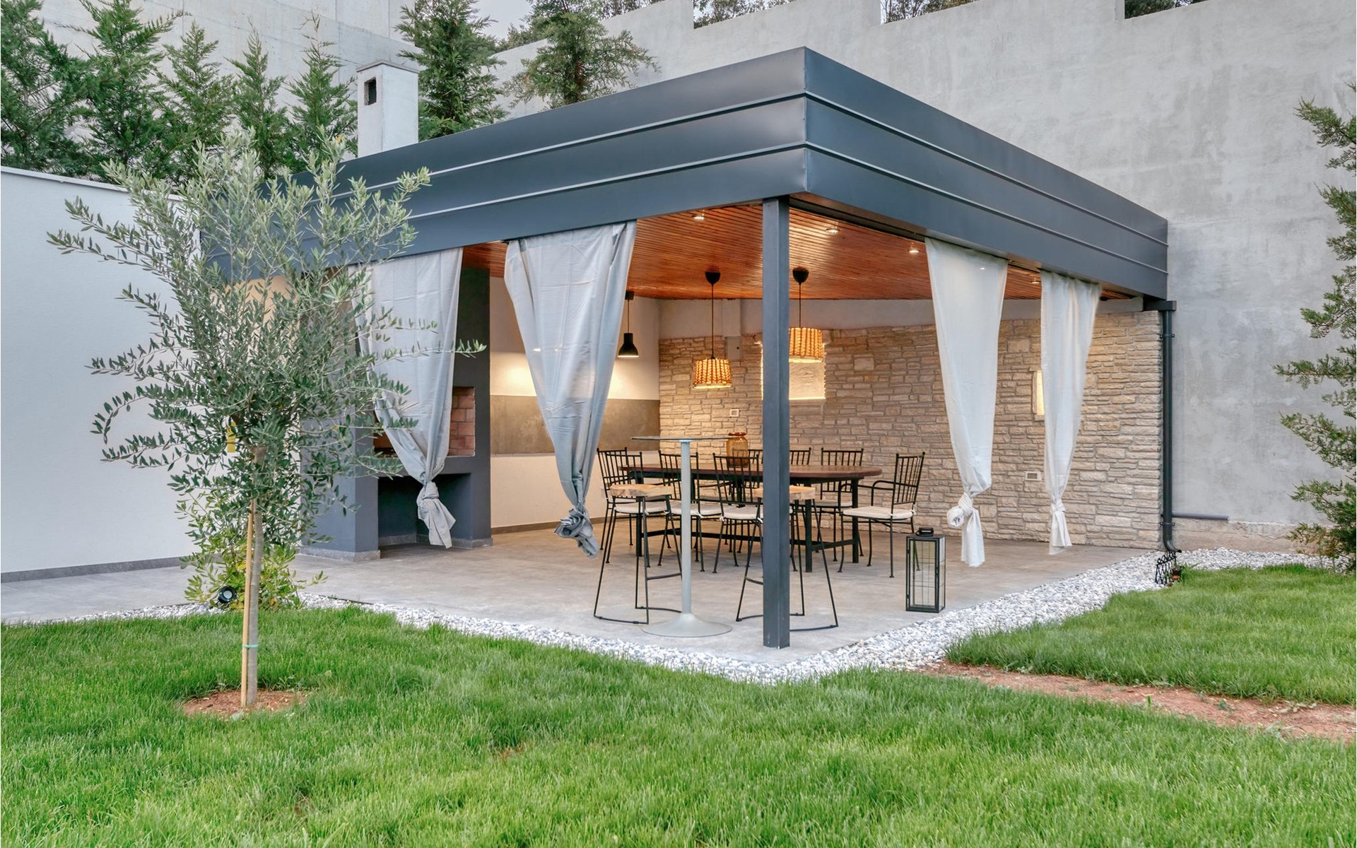 Villa Design M ist eine wunderschöne Villa mit modernem Design in der Nähe von Pula. Die Villa verfügt über einen komplett eingezäunten Garten, sodass Sie während Ihres Urlaubs absolute Privatsphäre genießen können. Vor der Villa befindet sich ein wunderschöner Pool von 36 m2, umgeben von viel Grün. Erfrischen Sie sich darin während der Sommerhitze. Schaffen Sie unvergessliche Erinnerungen durch geselliges Beisammensein im überdachten Bereich am Pool. Ganz am Eingang der Villa befindet sich der erste entspannende Raum mit viel Tageslicht, einem Doppelbett und einem eigenen Badezimmer. Im Erdgeschoss der Villa gibt es auch eine Waschküche. Treppen mit Spiralmotiven wirken edel und verbinden das Erdgeschoss mit dem ersten Stock. Im ersten Stock befinden sich drei komfortable Schlafzimmer mit Doppelbetten und eigenem Bad. Auf dieser Etage befindet sich eine voll ausgestattete Küche, die alles für die Zubereitung köstlicher traditioneller Gerichte wie schwarzes Risotto oder Brudet bietet. Verbringen Sie Zeit in angenehmer Atmosphäre im Esszimmer oder Wohnzimmer im ersten Stock der Villa. Verpassen Sie nicht einen Urlaub in der Villa Design M und gönnen Sie sich ein istrisches Abenteuer in Pjescana uvala. Pjescana uvala ist ein Dorf südlich von Pula in der Gemeinde Medulin. Es ist bekannt für seinen wunderschönen Sand- und Kiesstrand, ideal für einen ganztägigen Aufenthalt im Freien mit Familie oder Freunden in mediterraner Atmosphäre. Entlang der Küste gibt es zahlreiche ausgezeichnete gastronomische Einrichtungen und verschiedene touristische Einrichtungen, die Sie unbedingt besuchen sollten. Verpassen Sie nicht, den Waldpark Soline zu besuchen, der für seinen Steineichenwald, einen wunderschönen Aussichtspunkt mit Blick auf die istrischen Inseln und die blaue Adria sowie die Bildungs- und Freizeitpromenade bekannt ist, die zum ältesten Steinbruch Istriens führt. Der Brijuni-Nationalpark mit seinem beliebten Safaripark ist ein Muss. Nur 6 km von Pjescana uvala entfernt liegt Pula, die größte Stadt Istriens, wo Sie die Pula-Arena, den Augustus-Tempel, das Goldene Tor und viele andere kulturelle und historische Denkmäler besichtigen können. Die Temperatur des beheizten Schwimmbades hängt von äußeren Faktoren, einschließlich der Wetterbedingungen, ab und daher kann die Wassertemperatur nicht garantiert werden.