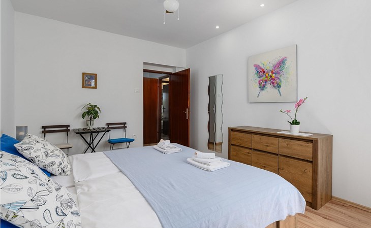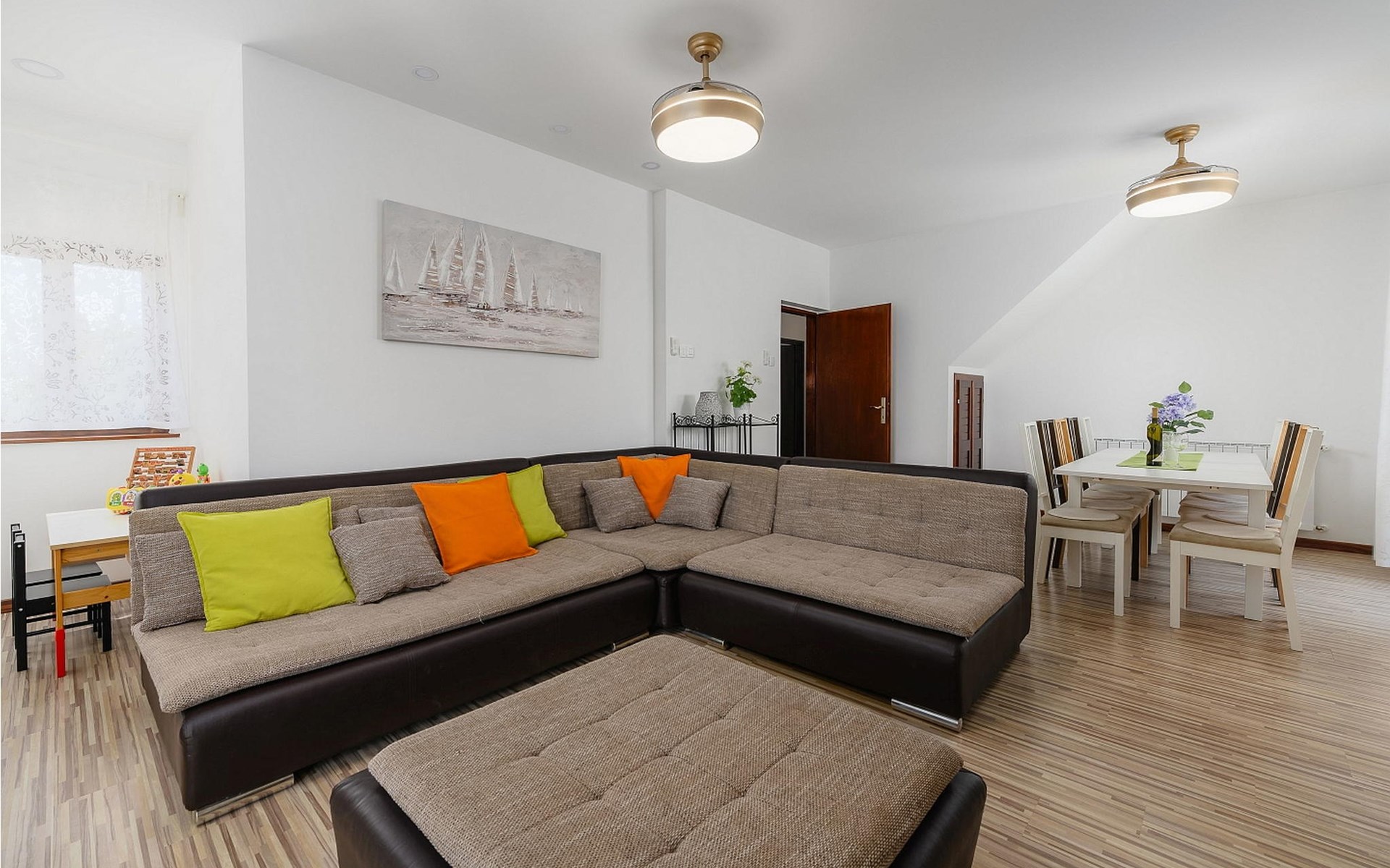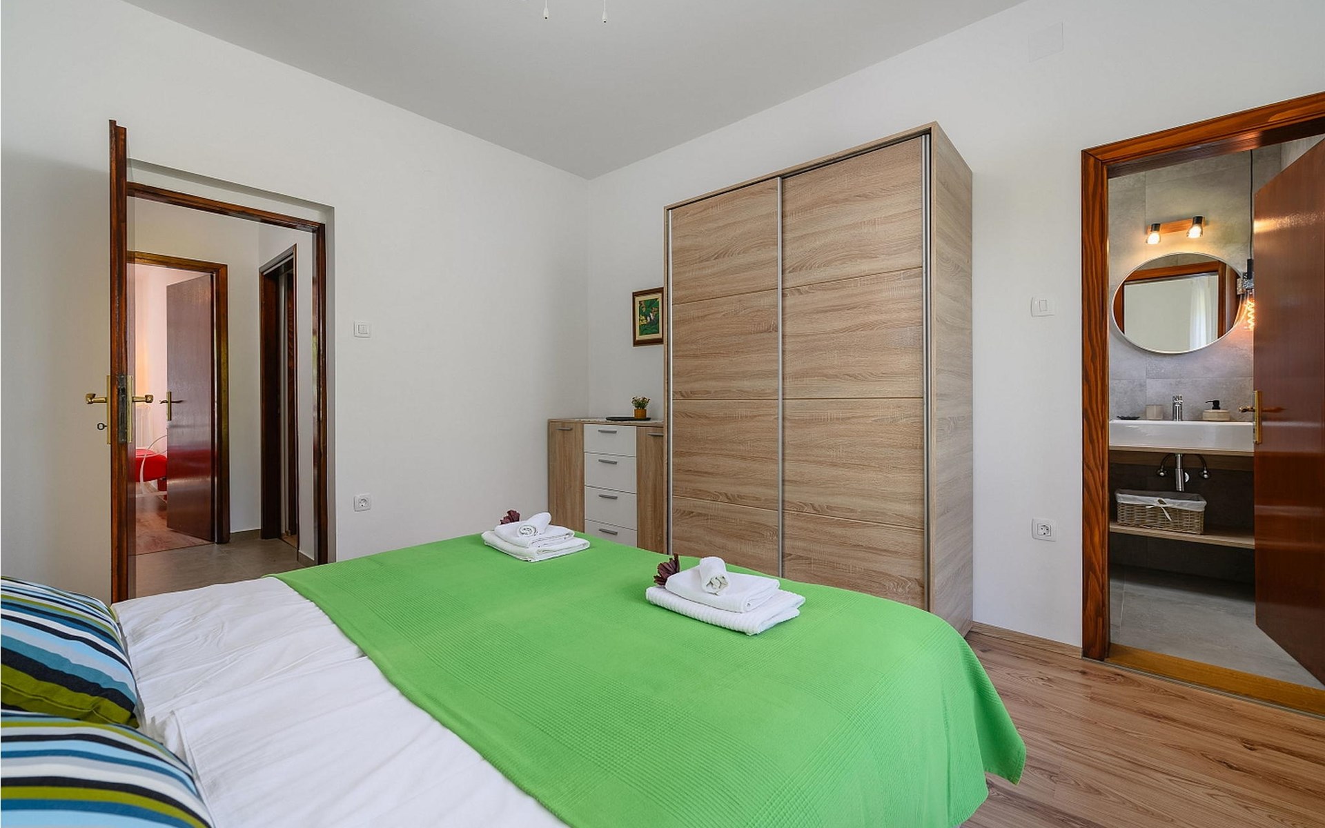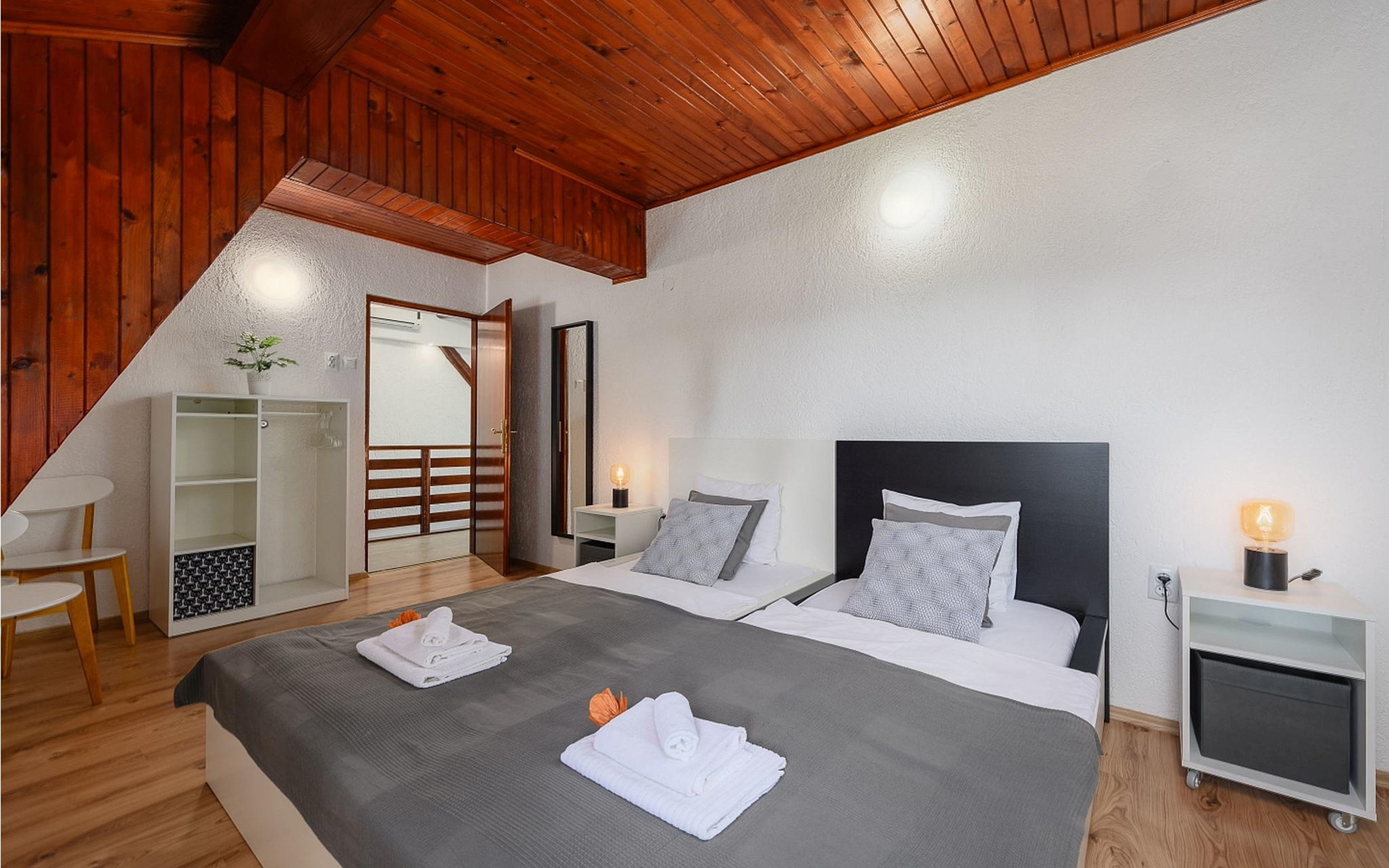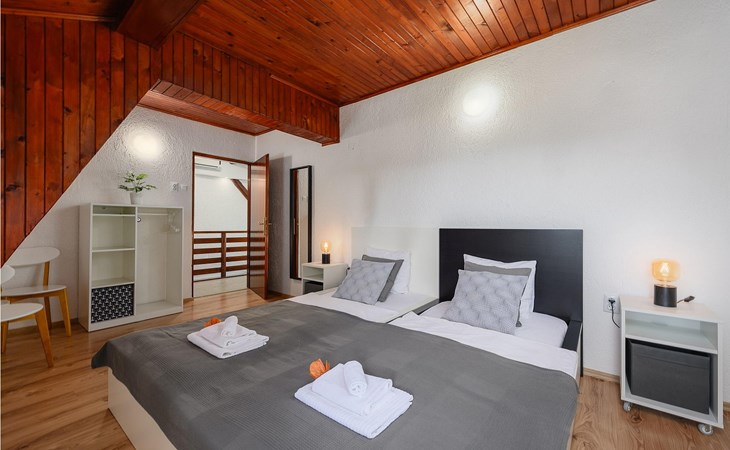 Ferienhaus für 10 Personen mit einer gesamten Wohnfläche von 178 qm auf zwei Etagen. Auf dem ersten Stock gibt es ein Wohnzimmer mit Ausgang auf zwei Balkone, Esstisch und Kinderspielecke, voll ausgestattete Küche, Bad/WC, zwei Doppelzimmer von welchen eins mit zwei Einzelbetten, Dusche/WC und eins mit Doppelbett und Bad/WC. Im Dachgeschoss des Hauses befinden sich noch zwei Doppelzimmer, eins davon mit zwei Einzelbetten und noch eine Dusche/WC. Bitte beachten Sie, dass diese Unterkunft auf Anfrage möglicherweise Jugendgruppen akzeptiert. Bitte kontaktieren Sie uns, um dies zu überprüfen. Eine Jugendgruppe in dieser Unterkunft besteht aus Personen im Alter von 26 Jahren oder jünger. Wenn Sie eine Jugendgruppe sind [oder einen Junggesellenabschied planen], werden Sie möglicherweise bei der Ankunft um die Zahlung einer zusätzlichen Kaution gebeten. Etwaige Beträge, die zur Behebung von Schäden an der Immobilie erforderlich sind, werden von der Kaution abgezogen.