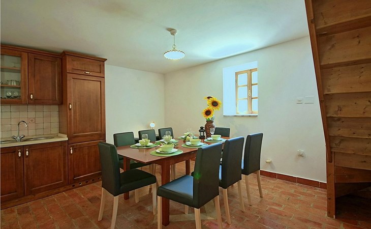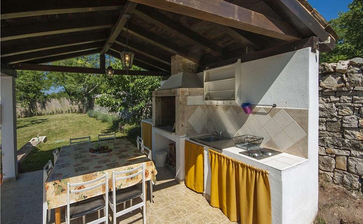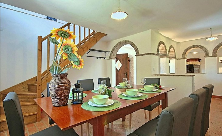 Casa Atilio and Ana ist ein charmantes altes istrisches Steinhaus im ruhigen Dorf Smolici, nur 19 km von Porec und seinen schönen Stränden entfernt. Dieser entzückende Rückzugsort bietet einen schönen Garten mit einem Swimmingpool, der sich perfekt zum Abkühlen an warmen Tagen eignet. Genießen Sie ein Essen im Freien auf der überdachten Terrasse, die mit einem gemauerten Grill und einer Spüle zum Zubereiten von Mahlzeiten ausgestattet ist, oder entspannen Sie sich bei einem Drink auf den Rattanmöbeln, die sich ideal zum Entspannen mit einem guten Buch eignen. Das Ferienhaus erstreckt sich über zwei Etagen. Im Erdgeschoss befinden sich ein gemütliches Wohnzimmer mit Kamin und eine gut ausgestattete Küche mit Esstisch. Die erste Etage ist in zwei Teile unterteilt: der erste mit zwei Schlafzimmern (eines mit zwei Einzelbetten, das andere mit einem Doppelbett) und einem Bad/WC; der zweite Teil hat zwei Doppelzimmer mit einer gemeinsamen Dusche/WC. Erkunden Sie während Ihres Aufenthalts das nahe gelegene Porec und die atemberaubende Basilika der Euphrasia, ein Meisterwerk aus dem 6. Jahrhundert. Porec, reich an kulturellem Erbe, lädt Sie ein, innerhalb seiner alten Stadtmauern eine Zeitreise zu unternehmen. Bitte beachten Sie, dass diese Unterkunft keine Jugendgruppen oder Junggesellenabschiede akzeptiert. Eine Jugendgruppe in dieser Unterkunft besteht aus Personen im Alter von 26 Jahren oder darunter.