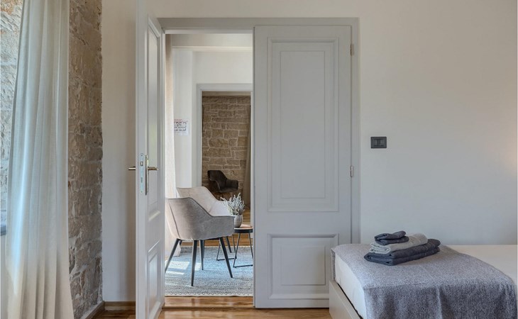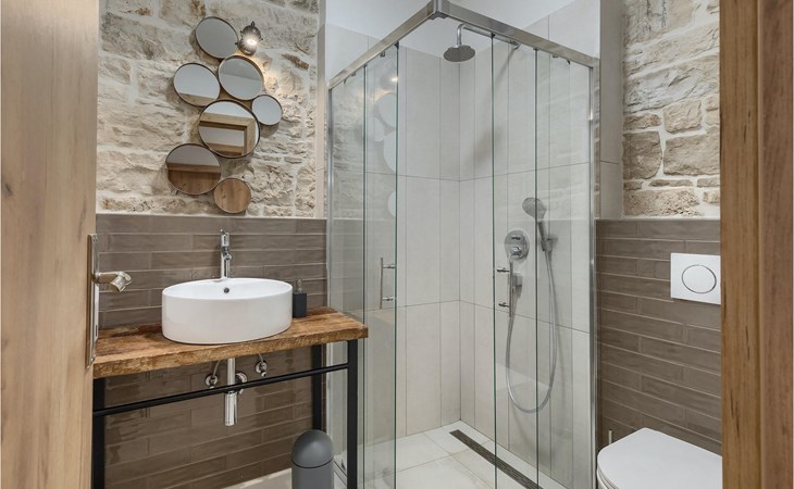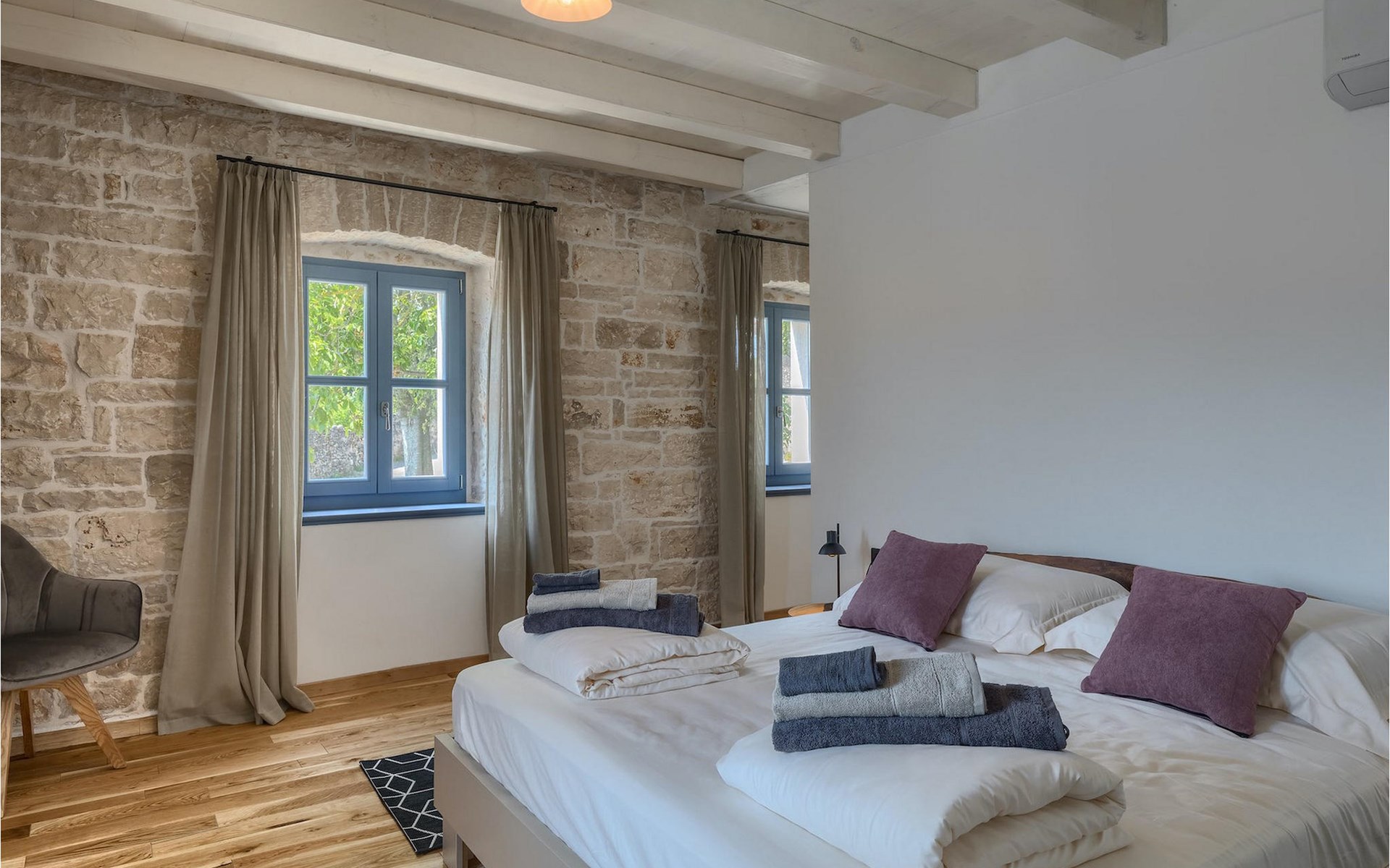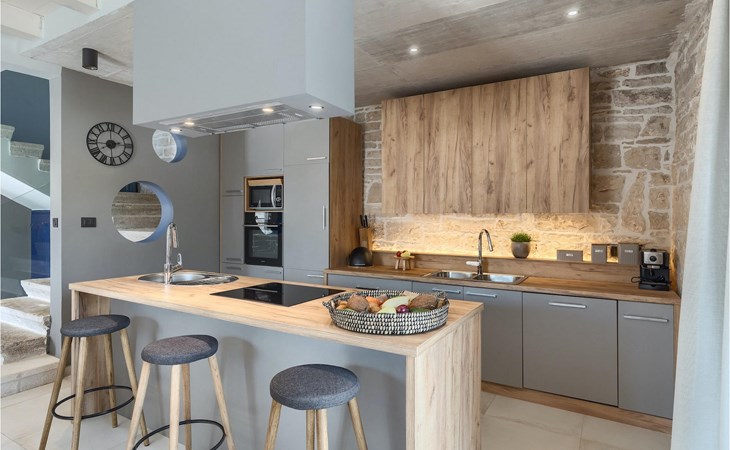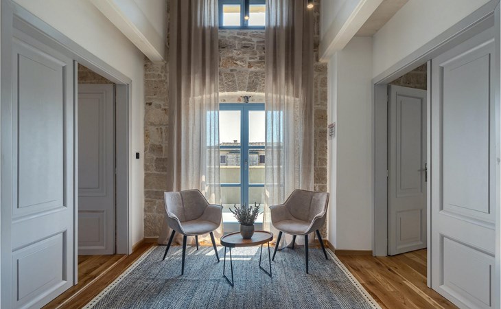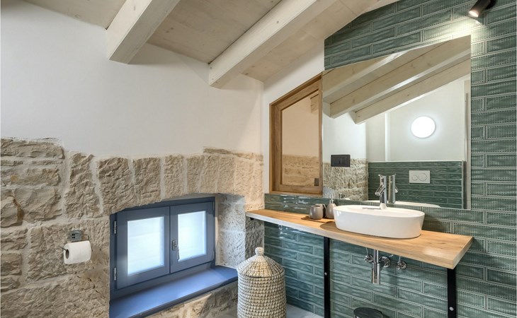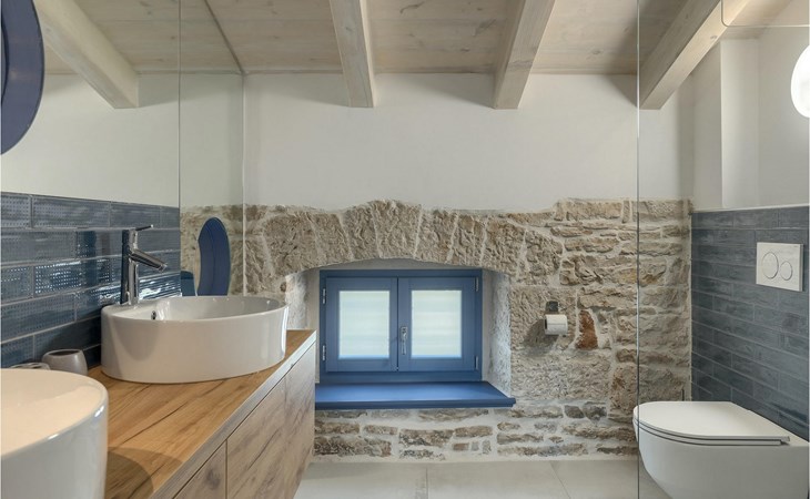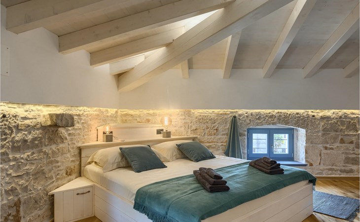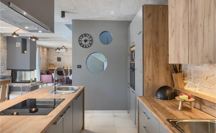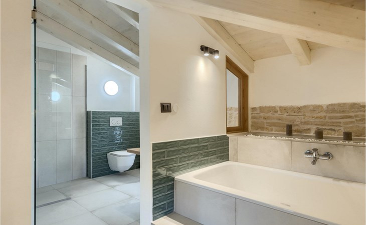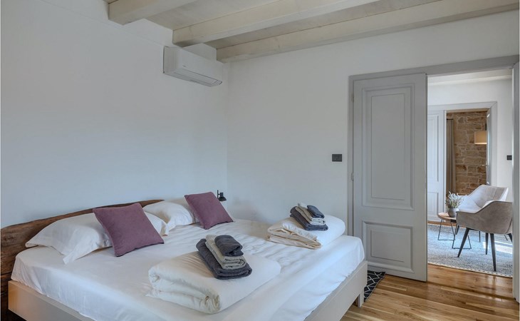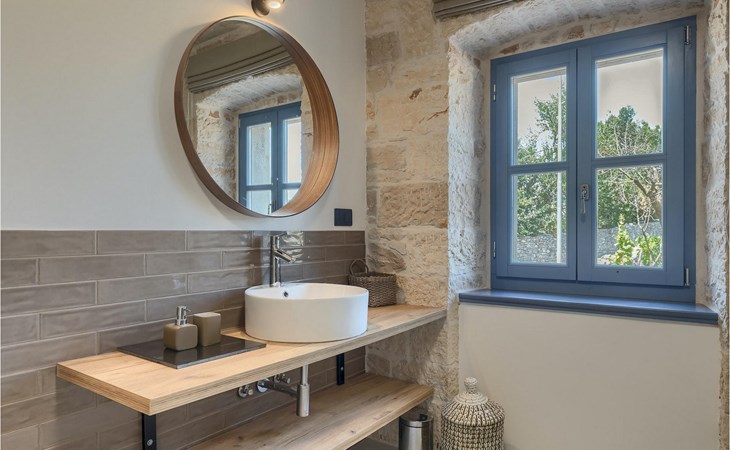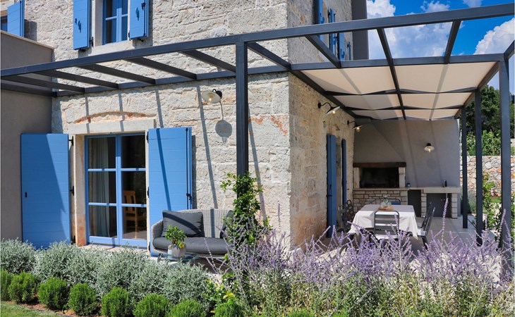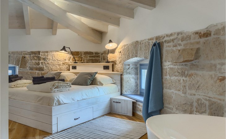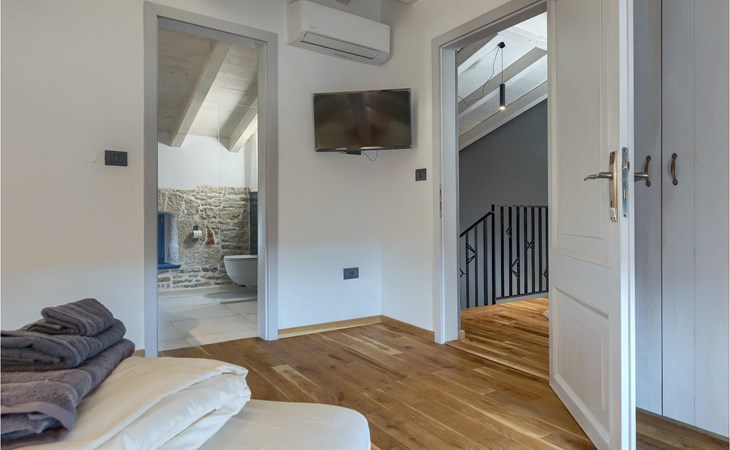 Die Villa verfügt über insgesamt 4 Schlafzimmer und bietet Platz für bis zu 10 Personen, was sie ideal für einen Familienurlaub macht. Das Innere ist modern und mit hochwertigen Geräten ausgestattet, jedoch hat die Villa auch ihren ursprünglichen Charme, der für alte Häuser Istriens typisch ist - ein gutes Beispiel sind bunte Holzfenster und Steinmauer.