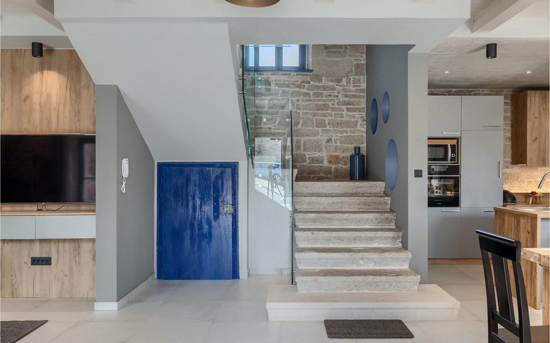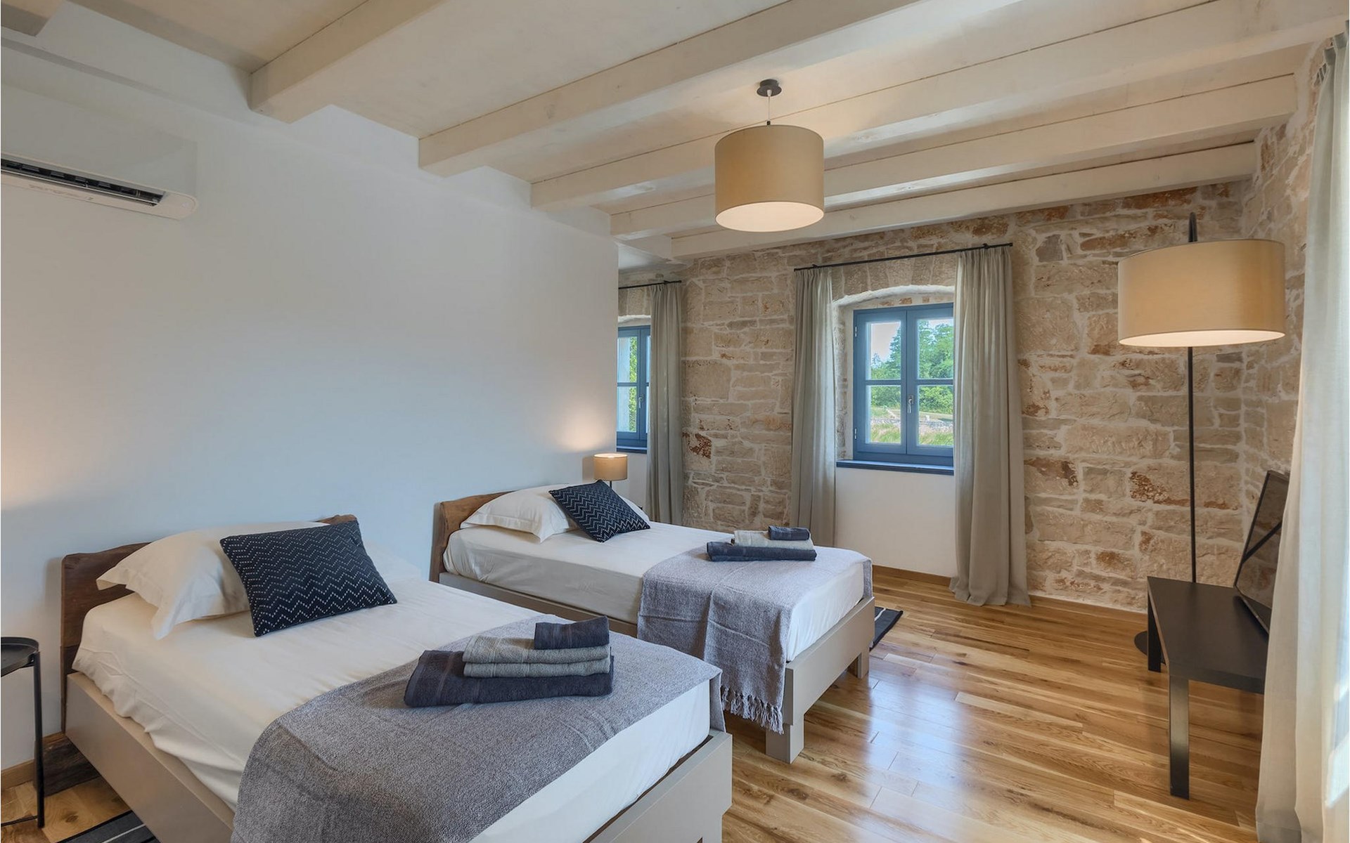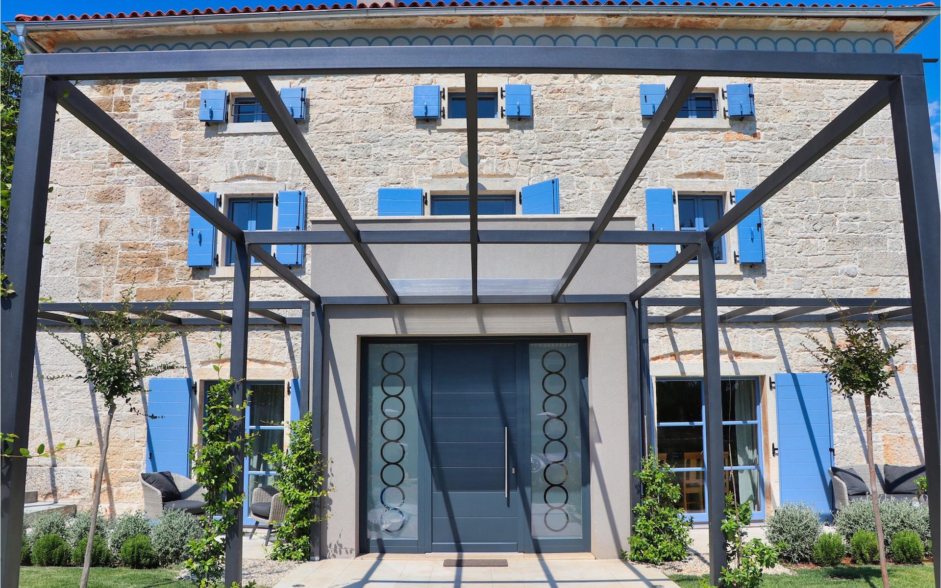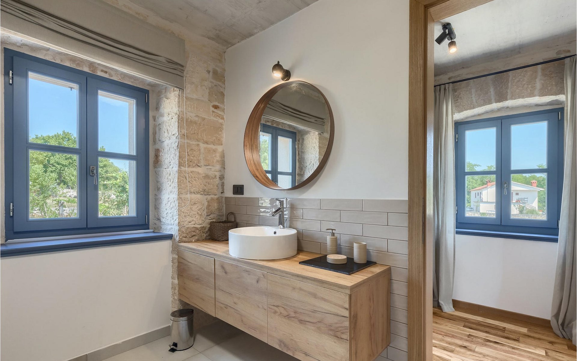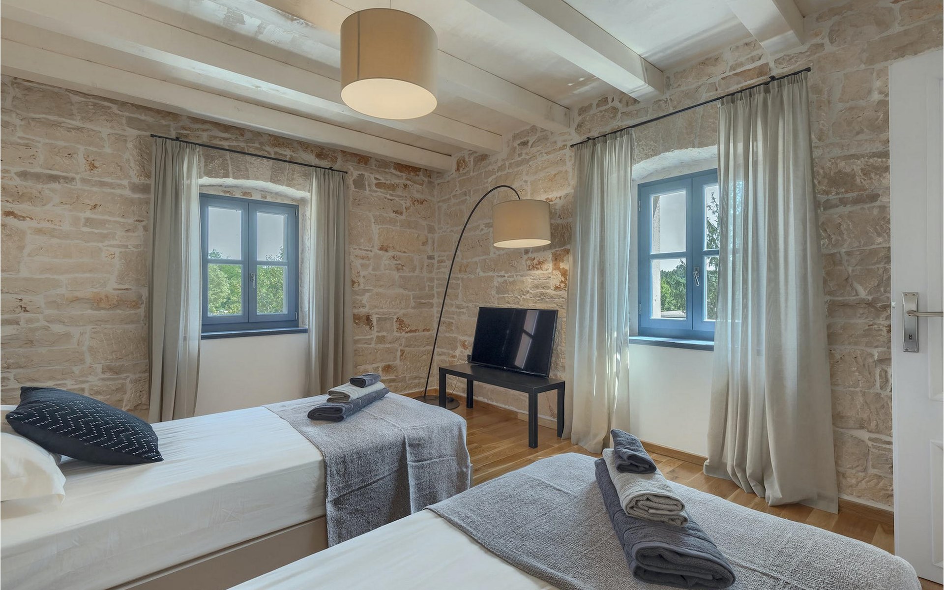 Die Villa verfügt über insgesamt 4 Schlafzimmer und bietet Platz für bis zu 10 Personen, was sie ideal für einen Familienurlaub macht. Das Innere ist modern und mit hochwertigen Geräten ausgestattet, jedoch hat die Villa auch ihren ursprünglichen Charme, der für alte Häuser Istriens typisch ist - ein gutes Beispiel sind bunte Holzfenster und Steinmauer.