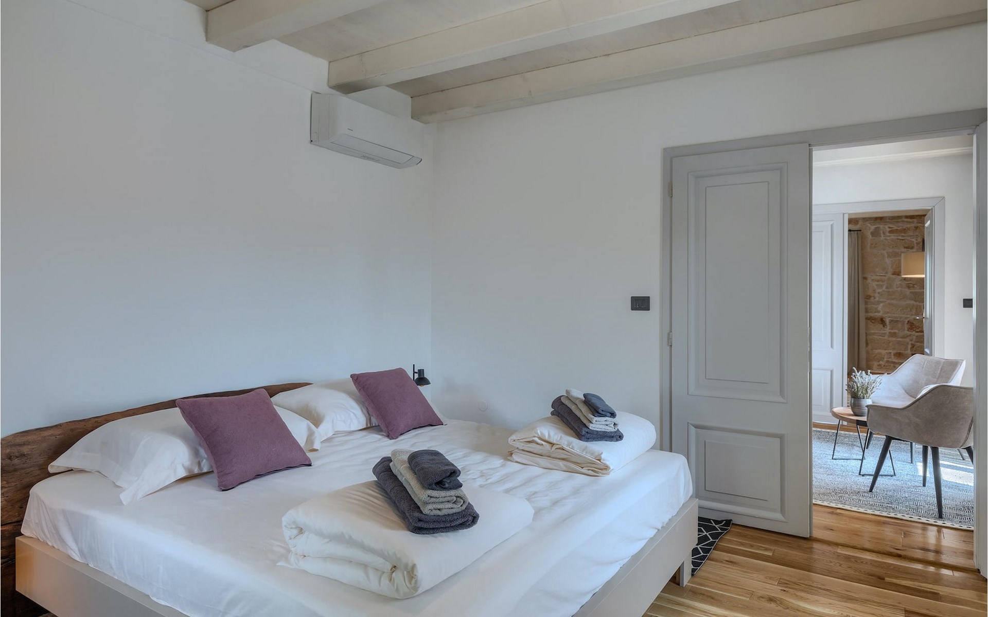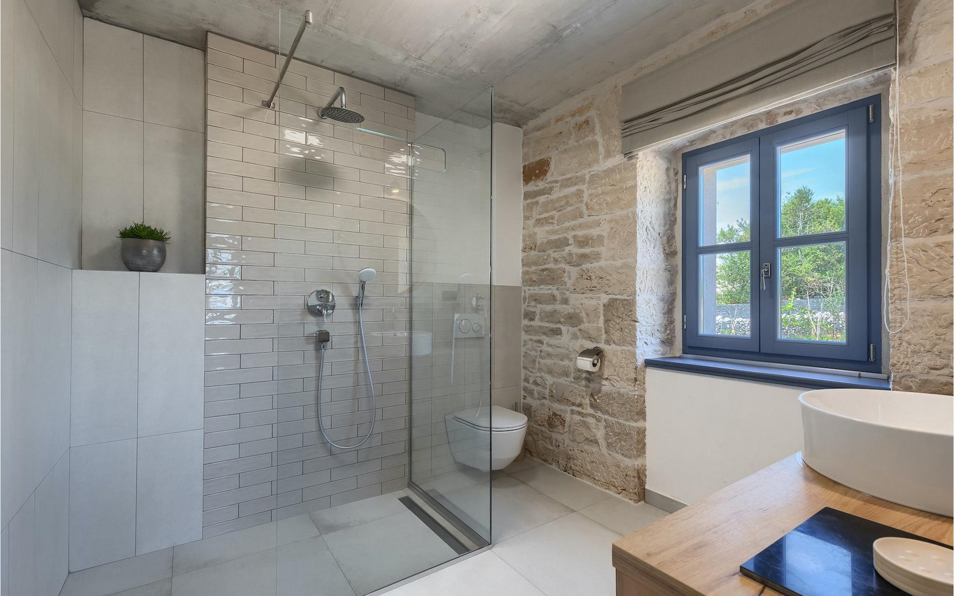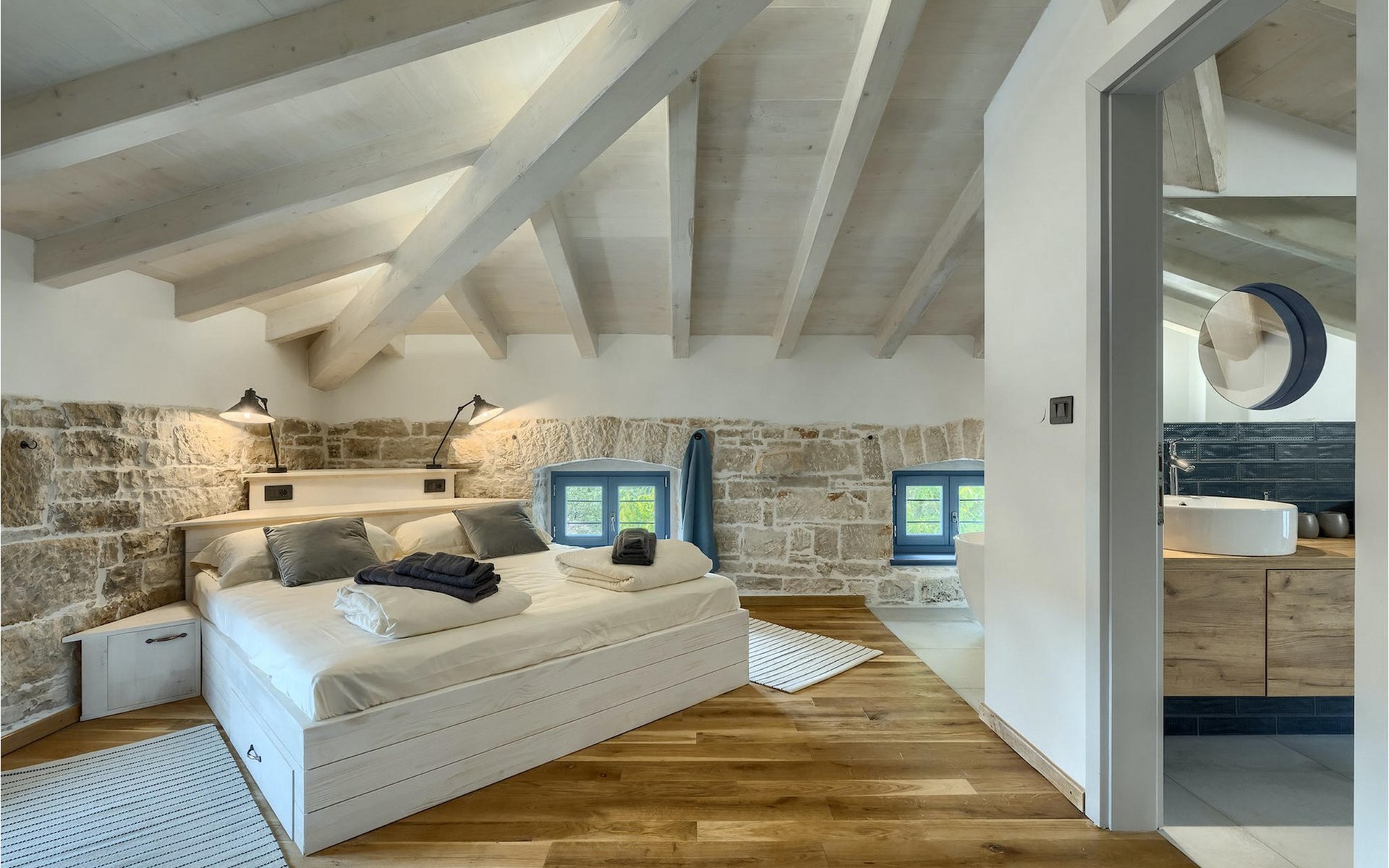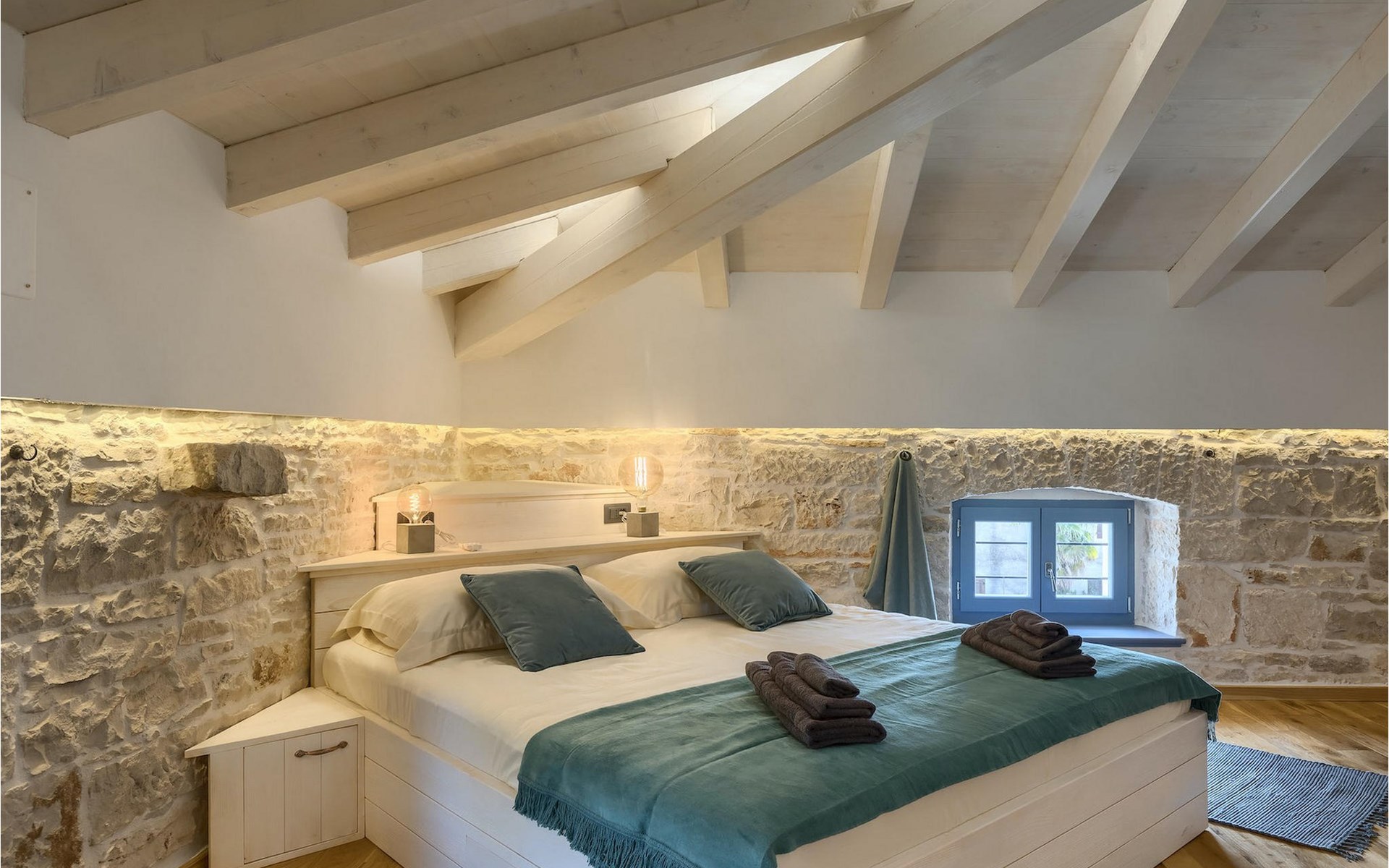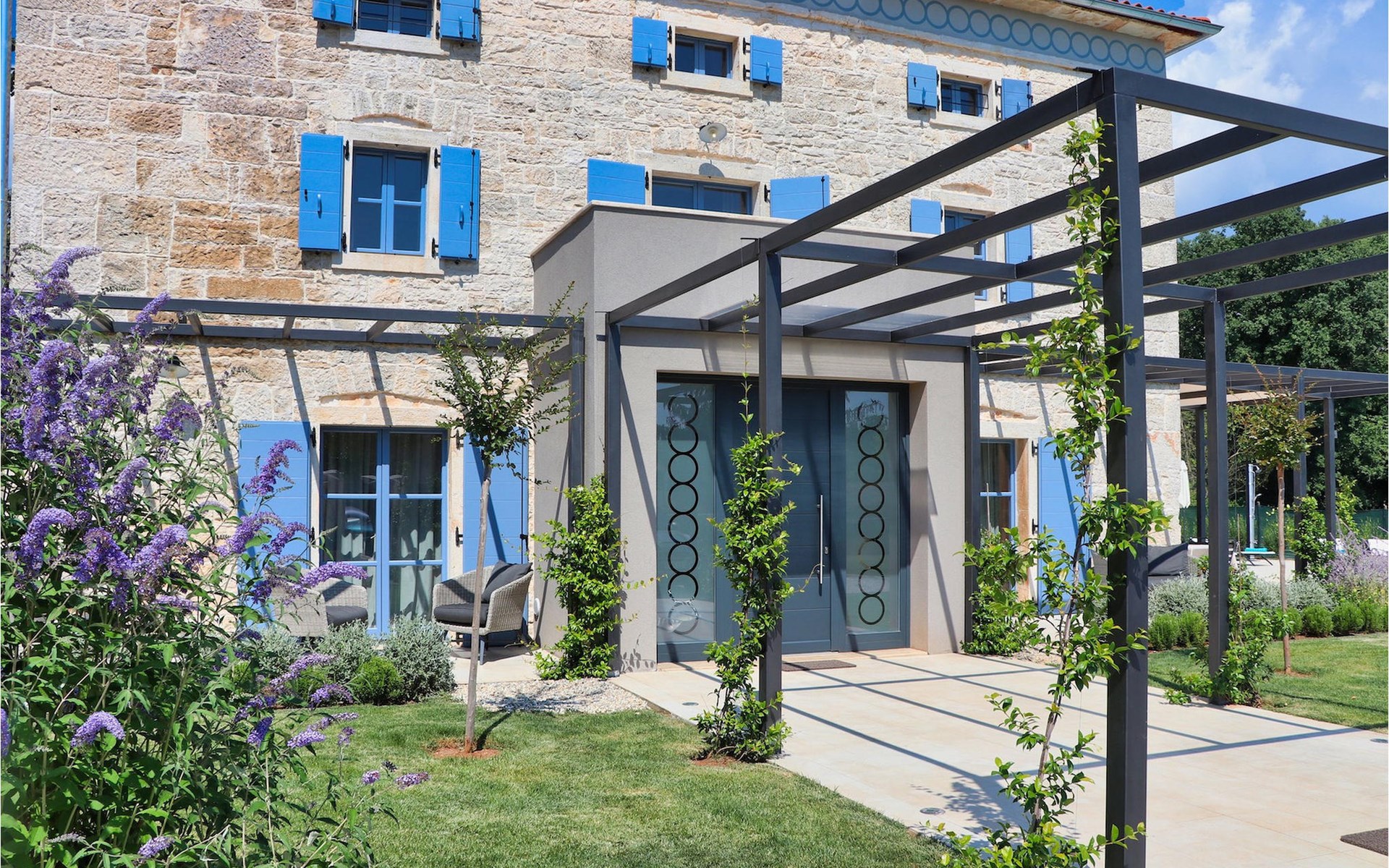 Die Villa verfügt über insgesamt 4 Schlafzimmer und bietet Platz für bis zu 10 Personen, was sie ideal für einen Familienurlaub macht. Das Innere ist modern und mit hochwertigen Geräten ausgestattet, jedoch hat die Villa auch ihren ursprünglichen Charme, der für alte Häuser Istriens typisch ist - ein gutes Beispiel sind bunte Holzfenster und Steinmauer.
