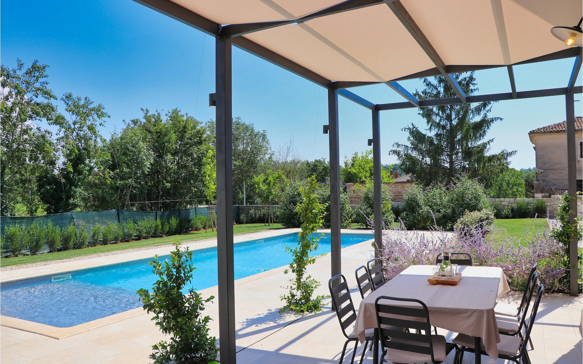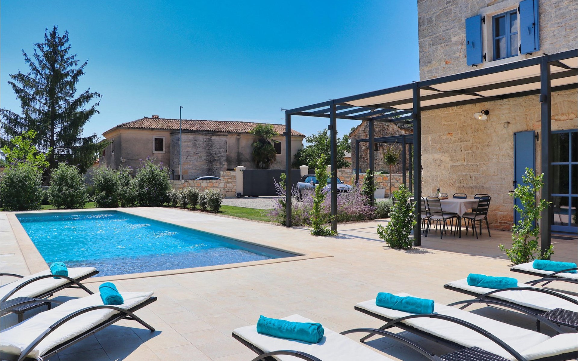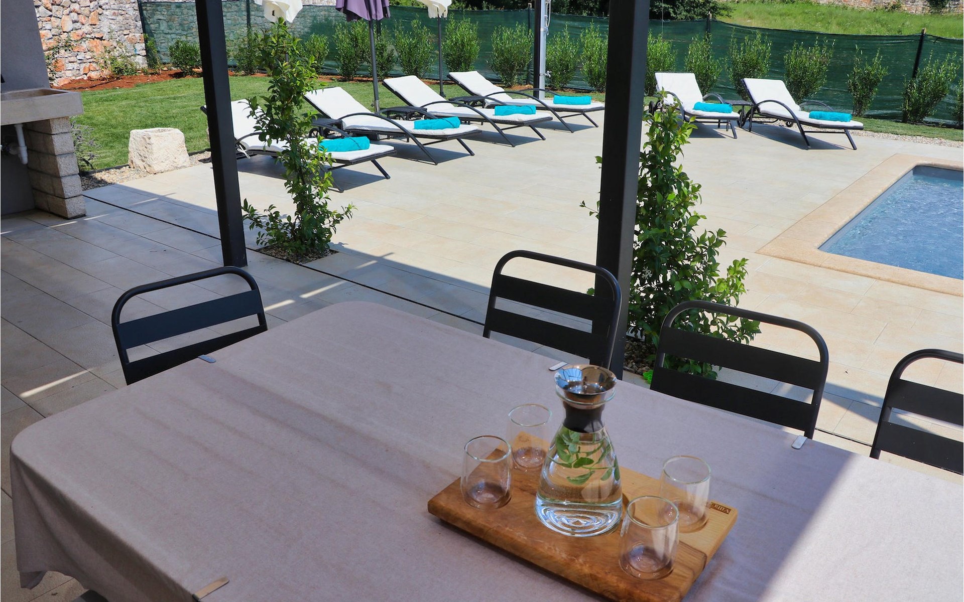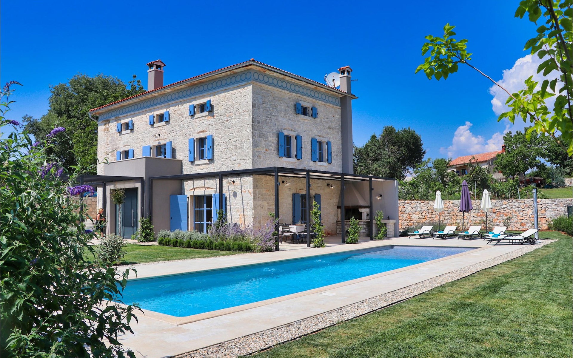 Im Außenbereich bietet die Villa Pi einen großen, einladenden Pool. Nehmen Sie sich ein erfrischendes Getränk und genießen Sie die Sonne am Pool oder bereiten Sie leckere Mahlzeiten auf dem Grill zu und genießen Sie diese im Freien auf der Terrasse der Villa. Die Villa Pi lässt keine Wünsche offen!Die Villa liegt in einer ruhigen Umgebung, die eine perfekte Lage für Ihren friedlichen Rückzug vom modernen Alltagsleben bietet. Zentralistreien, mit zahlreichen Bergdörfern und schöner Landschaft, ist ideal fürs Radfahren und Wandern. Zur gleichen Zeit ist es nur eine kurze Fahrt von istrischen Touristenzentren, historischen Stätten und Stränden entfernt. Die nächsten Stränden befinden sich in Porec. Der Tourismus rund um Poren ist viel mehr als nur Meer und Sonne. Die Gäste können unschwer erkennen, dass die Stadt Ihr geschichtliches Bild bewahrt. Hier findet man Museen, Gallerien und viele sehenswerte Stadtmerkmale. Das komplette Stadtzentrum ist ein lebendes Kulturdenkmal. Die Straßen in Porec beheimaten zahlreiche Galerien und Ausstellungsräume, die die Tradition auf moderne Weise bewahren. Eine schöne Weise Istrien kennen zu lernen ist die aussergewöhliche Gastronomie. Die Symphonie des Geschmacks werden all Ihre Sinne erwecken. Die gastronomische Perle in Istrien ist ohne Zweifel der Trüffel.