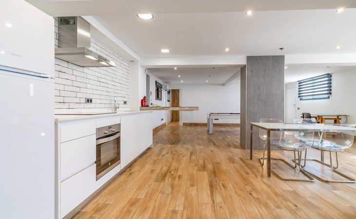 Dieses moderne und hochwertig ausgestattete Reihenhaus bietet Ihnen viel Platz, um eine gesellige Auszeit mit einer größeren Familie oder einer Gruppe von Freunden zu genießen. Veranstalten Sie fröhliche Kochabende, plaudern Sie bei ausgedehnten Mahlzeiten mit Blick aufs Meer und finden Sie nach einem langen Tag unter dem blauen Himmel im luftigen Wohnzimmer zusammen, um einen Film zu streamen oder sich bei einem Spieleabend zu entspannen.