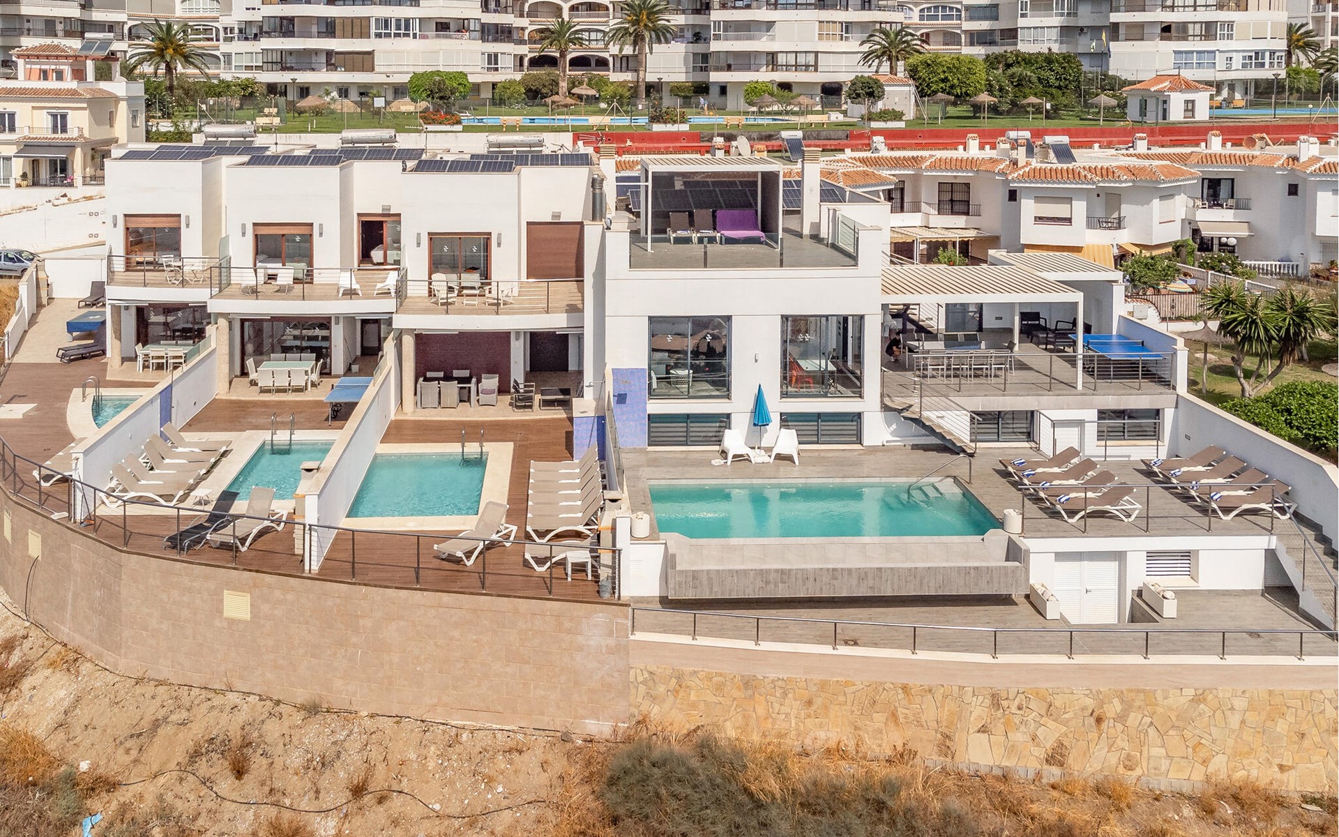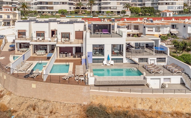 Erleben Sie einen sonnigen Urlaub in diesem luxuriösen Ferienhaus mit Pool und Meerblick.