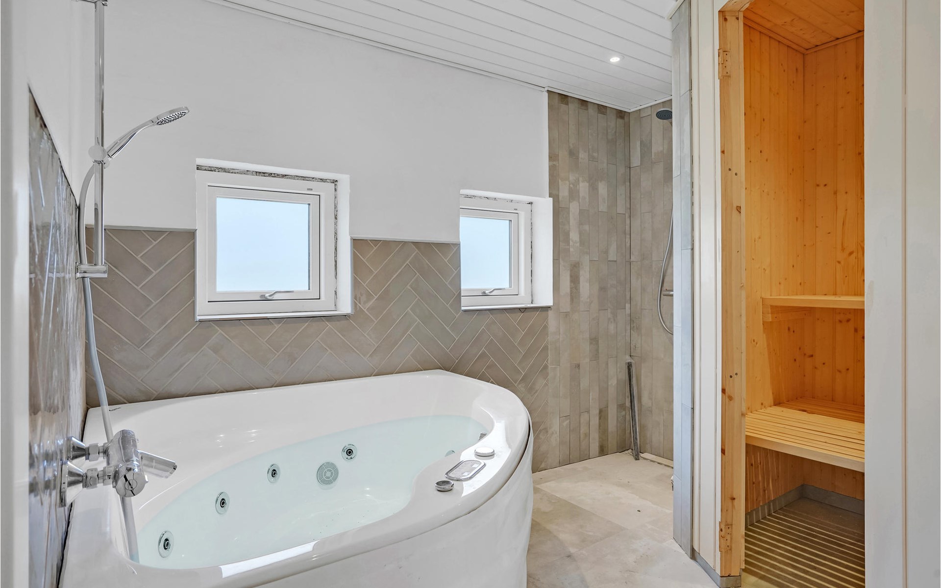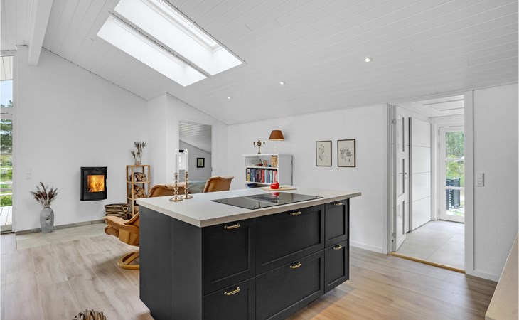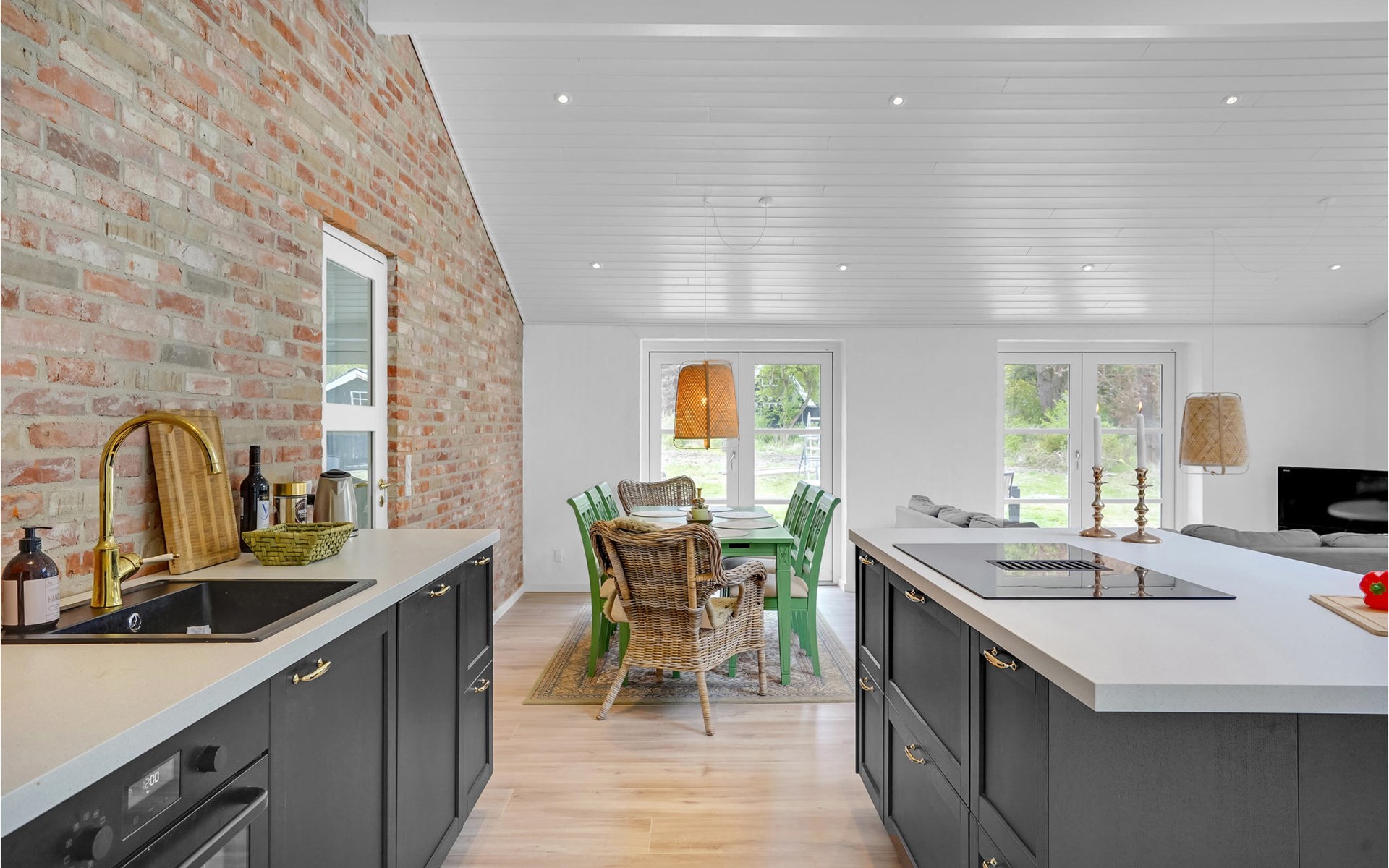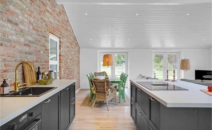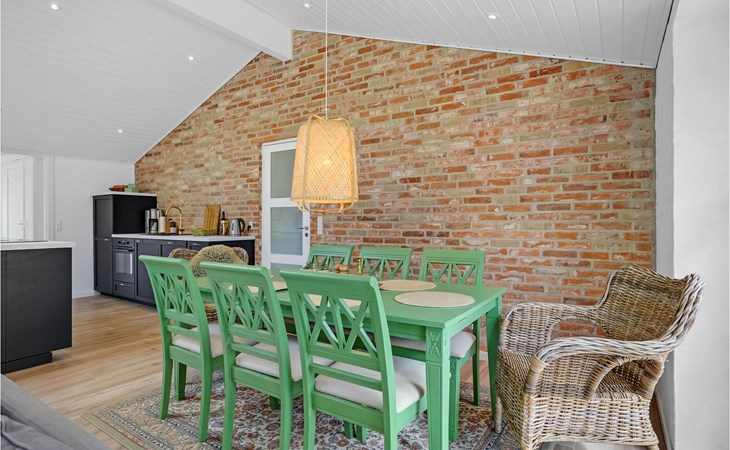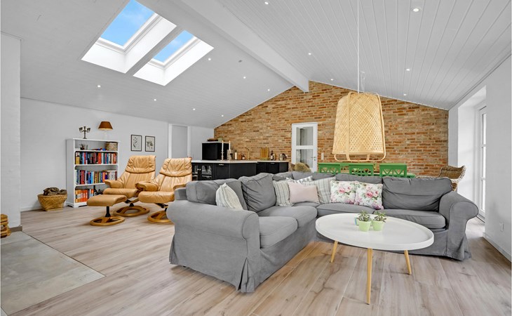 Dieses charmante Ferienhaus erwartet Sie mit einer behaglichen Stimmung und gemütlicher Einrichtung. Hier finden Sie eine natürliche Mischung aus naturnahen Materialien wie Ziegeln und Holz, verfeinert mit raffinierten Dekorationen. Zudem können Sie sich in diesem offenen Wohnraum besonders gut einfinden und Ihre Zeit in Dänemark genießen. Lassen Sie sich bei einem Gläschen Wein nieder, lassen sich auf Unterhaltungen mit Ihren Liebsten ein und verspeisen gemeinsam köstliche Mahlzeiten. Zudem haben Sie Zugang zu einer Sauna und einem Whirlpool, um sich besonders verwöhnen zu lassen. Vom Wohnzimmer gelangen Sie auf eine offene und überdachte Terrasse, mit Grill und Sonnenliegen, um sich auch von der Sonne wärmen zu lassen, während Sie sich in einen Roman vertiefen.