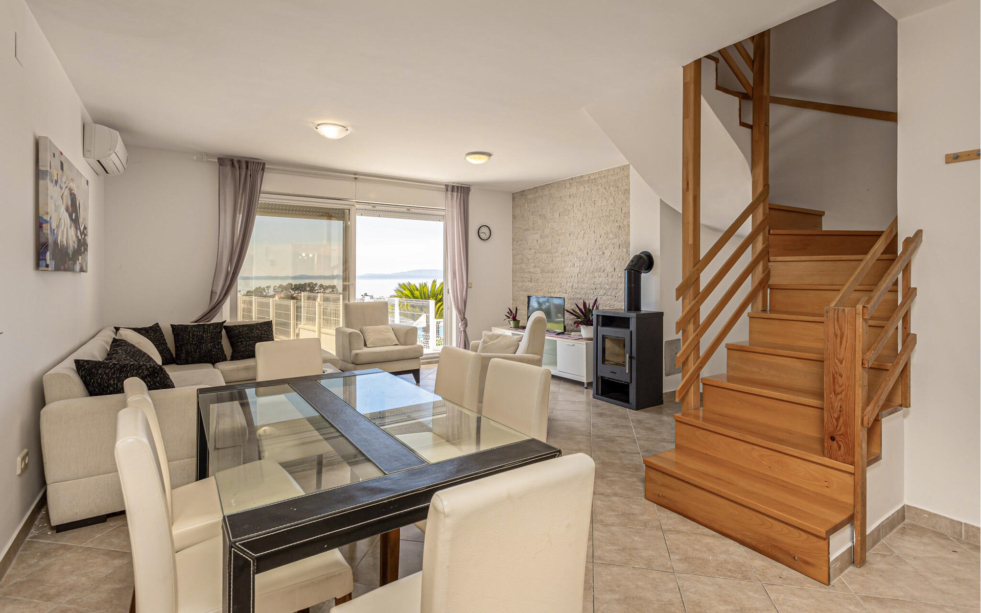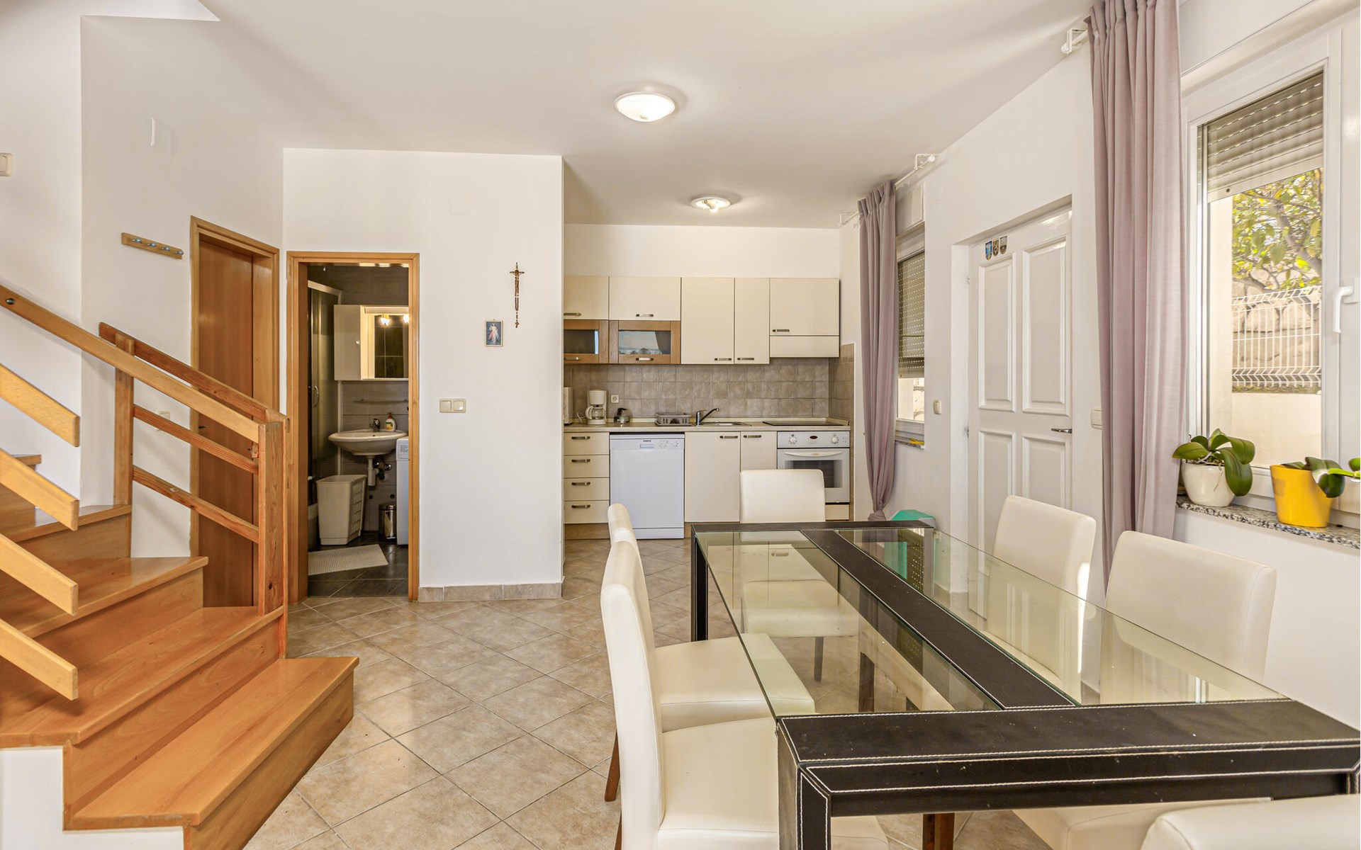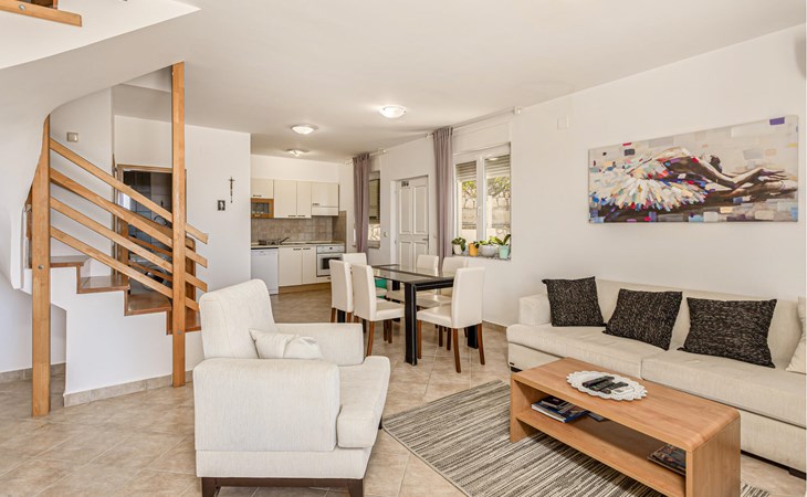 Verbringen Sie einen erholsamen Urlaub in einer dieser schönen Ferienwohnungen in Banjol auf der Insel Rab. Die Ferienwohnung CKR428 erstreckt sich über das Erdgeschoss und den ersten Stock und verfügt über eine herrliche Aussicht auf das Meer und die Umgebung. CKR429 liegt im Erdgeschoss und beinhaltet eine Galerie mit minimaler Wandhöhe von etwa 60 cm. Jede Wohnung hat eine eigene Terrasse mit Grill. In wenigen Gehminuten erreichen Sie den Sandstrand sowie das Stadtzentrum, in dem es viele Restaurants, Cafés und Sommerveranstaltungen gibt. Die Standpromenade eignet sich für romantische Spaziergänge und zum Joggen.