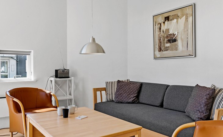 Genießen Sie Ihre Urlaubszeit in Gudhjem, einem malerischen Küstenort auf der Insel Bornholm, der mit seinem charmanten Hafen und den bunten Häusern sofort verzaubert. Genießen Sie die entspannte Atmosphäre bei einem Spaziergang entlang der Hafenpromenade oder verweilen Sie in einem der gemütlichen Cafés mit Blick aufs Meer. Für Aktivurlauber bietet die Umgebung zahlreiche Möglichkeiten. Wandern Sie entlang der beeindruckenden Klippenpfade und entdecken Sie die faszinierende Felsformation Helligdomsklipperne. Radfahren ist auf Bornholm ein besonderes Vergnügen, dank der gut ausgebauten Radwege, die durch idyllische Landschaften und entlang der Küste führen. Kulturell Interessierte sollten die nahegelegene Rundkirche von Østerlars besuchen, eine der ältesten und größten ihrer Art in Dänemark. Ein weiterer Höhepunkt ist das Kunstmuseum Bornholm, das eine beeindruckende Sammlung regionaler Kunst beherbergt. Für einen entspannten Tag am Meer besuchen Sie die Sandstrände von Balka und Dueodde, die mit ihrem feinen weißen Sand und kristallklaren Wasser begeistern.
