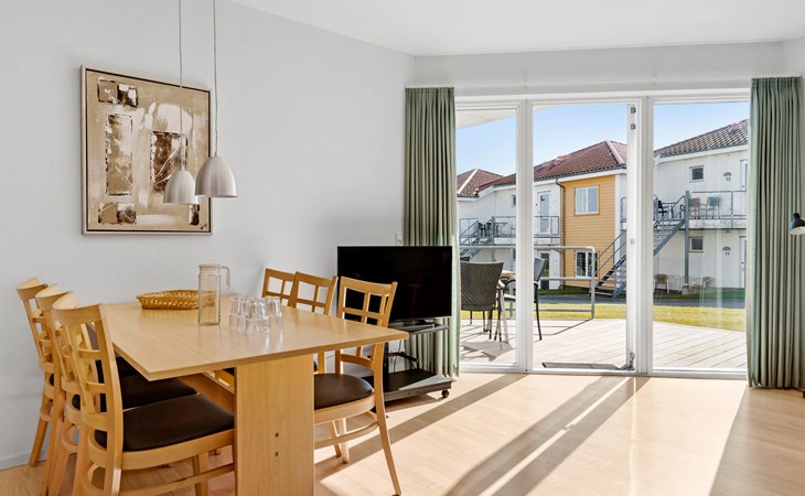 Willkommen in dieser einladenden Ferienwohnung, als Teil einer Wohnanlage, die zahlreiche gleichgeschnittene Wohnungen anbietet. Falls Sie mit befreundeten Familien oder der Großfamilie verreisen wollen, finden Sie hier eine große Auswahl an Unterkünften, um Ihren Urlaub gemeinsam zu verbringen. Treten Sie in diese schöne und lichtdurchflutete Wohnung ein und genießen das helle Ambiente und die Behaglichkeit, die durch die hohe Qualität der Einrichtung geschaffen wird. Gehen Sie Ihrem Ferienalltag beim Kochen, Essen, Spielen und Relaxen nach und genießen die beiden Terrassenbereiche sowohl vor der Eingangstüre als auch im Anschluss an das Wohnzimmer. Erhaschen Sie dabei auch einen Blick auf das Meer, das nicht weit zu Fuß entfernt ist.