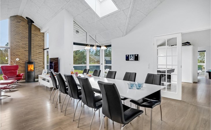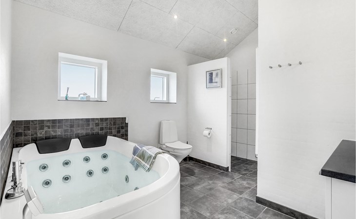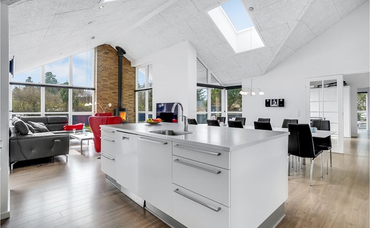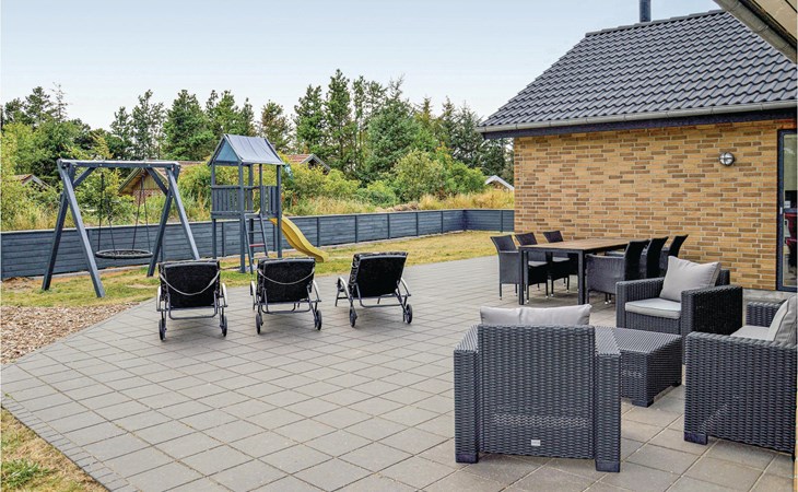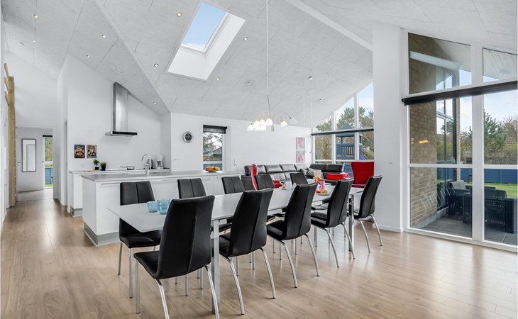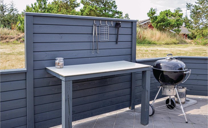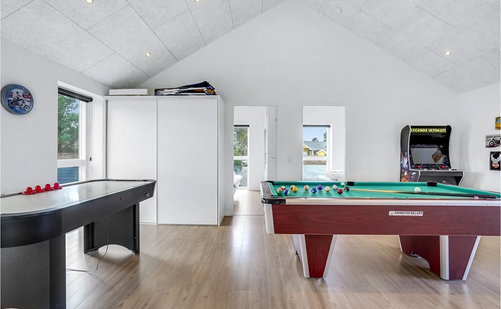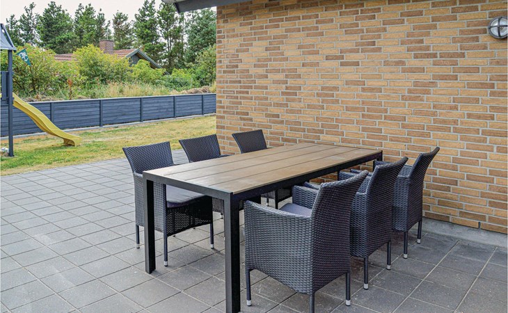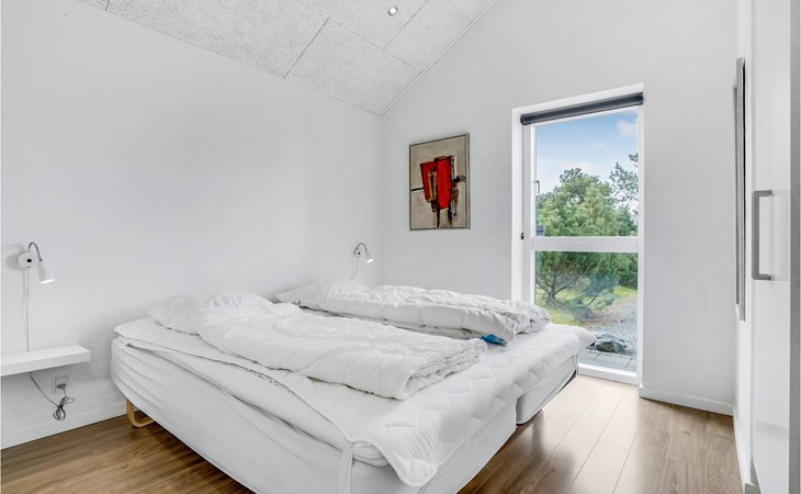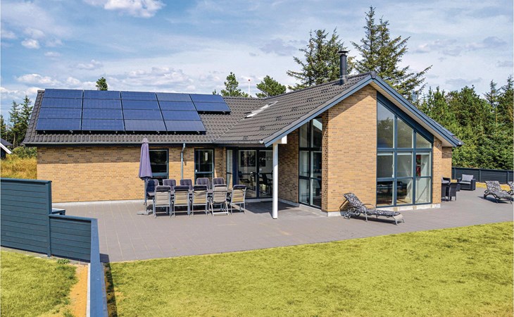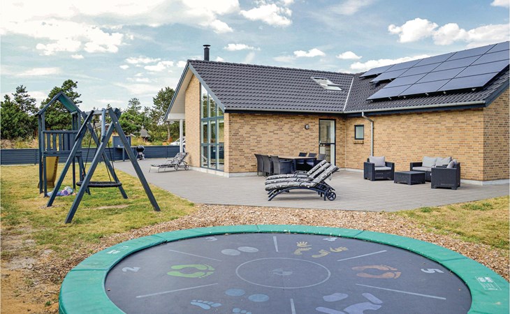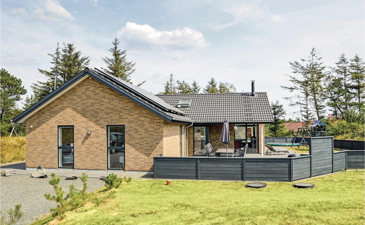 Exquisit errichtetes Ferienhaus auf einem ungestörten Dünengrund. Sie befinden sich hier nahe am Wasser und in der Nähe vom Ort. Das Haus besitzt praktischerweise zwei voneinander getrennte Schlafzimmer an je einem Ende des Hauses, und für Ihre Kinder ist ein Schlafboden vorhanden. Der Mittelpunkt ist bestimmt die behagliche Wohnküche, darüber hinaus werden Groß und Klein sicher viele Stunden im Aktivitätsraum verbringen. Für ein optimales Raumklima ist das Haus mit einem Luftwärmetauscher ausgestattet. Rund um das Haus finden Sie herrliche Terrassen zum Entspannen. In ein paar Minuten zu Fuß erreichen Sie das beliebte Blåvand. Relaxen Sie am 15 km langen Blåvand Strand.
