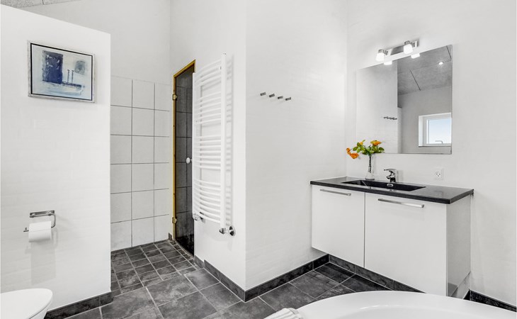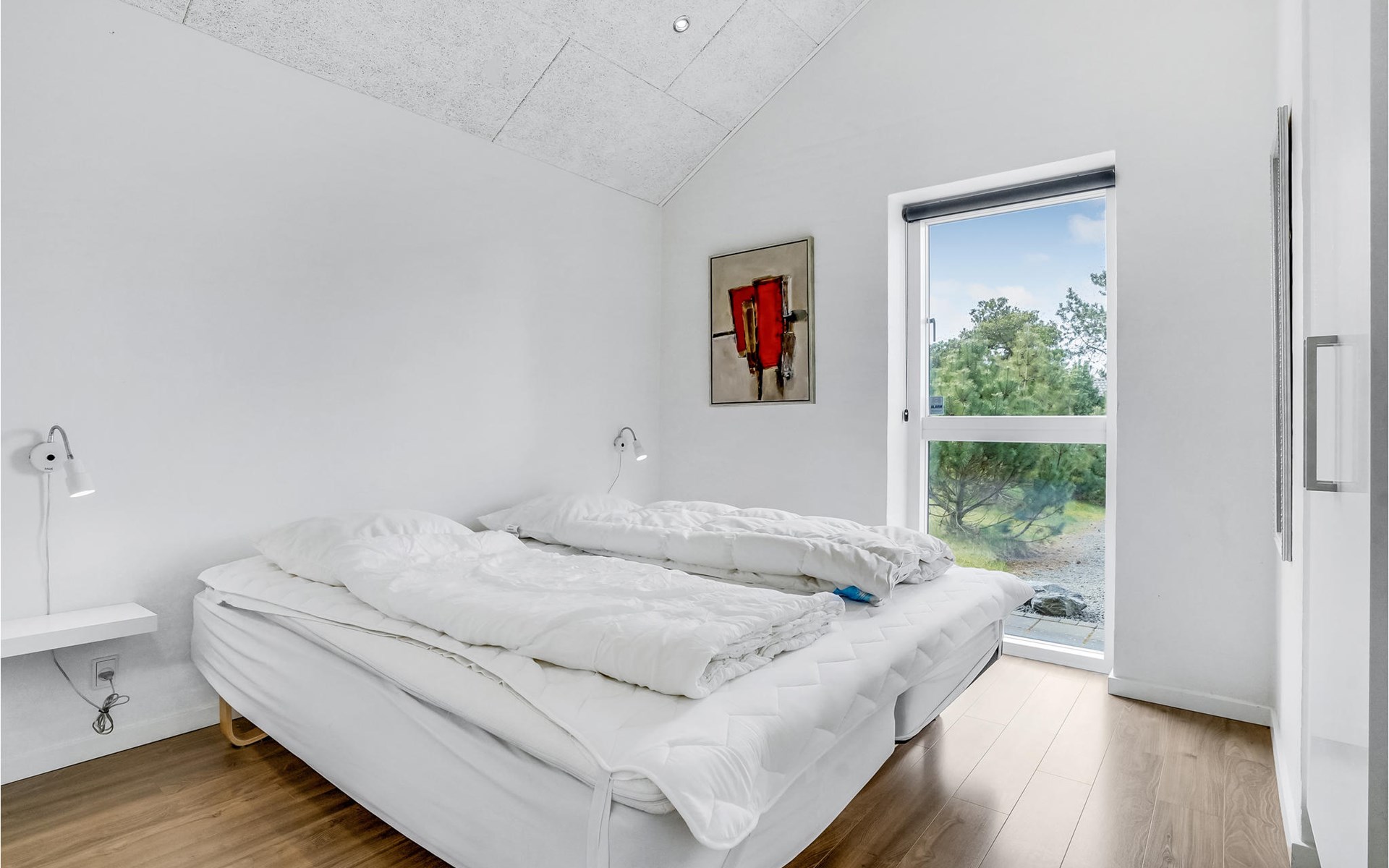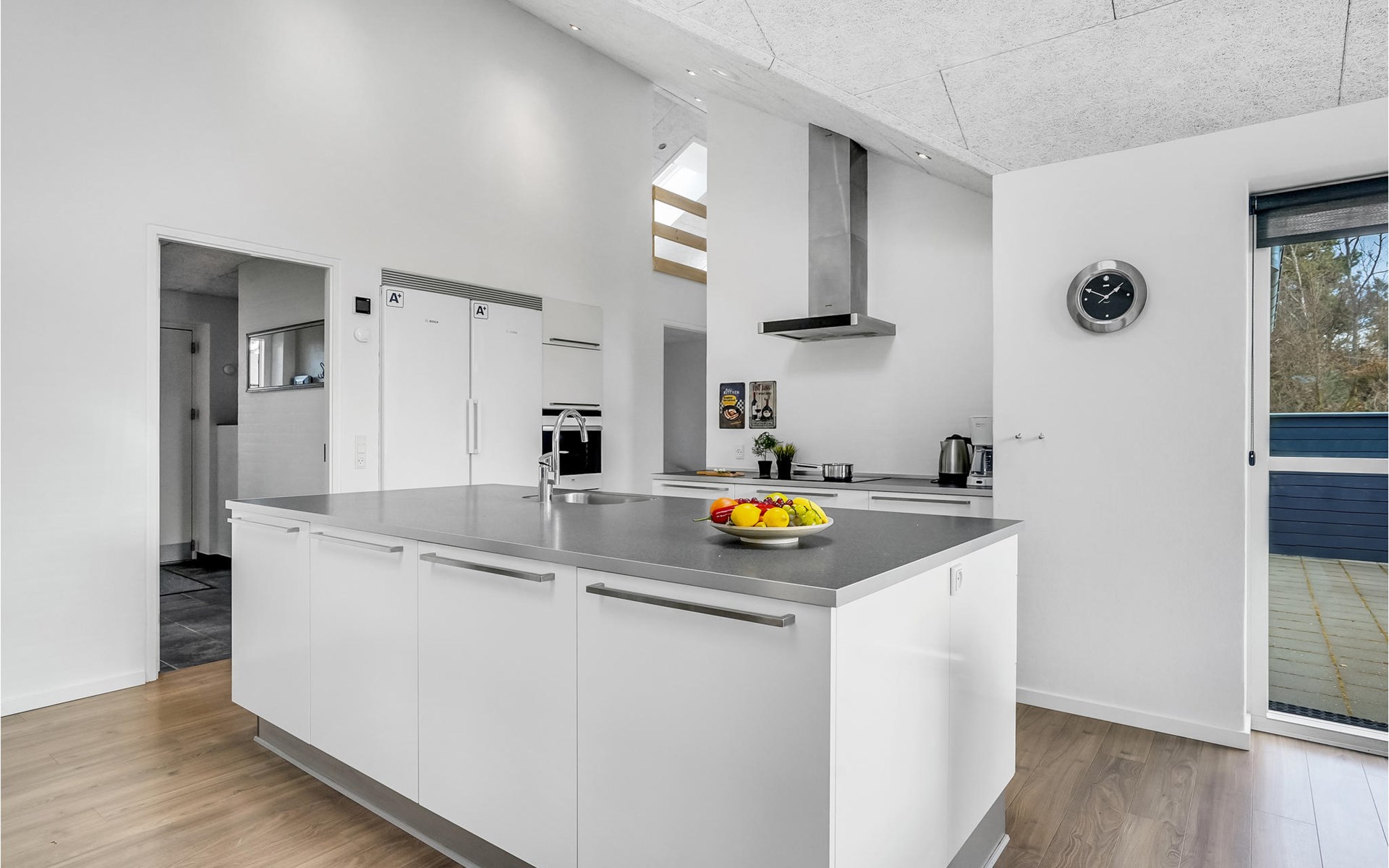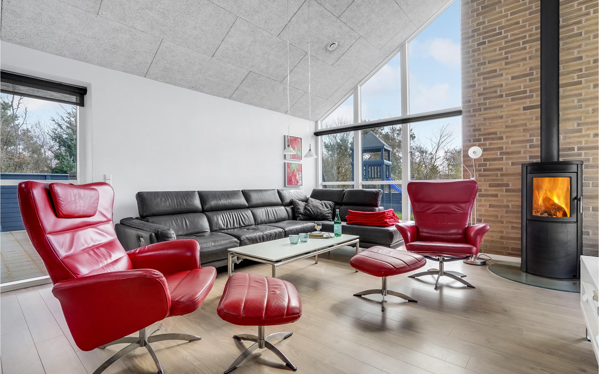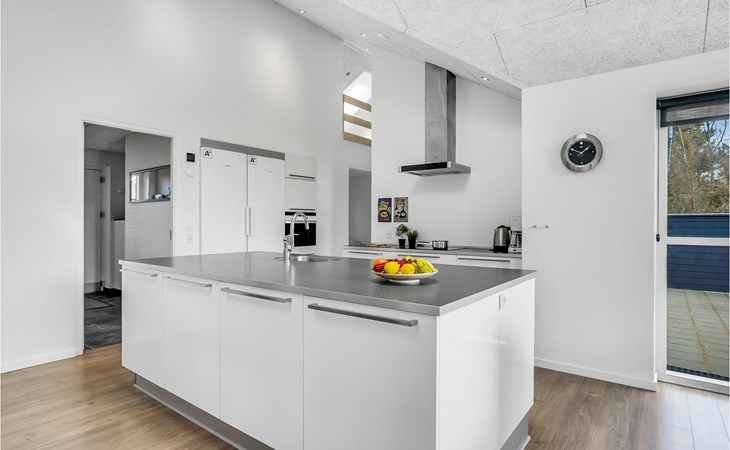 Exquisit errichtetes Ferienhaus auf einem ungestörten Dünengrund. Sie befinden sich hier nahe am Wasser und in der Nähe vom Ort. Das Haus besitzt praktischerweise zwei voneinander getrennte Schlafzimmer an je einem Ende des Hauses, und für Ihre Kinder ist ein Schlafboden vorhanden. Der Mittelpunkt ist bestimmt die behagliche Wohnküche, darüber hinaus werden Groß und Klein sicher viele Stunden im Aktivitätsraum verbringen. Für ein optimales Raumklima ist das Haus mit einem Luftwärmetauscher ausgestattet. Rund um das Haus finden Sie herrliche Terrassen zum Entspannen. In ein paar Minuten zu Fuß erreichen Sie das beliebte Blåvand. Relaxen Sie am 15 km langen Blåvand Strand.