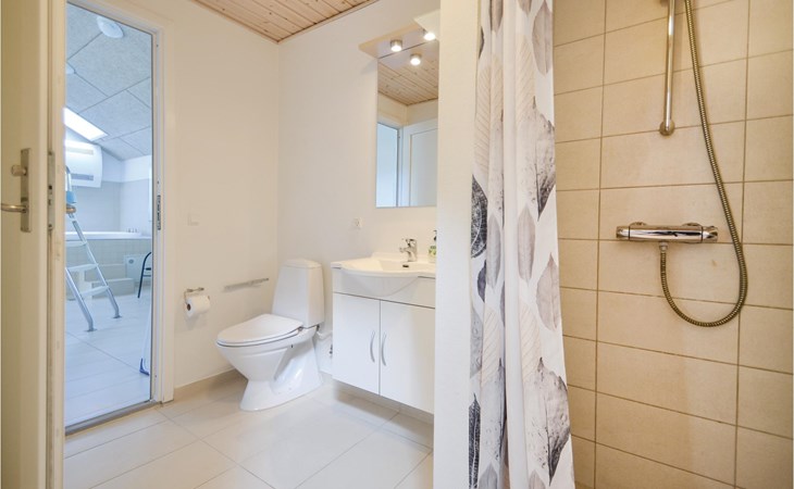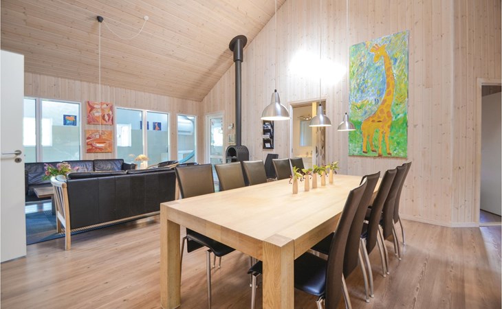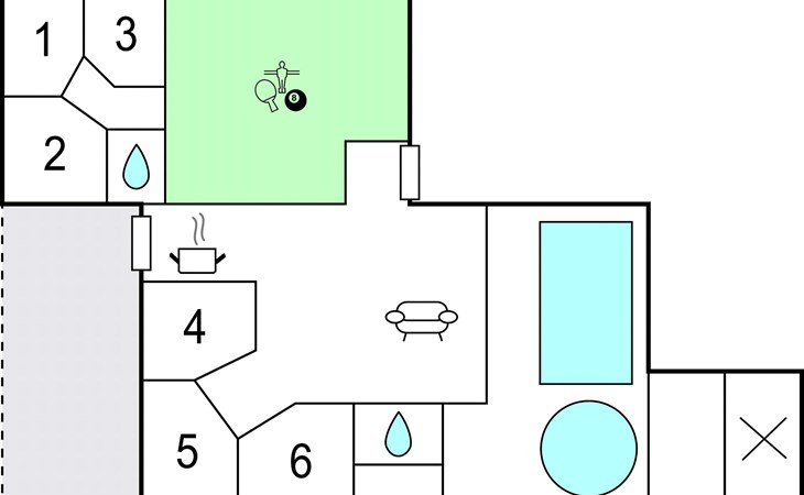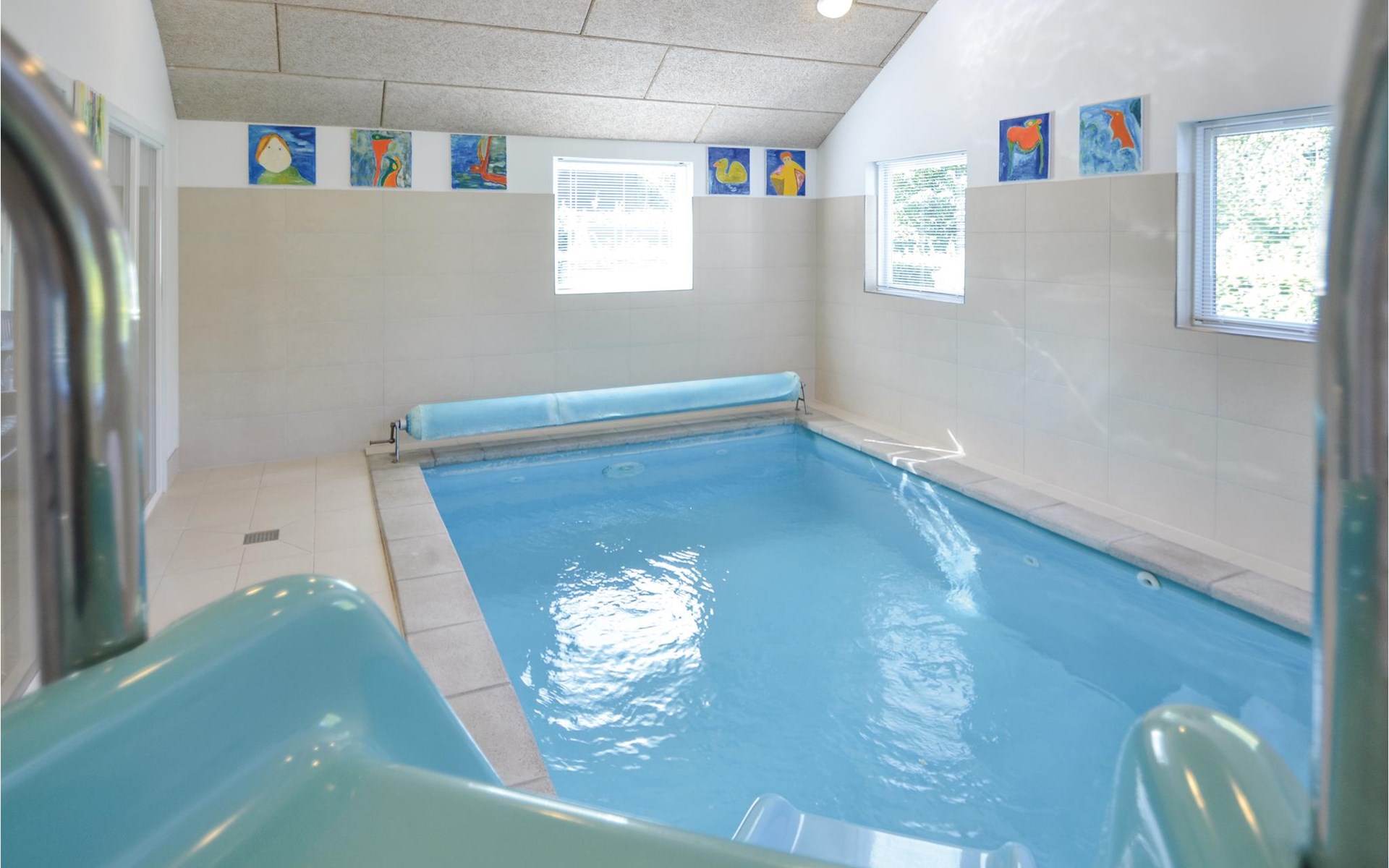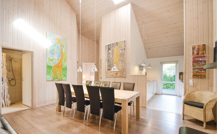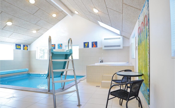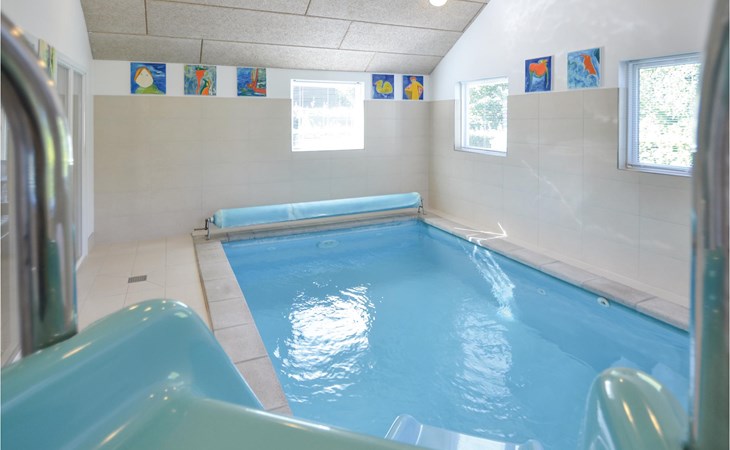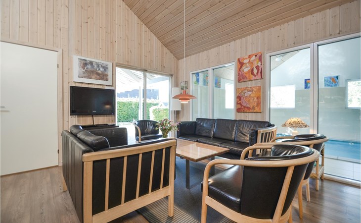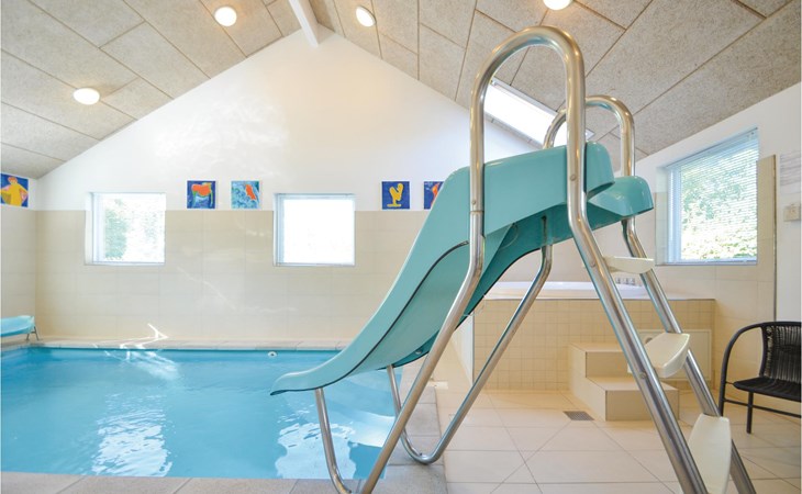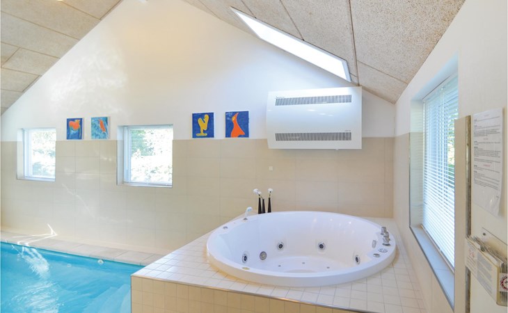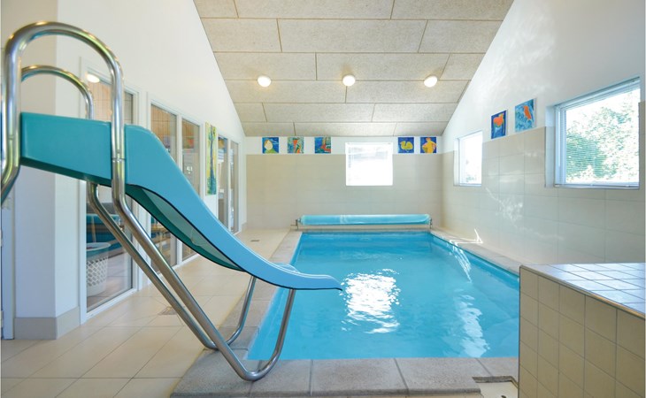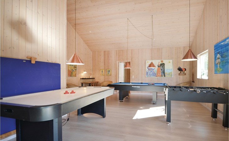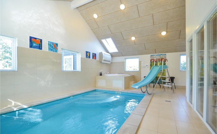 Das hübsche Ferienhaus ist äußerst gut eingerichtet und in einem modernen Stil gehalten. Die Decke der Wohnküche ist bis zum First offen, die Möbel sind bequem und sehr einladend. Für Badende gibt es einen schönen Poolraum mit Pool und Wasserrutsche, sowie einen 6-Personen Whirlpool, in dem Ihre müden Muskeln massiert werden. Im großen Aktivitätsraum finden Sie Airhockey, Tischtennis und Billard. Das Haus verfügt über 6 Schlafzimmer und einen Hems mit 4 Boxmatratzen, sicher ein Hit bei den Kindern. Draußen stehen ein Spielhaus und die große Terrasse.