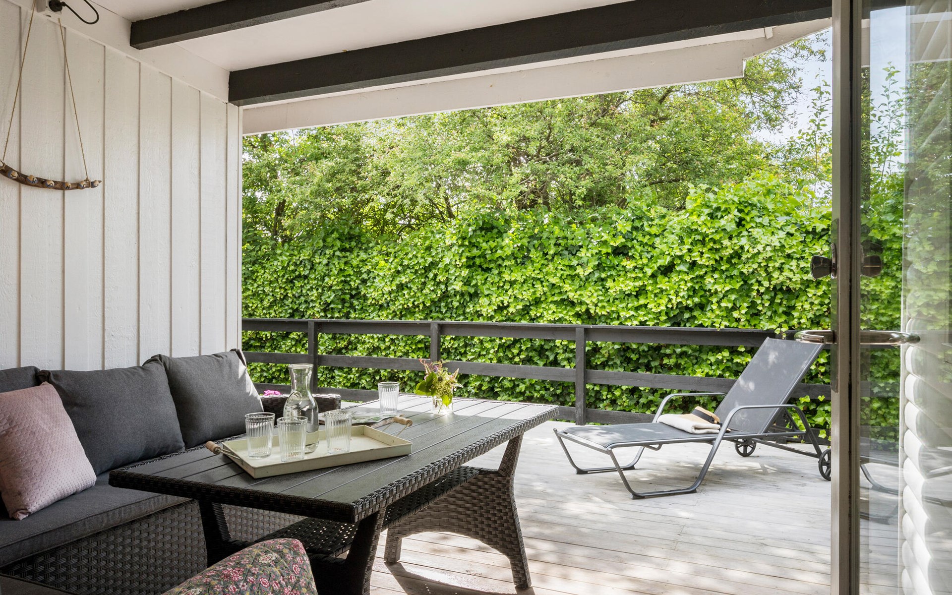 Auf der geräumigen Terrasse können Sie unter dem Sonnenschirm im Freien essen oder einfach die frische Luft und die Ruhe genießen. Das Ferienhaus ist schön am Vejle Fjord gelegen, ideal für lange Spaziergänge und erfrischende Badetage. Der nächste Sandstrand ist nur einen sehr kurzen Spaziergang entfernt und lädt zum Sonnenbaden und Schwimmen ein. Machen Sie auch einen Ausflug in die nächstgelegene Stadt Vejle, die mit zahlreichen gastronomischen und kulturellen Highlights auf Sie wartet.