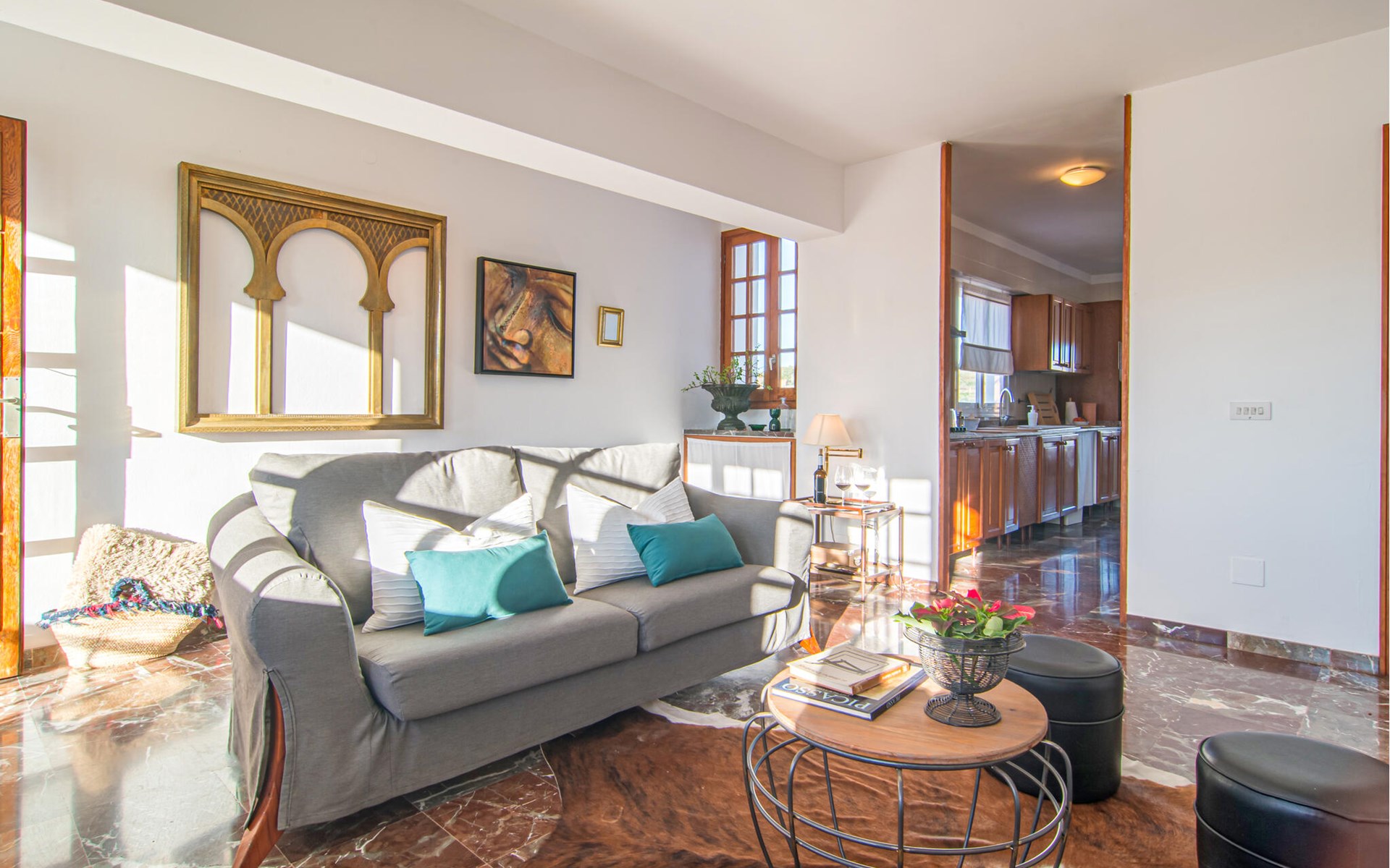 Diese helle und geräumige Ferienwohnung bietet Ihnen die Möglichkeit, Strandurlaub auf Mallorca mit reizvollen kulturellen Ausflügen zu kombinieren. Genießen Sie das geschmackvoll eingerichtete Interieur bei einem entspannten Frühstück im einladenden Essbereich und planen Sie in aller Ruhe Ihre Unternehmungen im lichtdurchfluteten Wohnzimmer. Nach einem erlebnisreichen Tag können Sie es sich für einen Spieleabend oder mit einem guten Buch auf dem Sofa gemütlich machen.