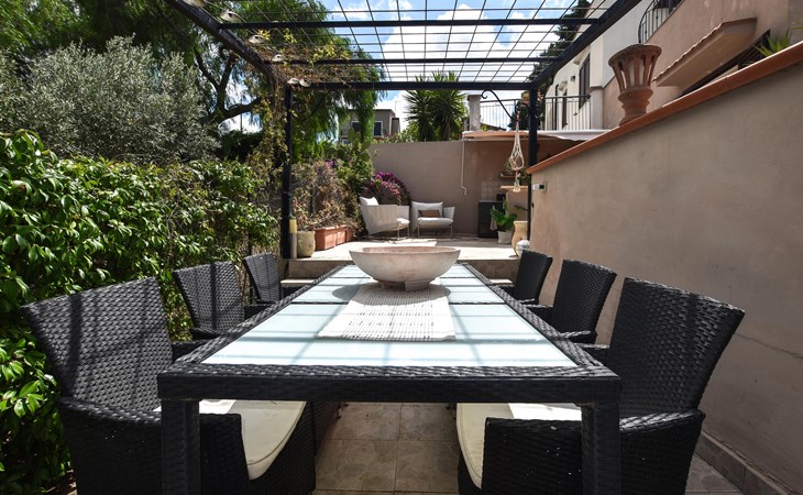 Der vielseitige Außenbereich ist wie geschaffen, um das herrliche Mittelmeerklima in vollen Zügen zu genießen. Erfrischen Sie sich in den heißen Sommermonaten im Pool, plaudern Sie bei einem Erfrischungsgetränk auf der geschmackvoll möblierten Veranda und zelebrieren Sie die gemeinsame Zeit bei stimmungsvollen Grillabenden mit Wein und Kerzenschein.