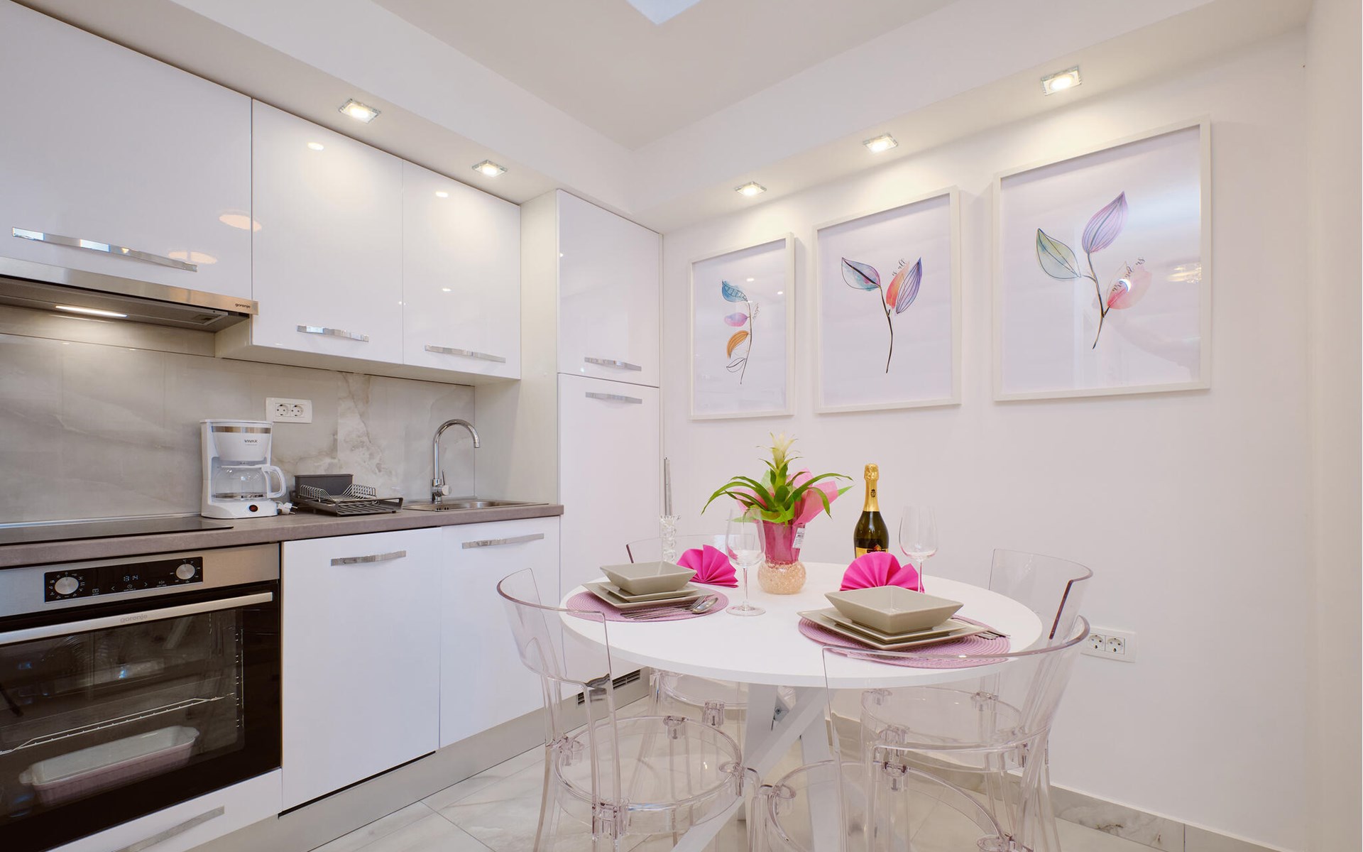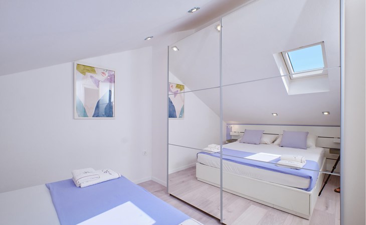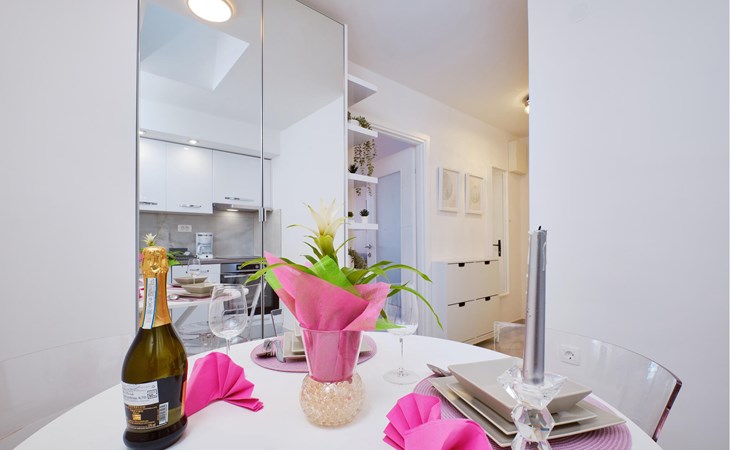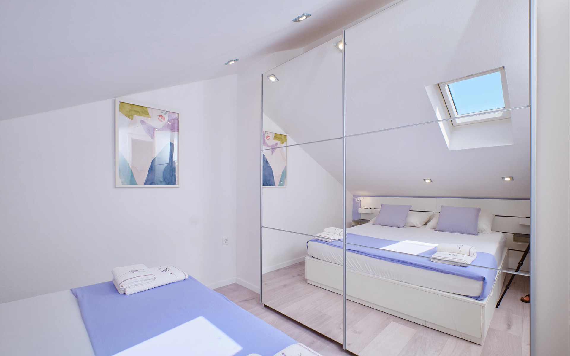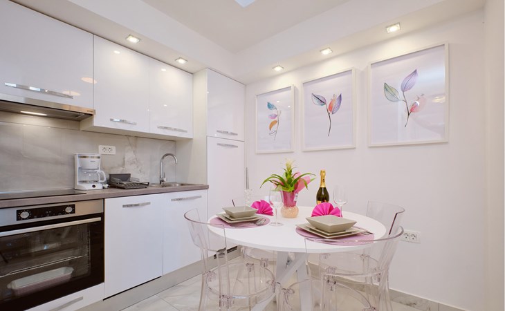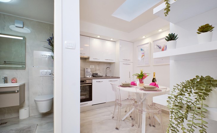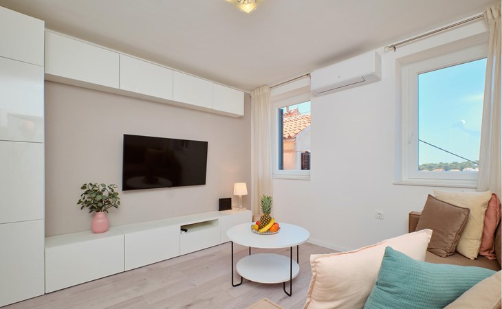 Diese attraktive und geräumige Ferienwohnung bietet Ihnen ein komfortables Refugium, nur wenige Gehminuten vom Zentrum von Mali Lošinj entfernt, und verwöhnt Sie mit einem wunderschönen Blick auf die Stadt und das Meer. Zaubern Sie sich in der modernen Küche leckere Gerichte und zelebrieren Sie die gemeinsame Zeit mit stilvollen Mahlzeiten am Esstisch. Entspannen Sie abends auf dem gemütlichen Sofa, wo Sie einen Film streamen oder sich einem guten Buch widmen können, für das Sie im Alltag keine Zeit finden.