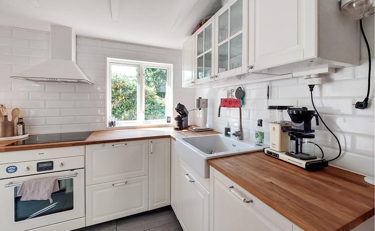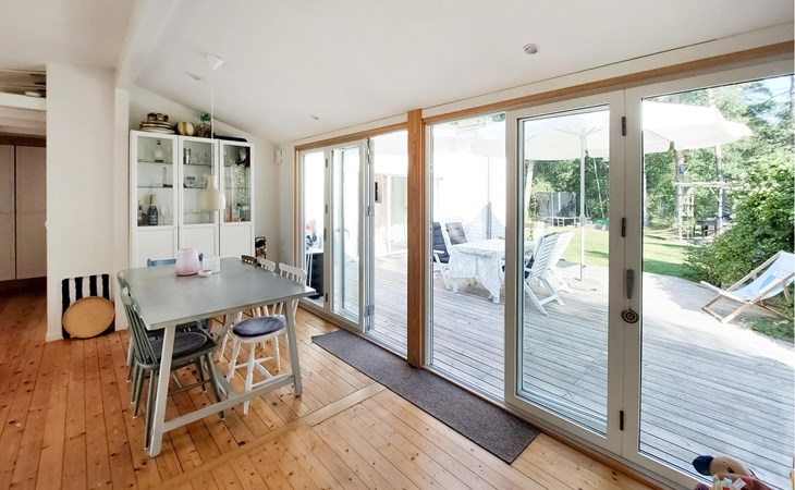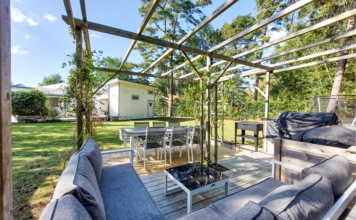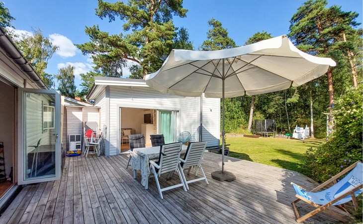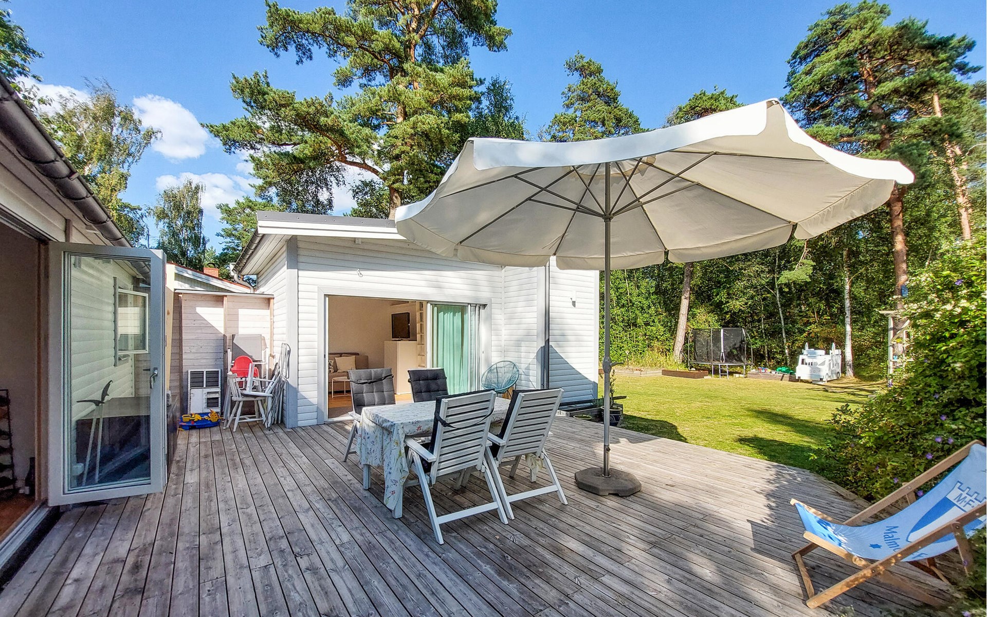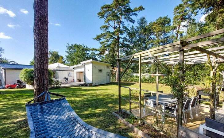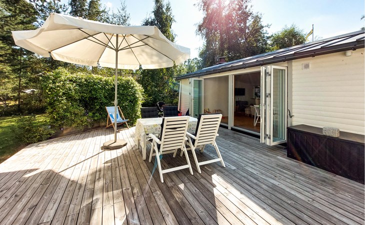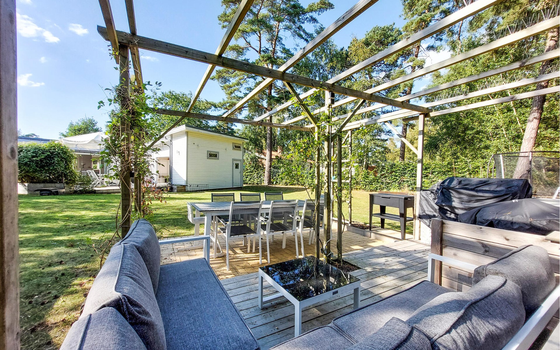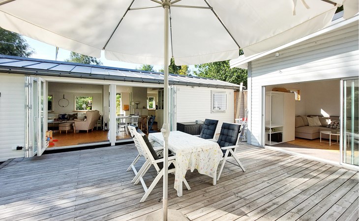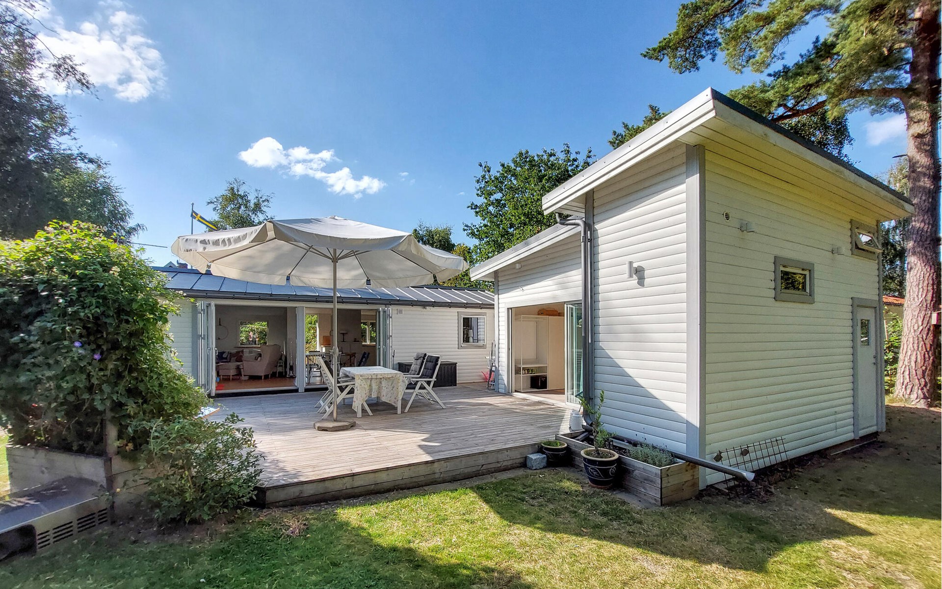 Willkommen in Ihrem Ferienhaus in Mellbystrand, dem idealen Ort für Erholung und gemeinsame Zeit mit der Familie. Genießen Sie sonnige Tage auf der großzügigen Terrasse, die mit bequemen Sitzmöbeln und einem großen Esstisch zum Verweilen einlädt. Das helle Wohnzimmer mit der gemütlichen Sofalandschaft und dem Kaminofen ist der ideale Ort, um den Tag in ruhiger Atmosphäre ausklingen zu lassen. Große Fenster lassen viel Licht herein und bieten Ihnen stets einen schönen Blick ins Grüne. Die gut ausgestattete Küche ermöglicht es Ihnen, Ihre Lieblingsgerichte zuzubereiten und dabei die Gesellschaft Ihrer Lieben zu genießen.