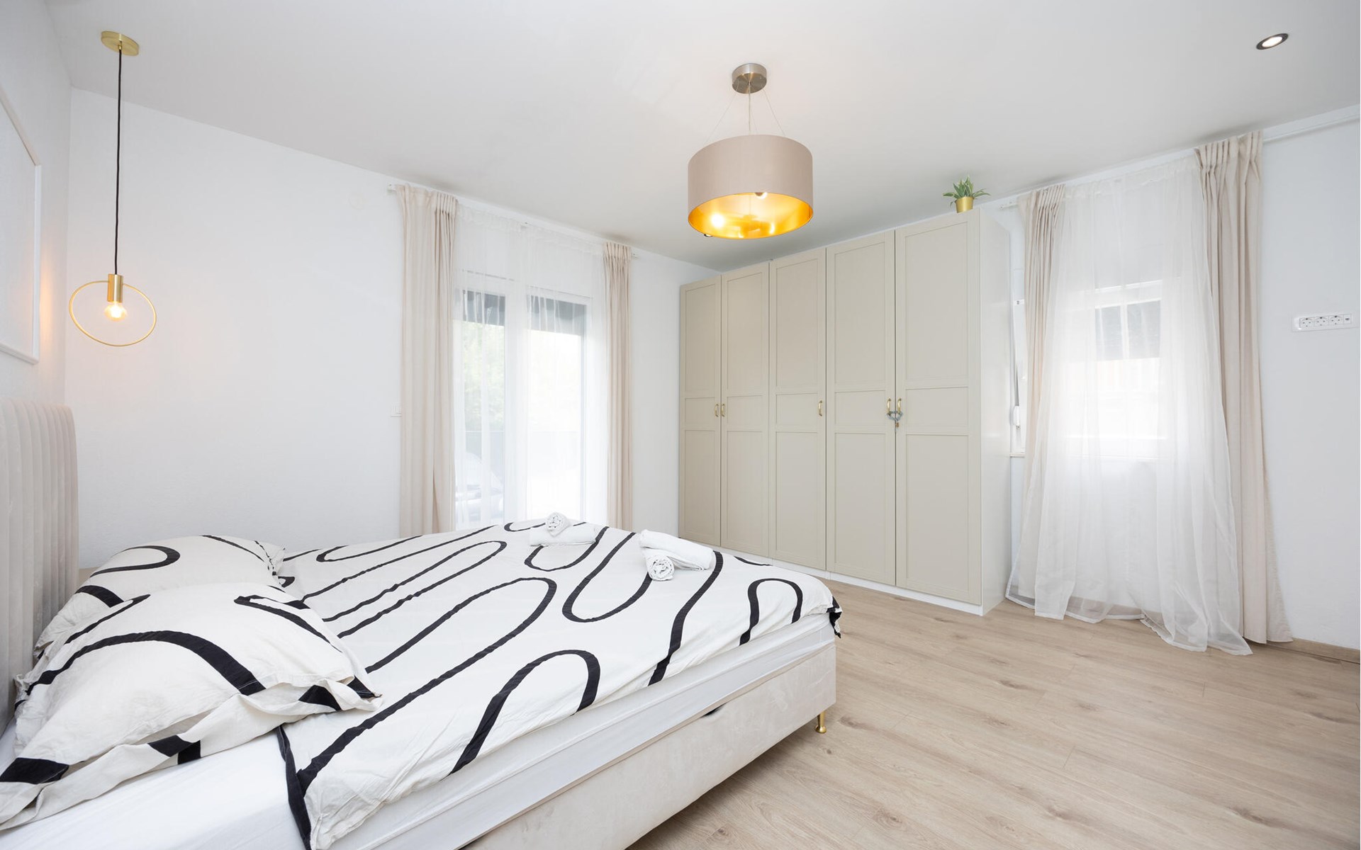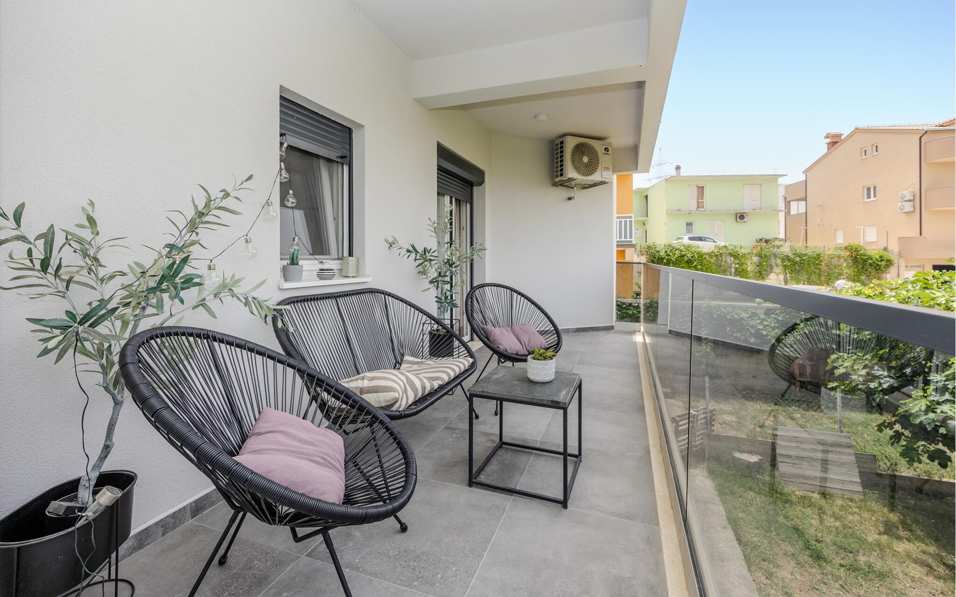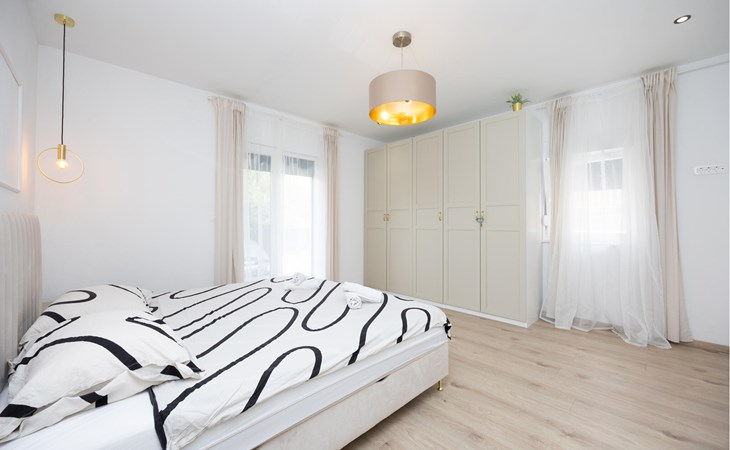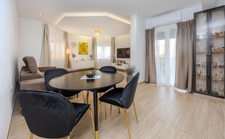 Diese charmante Ferienwohnung im ersten Stock bietet Ihnen alles, was Sie für einen erholsamen Familienurlaub brauchen. Die moderne Einrichtung sorgt für Wohlfühlatmosphäre, während beide Schlafzimmer über eigene Balkone mit Gartenmöbeln verfügen, perfekt für entspannte Momente. Die Kombination aus Komfort und Privatsphäre macht diese Wohnung zu einem idealen Rückzugsort in Split.