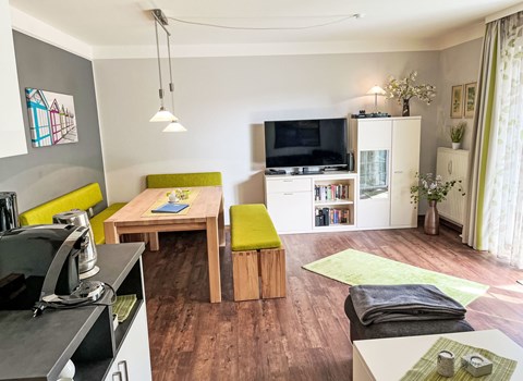 Die moderne und stilvolle Wohnung empfängt Sie in hervorragender Lage nahe dem Strand und eignet sich bestens für einen Urlaub mit wunderbaren Stunden am Meer und spannenden Unternehmungen in der Umgebung. Entspannen Sie nach einem aktiven Tag in der Infrarotsauna und machen Sie es sich am behaglich knisternden Kaminofen gemütlich.
