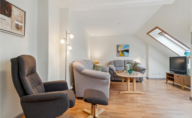 Entfliehen Sie dem Alltag und verbringen Sie einen erholsamen Urlaub in der Wohnung, die ihre Gäste zentral in Rønne und in kurzer Entfernung zum Strand empfängt. Die wohnliche Einrichtung bietet eine geschmackvolle Kombination aus modernen Elementen und Holz und schafft eine stillvolle Atmosphäre. Freuen Sie sich auf gemütliche Filmabende auf dem Sofa am Ende eines erlebnisreichen Tages.