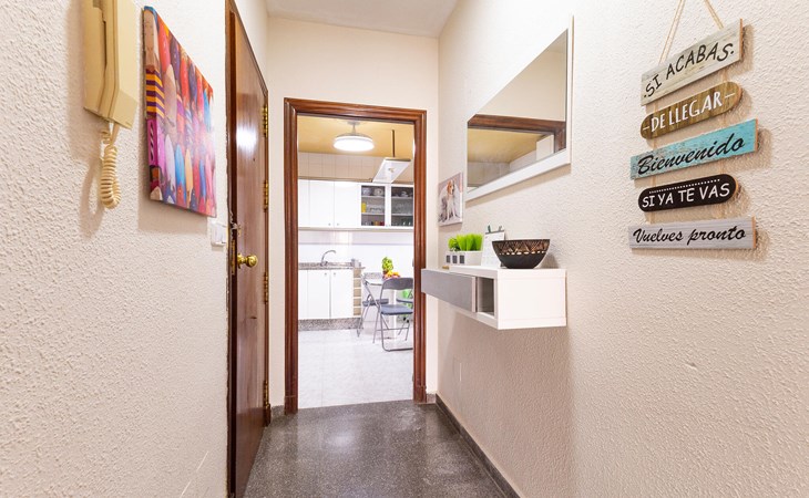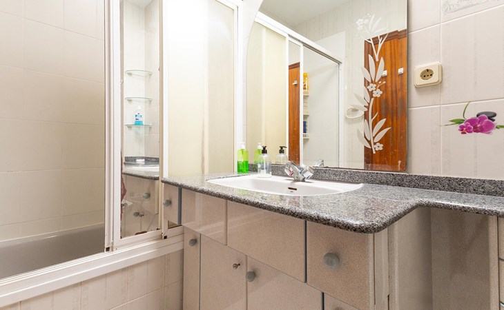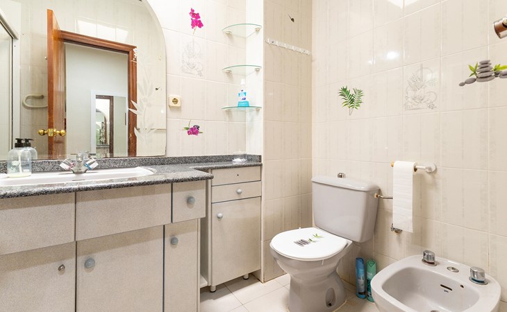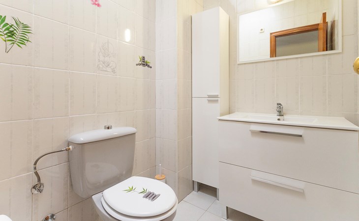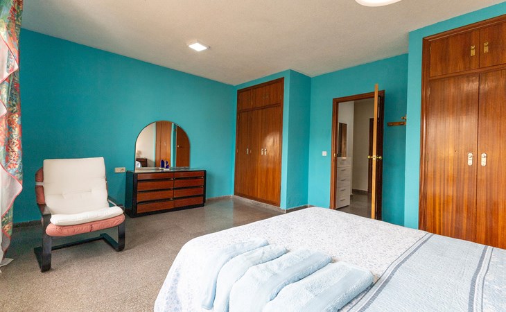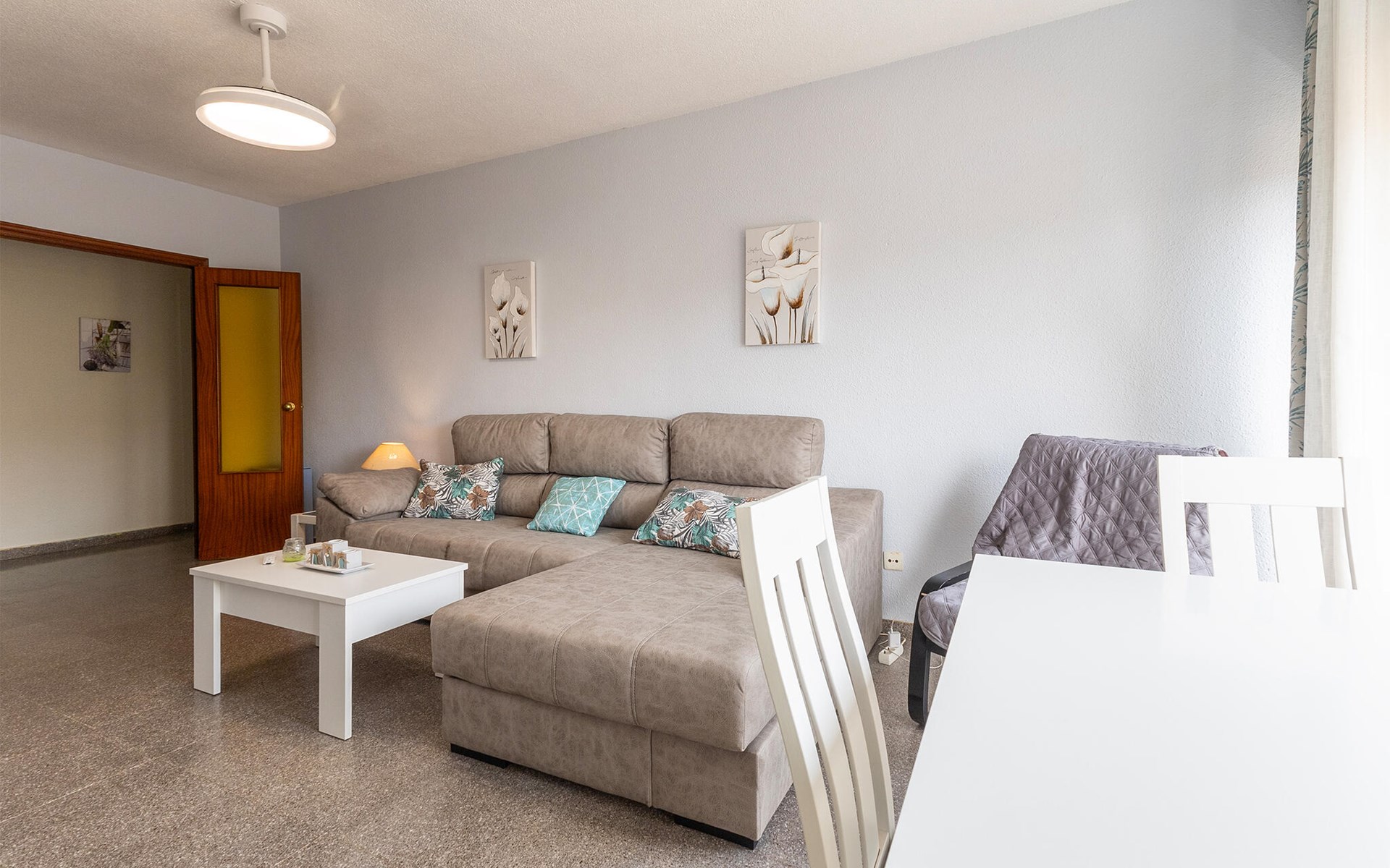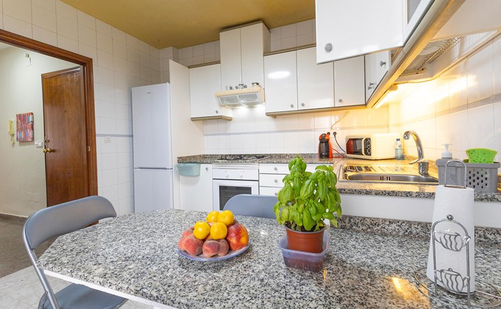In diesem Ferienhaus wohnen Sie nahe am Meer und zugleich in einem charmanten Ort mit typisch spanischem Flair. Im hellen Wohnzimmer lädt das große Sofa zu entspannten Stunden ein. Nutzen Sie den modernen TV-Bereich für einen gemütlichen Filmabend oder verbringen Sie gesellige Runden am Esstisch mit Blick auf die Terrasse. Bereiten Sie in der Küche köstliche Mahlzeiten zu. Mit großzügigen Arbeitsflächen, Esstisch und allen wichtigen Geräten finden Sie hier die idealen Voraussetzungen für gemeinsame Kochmomente.