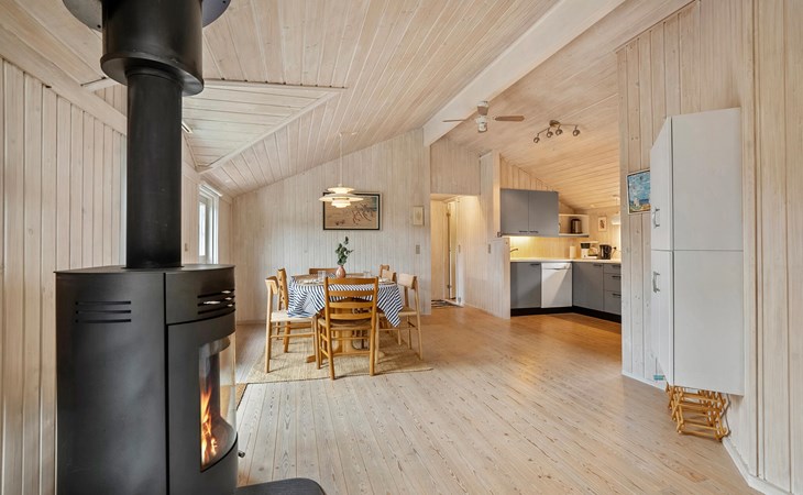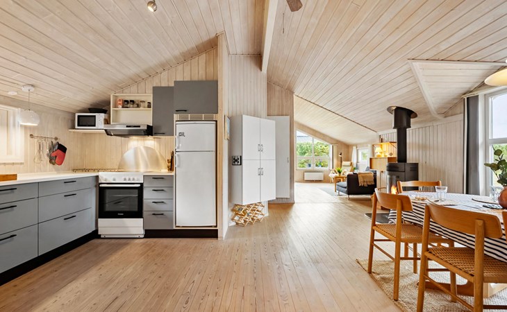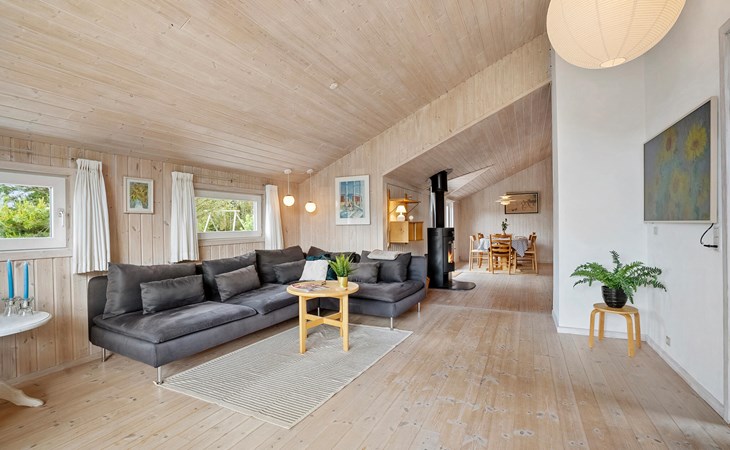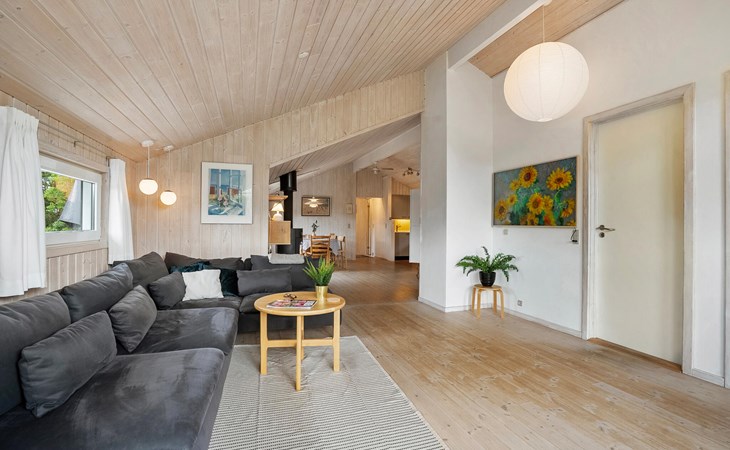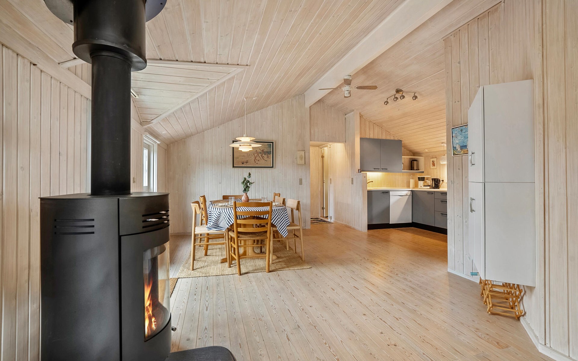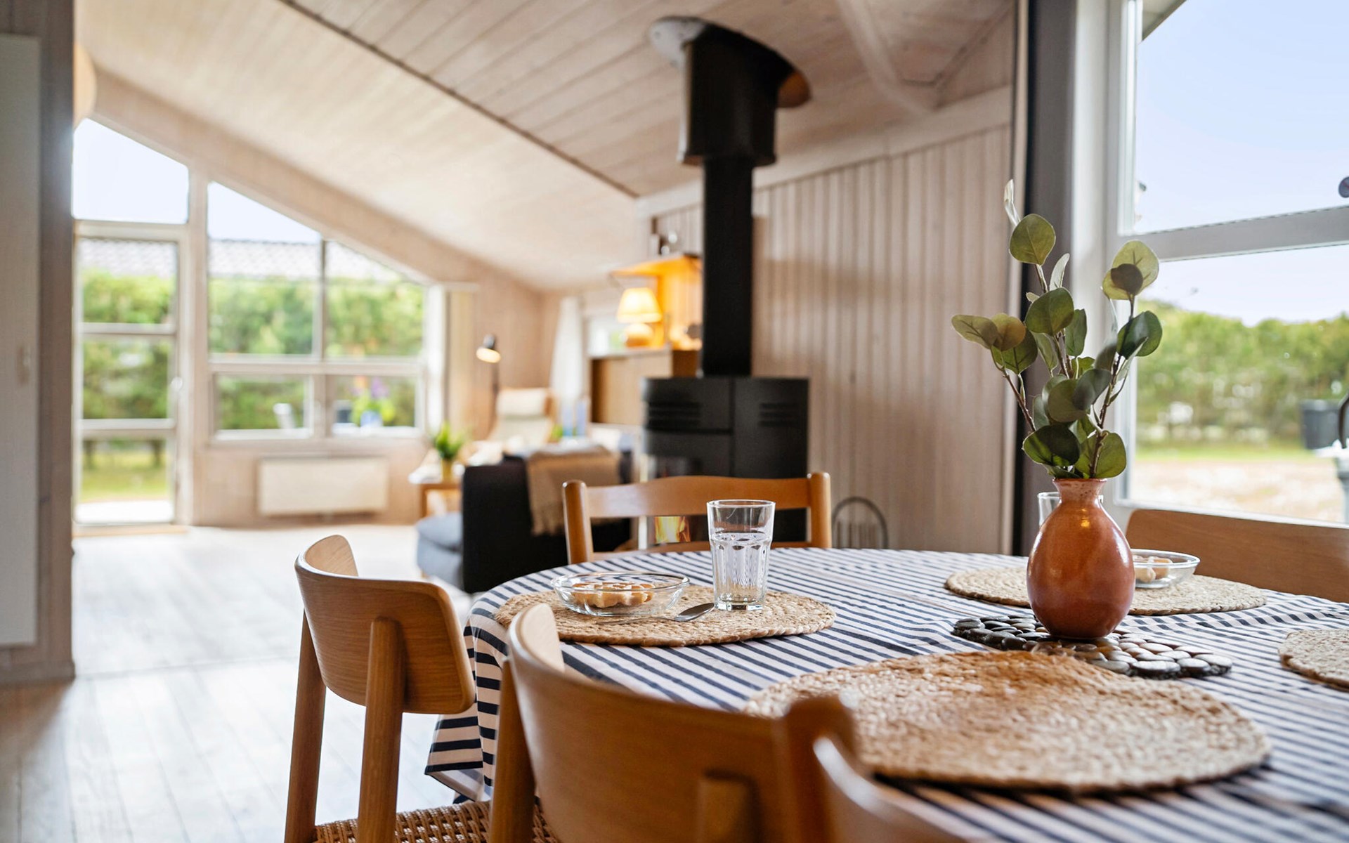 Dieses schöne Urlaubsdomizil begrüßt Sie nur wenige Schritte vom Strand von Lyngså entfernt mit einer hellen und freundlichen Wohnatmosphäre. Lassen Sie sich beim Kochen vom Blick ins Grüne inspirieren und freuen Sie sich auf harmonische Mahlzeiten im behaglichen Essbereich. An kühlen Tagen können Sie den Kaminofen entfachen, nach einem langen Strandspaziergang im Whirlpool entspannen oder sich wohlige Momente in der Sauna gönnen. Streamen Sie einen Film oder widmen Sie sich Ihren Liebsten bei einem gemütlichen Spieleabend auf dem Sofa.