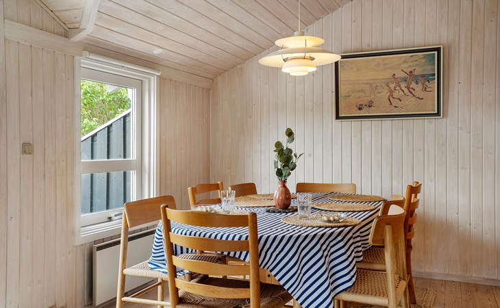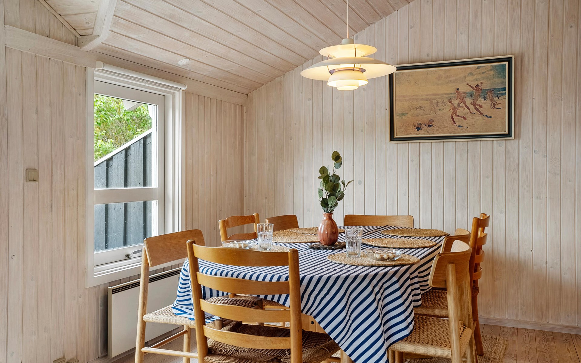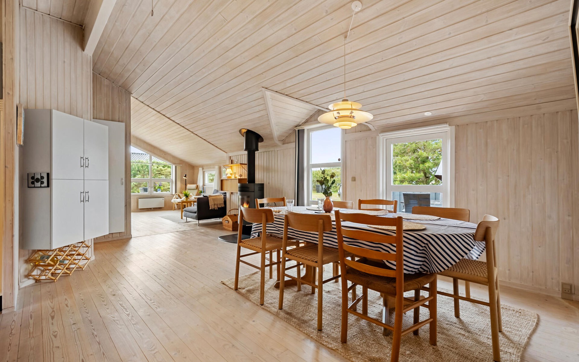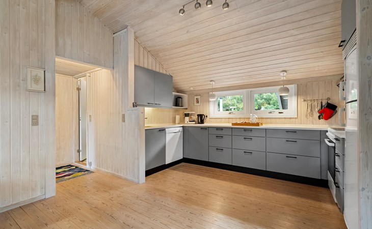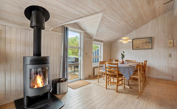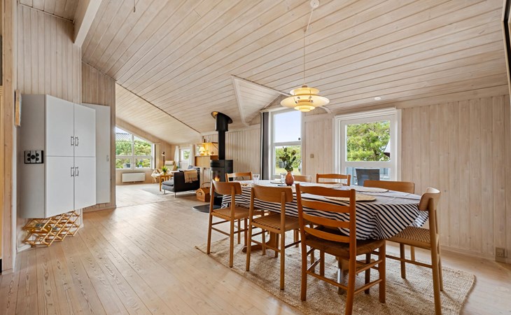 Dieses schöne Urlaubsdomizil begrüßt Sie nur wenige Schritte vom Strand von Lyngså entfernt mit einer hellen und freundlichen Wohnatmosphäre. Lassen Sie sich beim Kochen vom Blick ins Grüne inspirieren und freuen Sie sich auf harmonische Mahlzeiten im behaglichen Essbereich. An kühlen Tagen können Sie den Kaminofen entfachen, nach einem langen Strandspaziergang im Whirlpool entspannen oder sich wohlige Momente in der Sauna gönnen. Streamen Sie einen Film oder widmen Sie sich Ihren Liebsten bei einem gemütlichen Spieleabend auf dem Sofa.