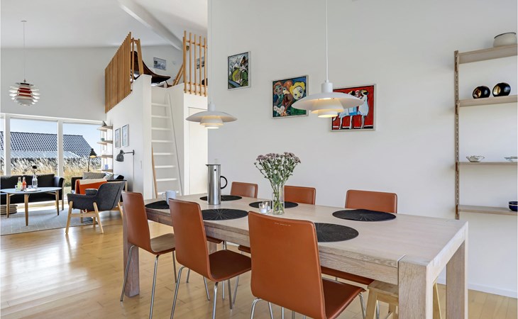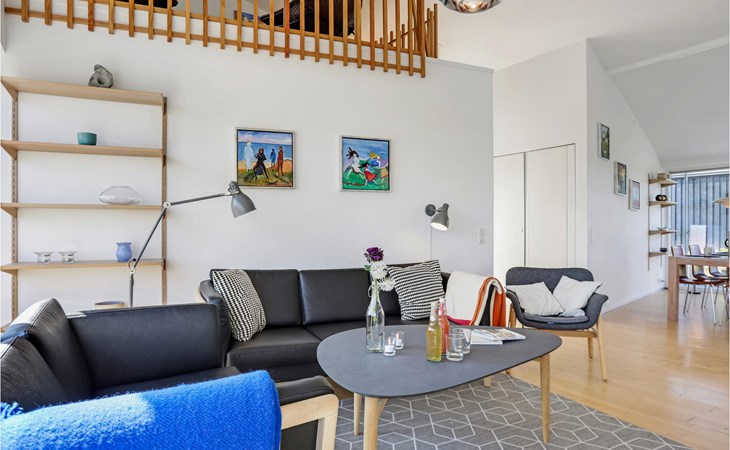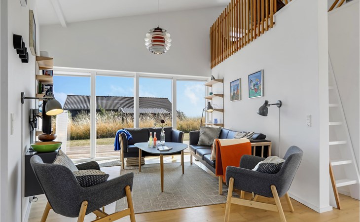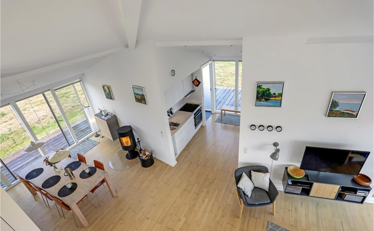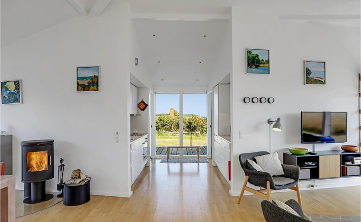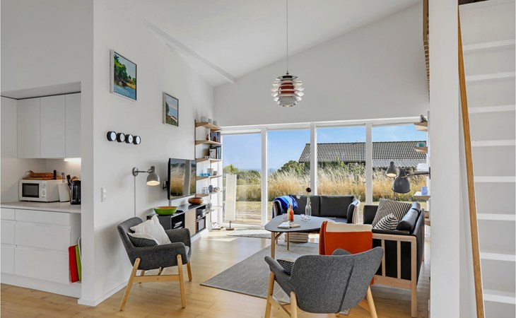 Verbringen Sie unvergessliche Ferien in diesem schönen und voll ausgestatteten Ferienhaus mit Meerblick. Das Haus verfügt über hohe Decken, die durch einen schönen Sitzbereich voll ausgenutzt wird. Von dort können Sie den gesamten Wohnbereich des Hauses überblicken. Die offene Gestaltung dieses Hauses bietet Ihnen als Familie, dass Sie zusammen viel Zeit verbringen können. Sollten sie Entspannung in der Sauna suchen, finden Sie diese im Badezimmer. Anschließend können Sie im Garten ausschwitzen und den Ausblick auf das Meer genießen.