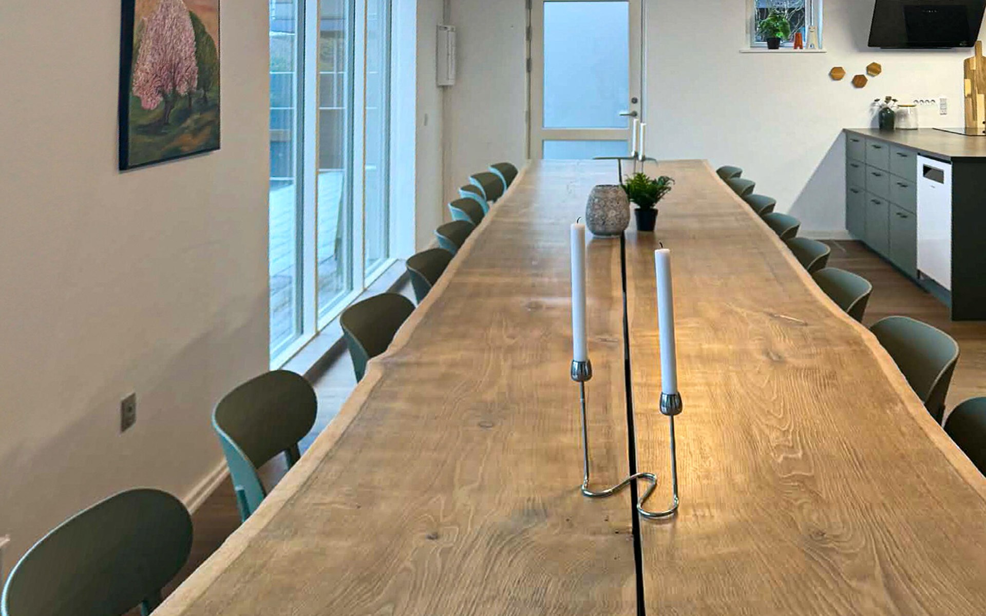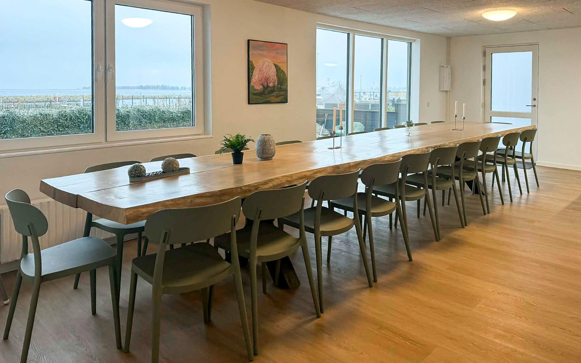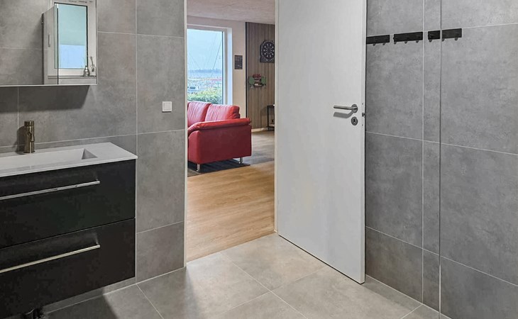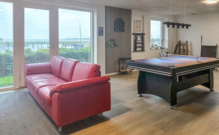 Freuen Sie sich auf einen stilvollen Aufenthalt in Ihrem modernen Ferienhaus, das direkt am Wasser liegt und durch seine Lage am Hafen ein ganz besonderes Flair bietet. Das Haus ist großzügig konzipiert und bietet ausreichend Platz für eine große Reisegruppe. Genießen Sie den offenen, lichtdurchfluteten Wohnbereich mit großer Fensterfront und Blick auf die Boote im Hafen. Entspannen Sie auf der weichen Sofalandschaft, sehen Sie einen Film oder lesen Sie ein Buch in der gemütlichen Sitzecke. Die moderne Küche mit hochwertigen Geräten bietet alles, was Sie für gemeinsames Kochen und gesellige Mahlzeiten benötigen. Ob beim Frühstück mit Morgensonne oder beim Abendessen mit Blick auf den Sonnenuntergang – hier wird jede Mahlzeit zum Genuss.