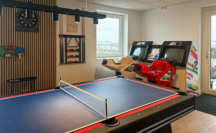 Verbringen Sie Ihre Tage im Außenbereich mit Whirlpool. Lassen Sie den Abend an der Feuerstelle ausklingen oder genießen Sie Grillabende unter freiem Himmel. Kinder freuen sich über die Schaukel und die Rutsche, während in einem Nebengebäude mit Tischtennis und Airhockey auch bei Wind und Wetter für Unterhaltung gesorgt ist.