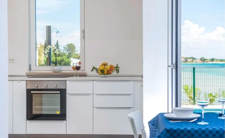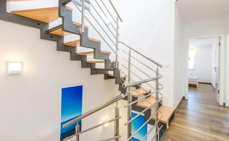 Genießen Sie den Blick auf das Meer in diesem komfortablen Ferienhaus mit Pool.