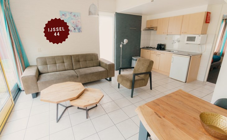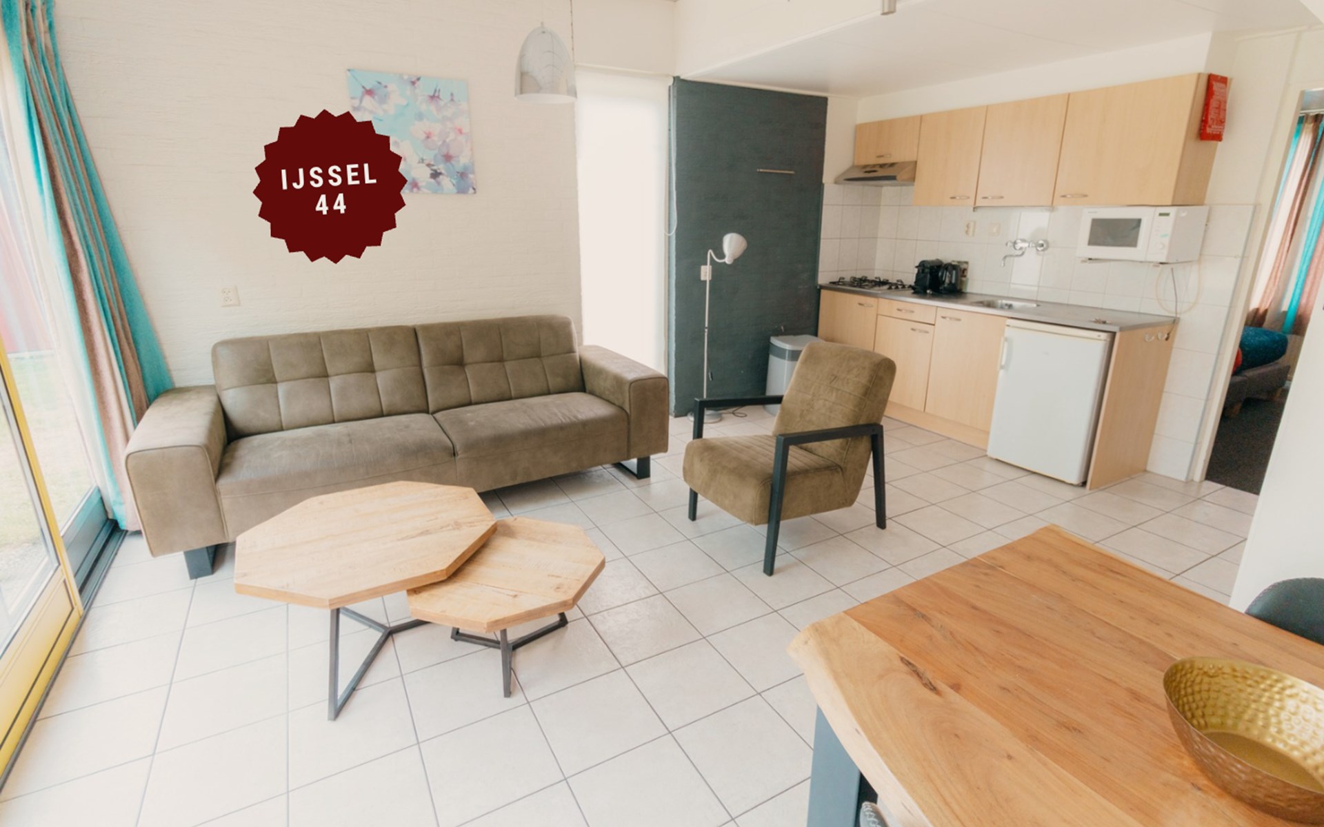 Der Bungalow IJssel ist komplett ausgestattet und bietet eine praktische und komfortable Aufteilung für einen unbeschwerten Aufenthalt. Die offene Küche lädt dazu ein, gemeinsam zu kochen und Mahlzeiten zu genießen. Das gemütliche Wohnzimmer mit Fliesenboden bietet viel Platz zum Entspannen nach einem erlebnisreichen Tag in der Natur. Das geschmackvoll eingerichtete Schlafzimmer sorgt für eine angenehme Nachtruhe, damit Sie den nächsten Tag ausgeruht genießen können.