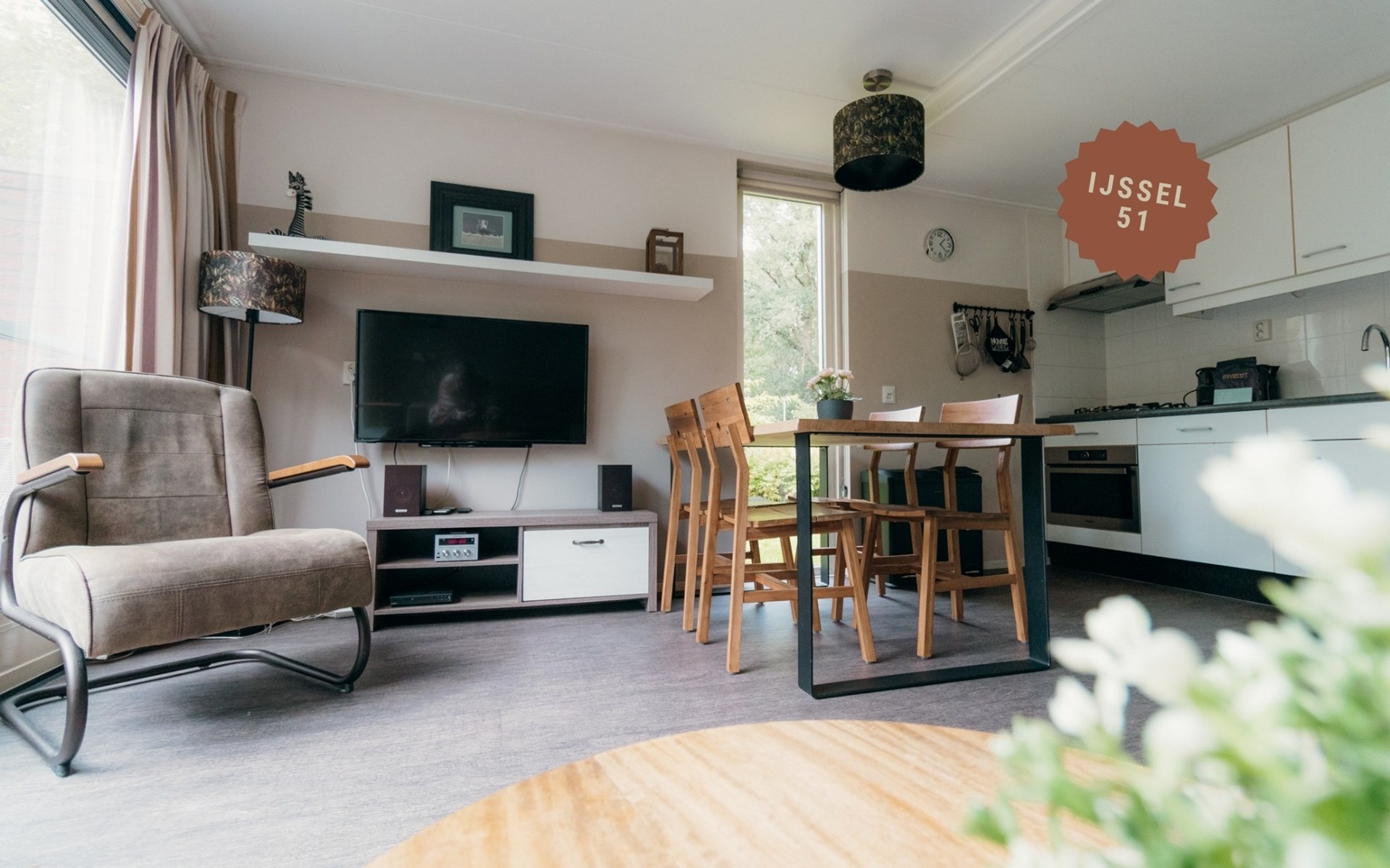 Der IJssel Comfort Bungalow bietet allen Komfort wie zu Hause, mit einem geräumigen Wohnzimmer mit Kabel-TV und einem Schlafzimmer mit bequemen Boxspringbetten für einen erholsamen Schlaf. Draußen gibt es eine Terrasse mit Gartenmöbeln, ideal zum Entspannen und Genießen der ruhigen Natur. Ob für ein romantisches Wochenende, einen Kurzurlaub oder einfach zum Abschalten – dieser Bungalow vereint Komfort, Entspannung und Natur auf perfekte Weise.
