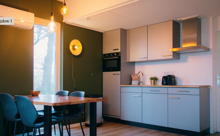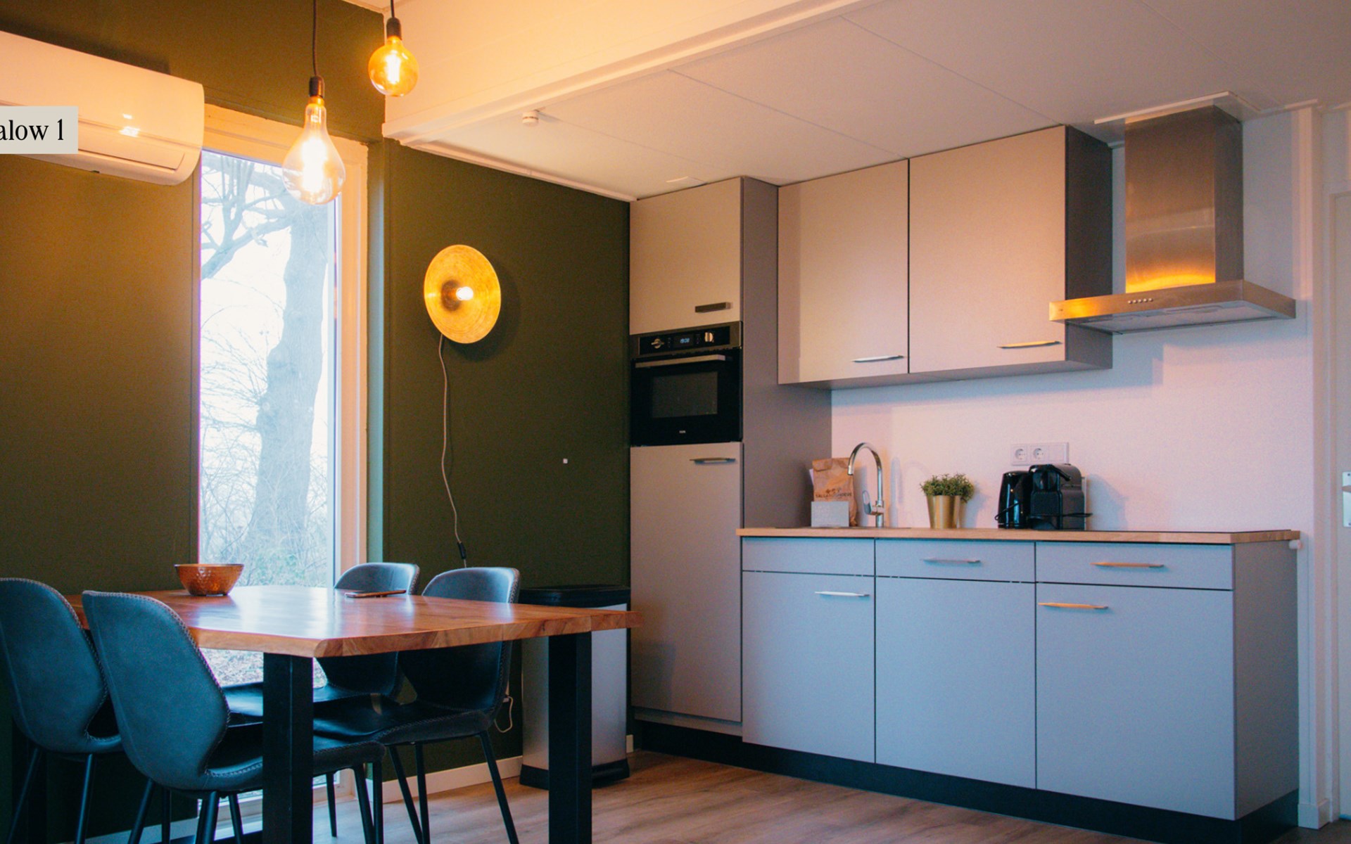 Der IJssel Comfort Plus Bungalow ist die ideale Unterkunft für einen entspannten Urlaub zu zweit – mitten im grünen Herzen von Salland in Overijssel. Dieser gemütliche Bungalow für zwei Personen bietet alles, was Sie für einen unbeschwerten Aufenthalt benötigen. Der Bungalow verfügt über einen Fernseher, ein bequemes Sofa und frisch bezogene Betten, damit Sie den Komfort von Zuhause genießen können – umgeben von der beruhigenden Natur des Sallandse Heuvelrugs.