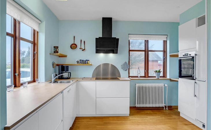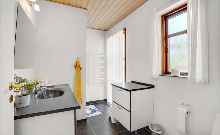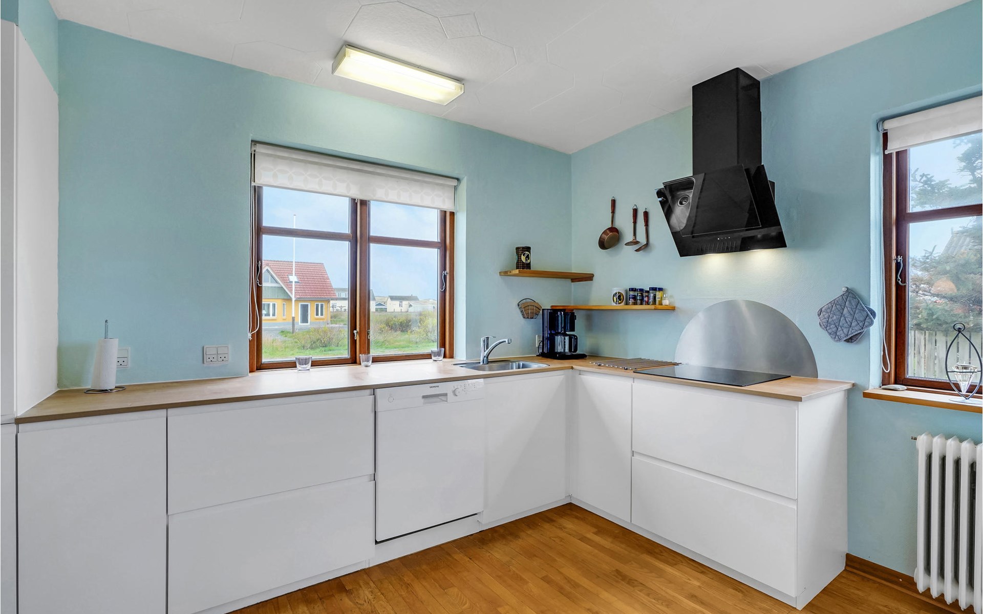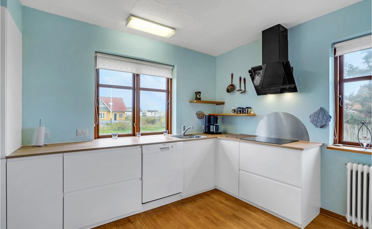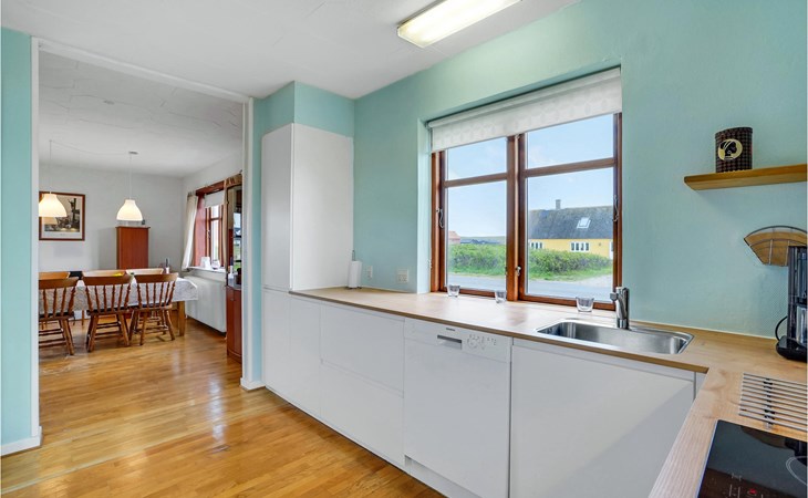 In der hübschen Region der Vejlby Dünen liegt dieses gemütliche Ferienhaus. Eingerichtet mit einer gut ausgestatten Küche und einem stilvollen Essplatz im Retro erinnnert das Haus angenehm an einen Besuch bei der Großmutter, was mitterleile eine Rarität ist. Das große lichte Wohnzimmer, drei Schlafzimmer und ein helles Badezimmer mit Dusche bieten viel Raum für die ganze Familie.