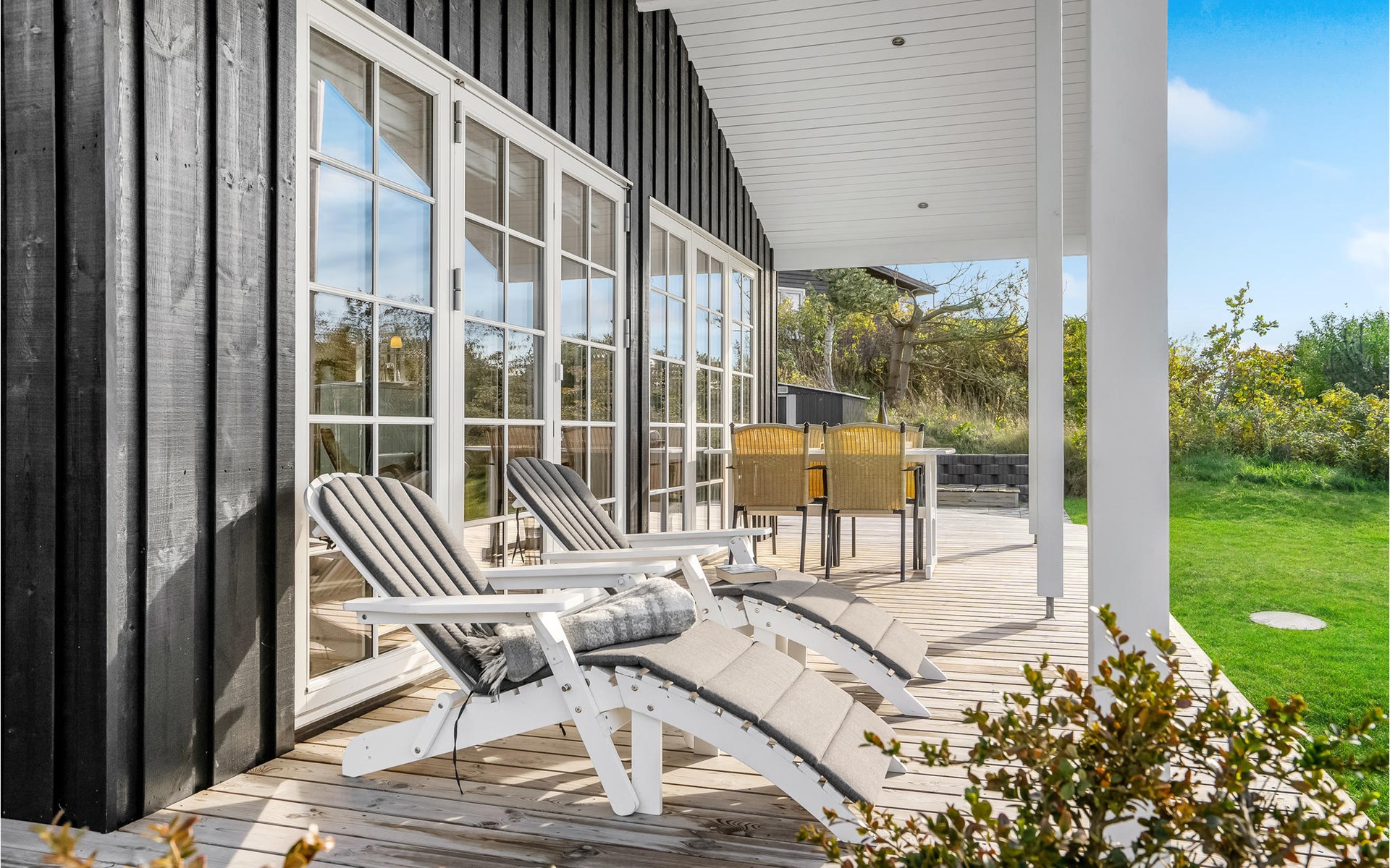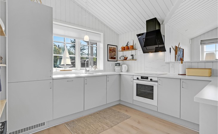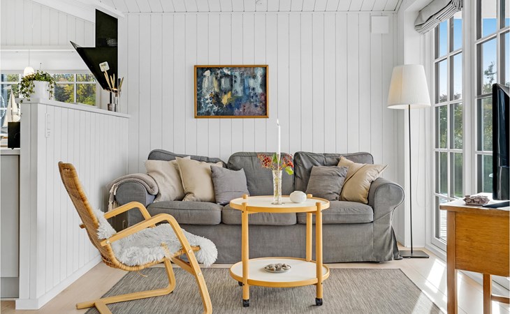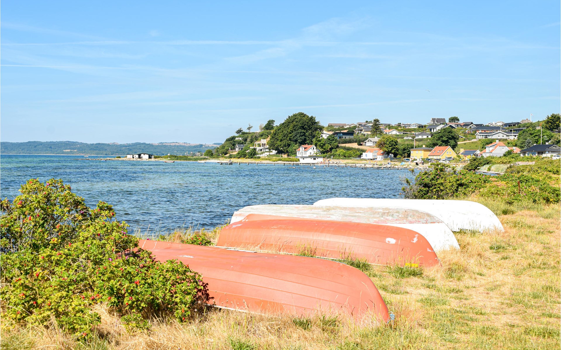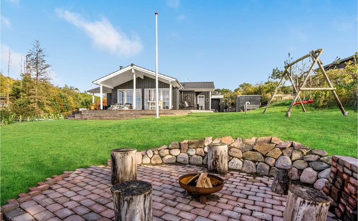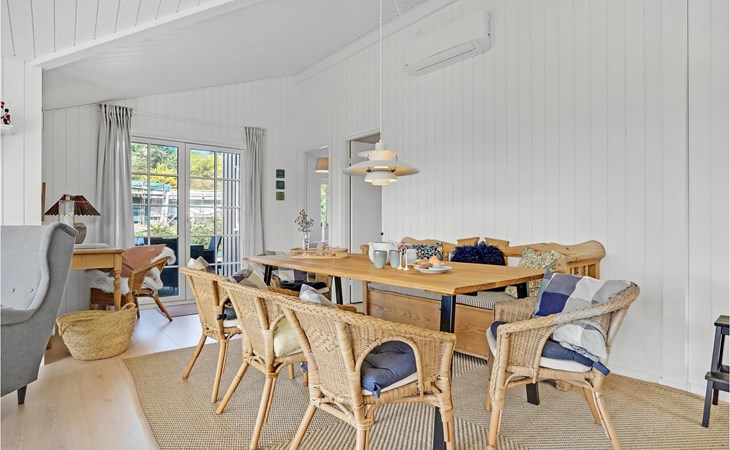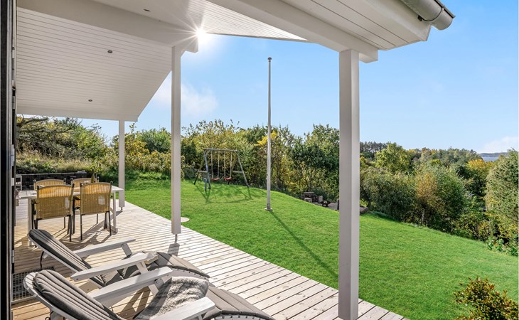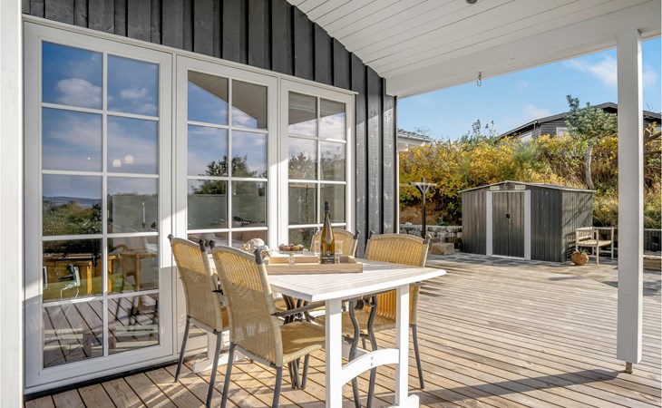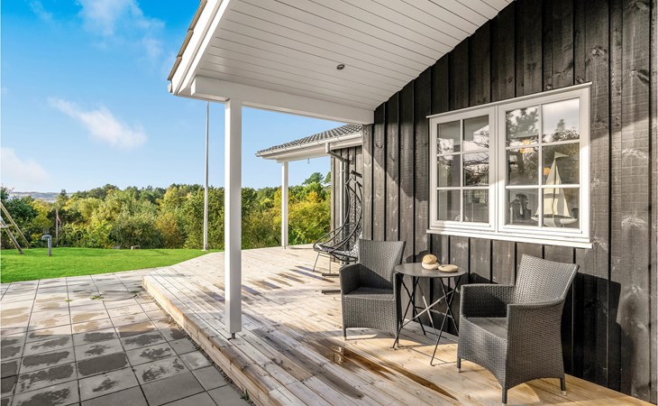 Qualitiativ hochwertiges Ferienhaus auf einem Naturgrundstück mit Blick auf das Wasser und in fußläufiger Entferunung von einem kinderfreundlichen Sandstrand entfernt. Das Haus ist mit geräumigen Schlafzimmern eingerichtet. Die Küche ist erstklassig. Vom Essbereich aus haben Sie Zugang zu einer überdachten Terrasse und die Terrassenbereiche sind rund um das gesamte Haus angelegt.