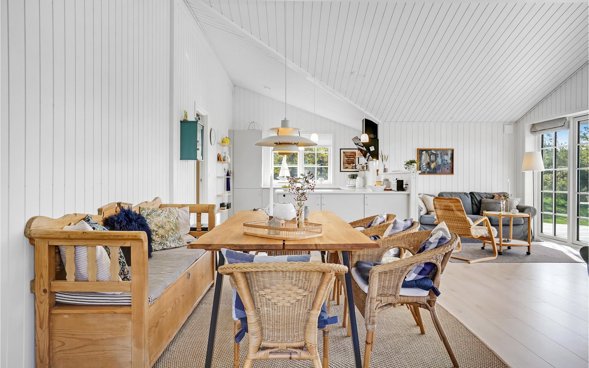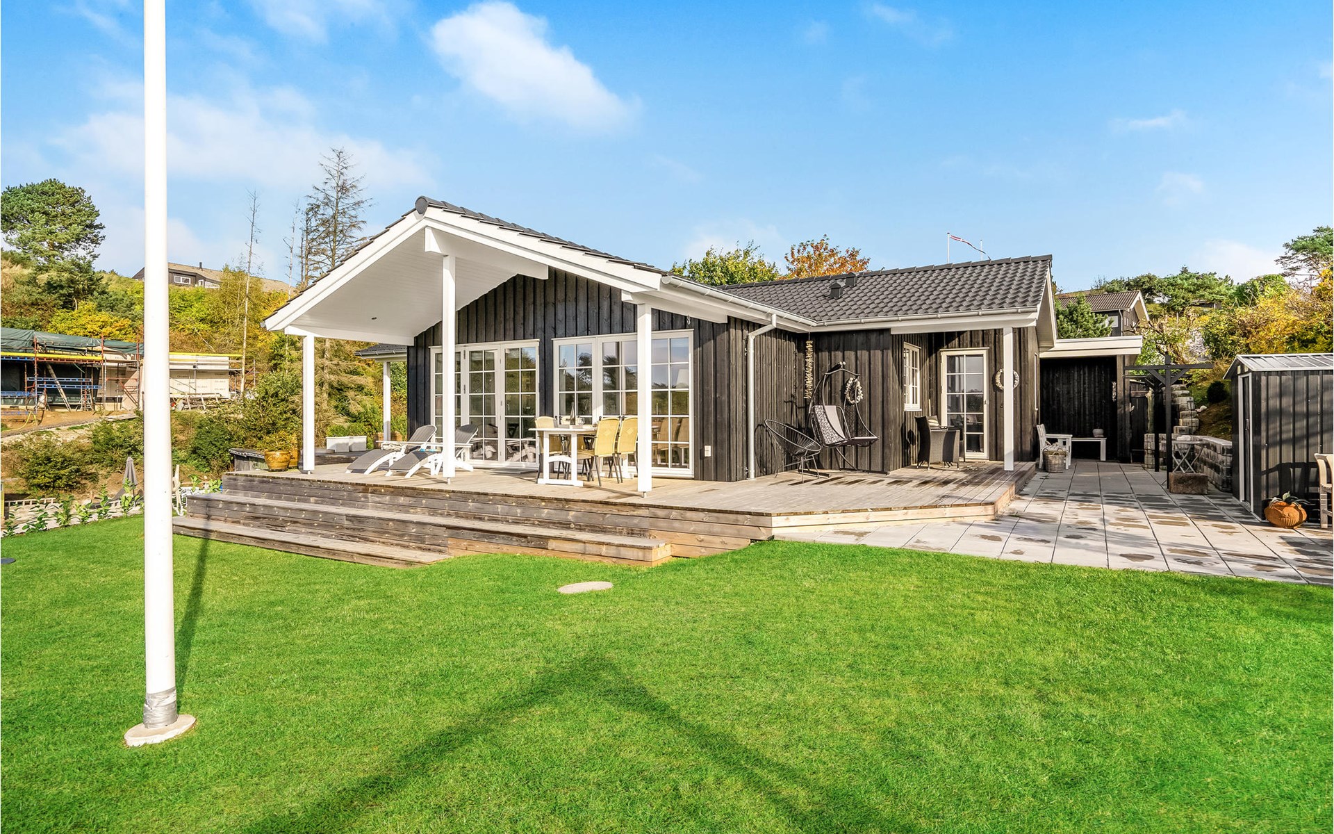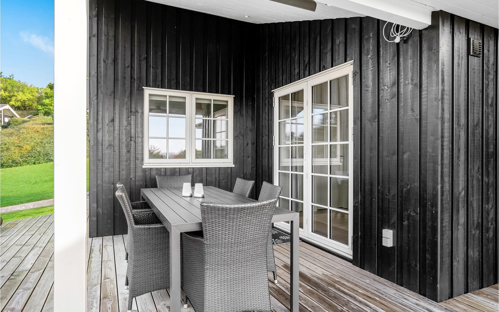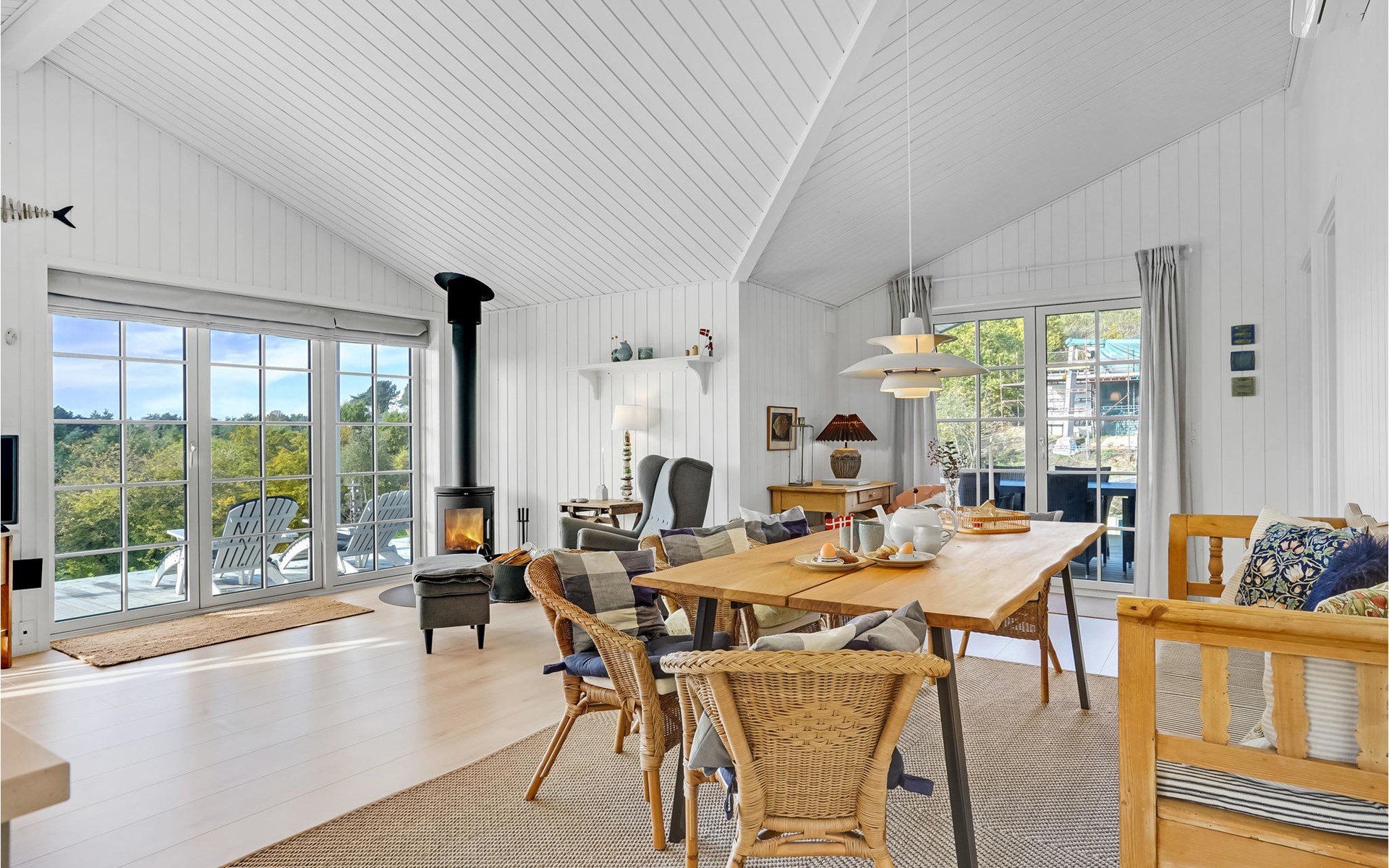 Qualitiativ hochwertiges Ferienhaus auf einem Naturgrundstück mit Blick auf das Wasser und in fußläufiger Entferunung von einem kinderfreundlichen Sandstrand entfernt. Das Haus ist mit geräumigen Schlafzimmern eingerichtet. Die Küche ist erstklassig. Vom Essbereich aus haben Sie Zugang zu einer überdachten Terrasse und die Terrassenbereiche sind rund um das gesamte Haus angelegt.
