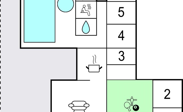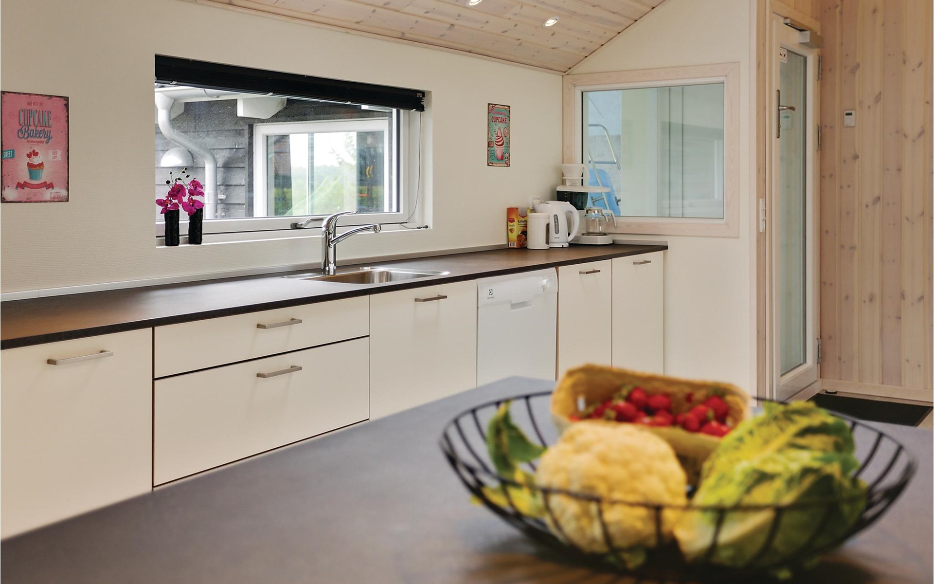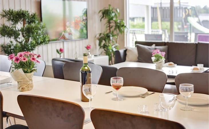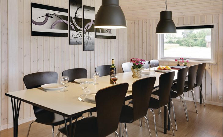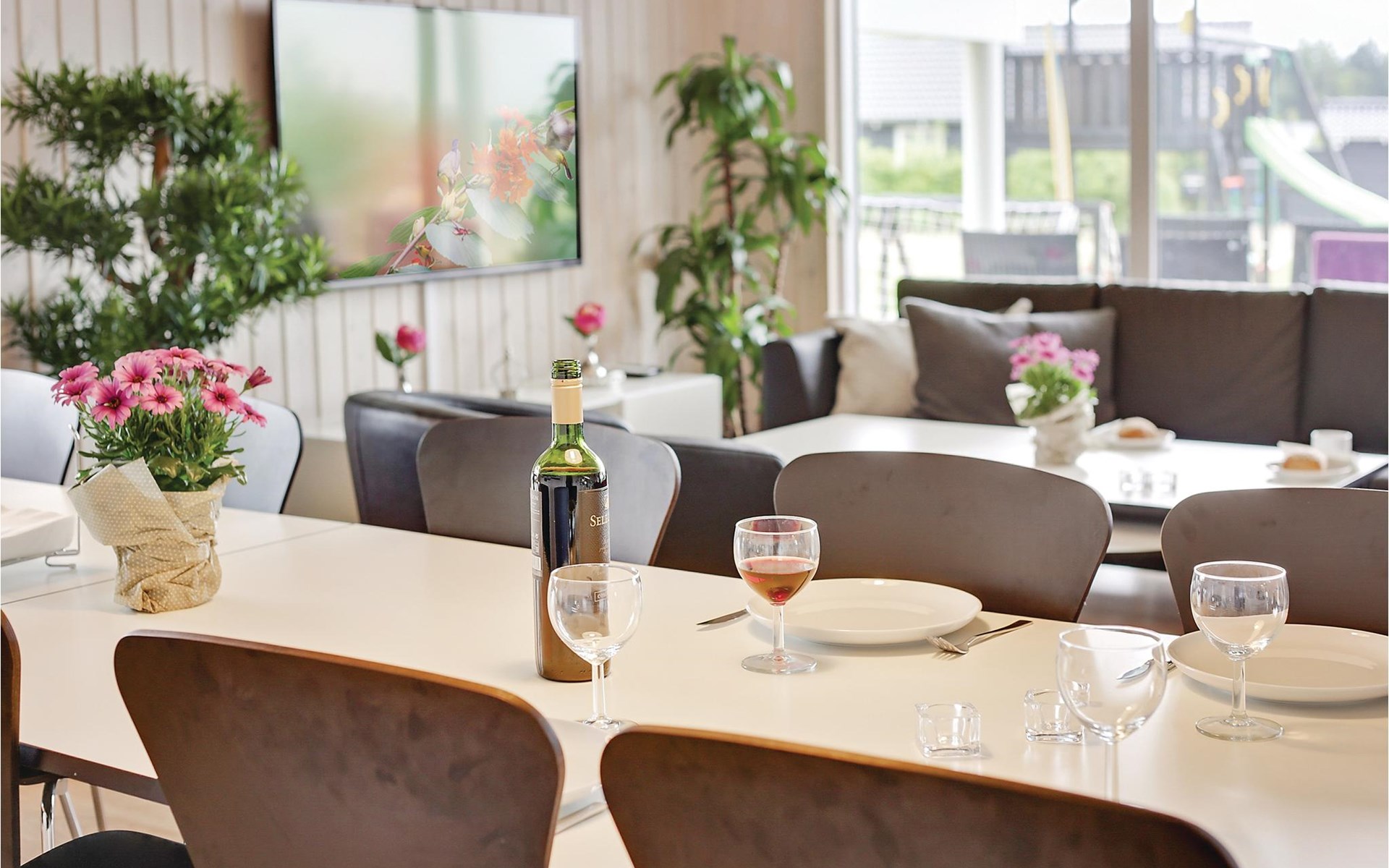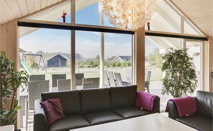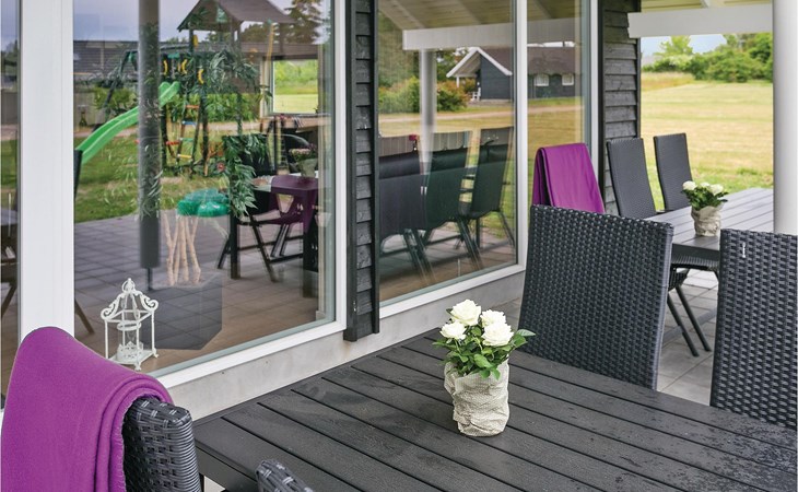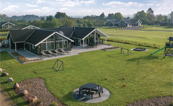 Erleben Sie eine entspannte Auszeit an der Hjelm Bucht. Dieses großzügige Ferienhaus bietet den idealen Rahmen für gemeinsame Urlaubstage mit der Familie oder Freunden, umgeben von Natur und nicht weit vom kinderfreundlichen Strand entfernt. Treten Sie ein in das helle Haus mit seiner offenen Architektur und den großen Fensterfronten. Kochen Sie gemeinsam in der gut ausgestatteten Küche, servieren Sie Ihre Mahlzeiten am langen Esstisch und lassen Sie den Blick durch die hohen Fenster schweifen. Machen Sie es sich in der Sofaecke gemütlich oder genießen Sie am Kaminofen ruhige Abende. Für Unterhaltung sorgen Tischtennisplatte, Billardtisch und Tischkicker im Aktivitätsraum. Ein weiteres Highlight ist der hauseigene Wellnessbereich mit Pool und Wasserrutsche sowie Whirlpool und Sauna für entspannte Stunden.