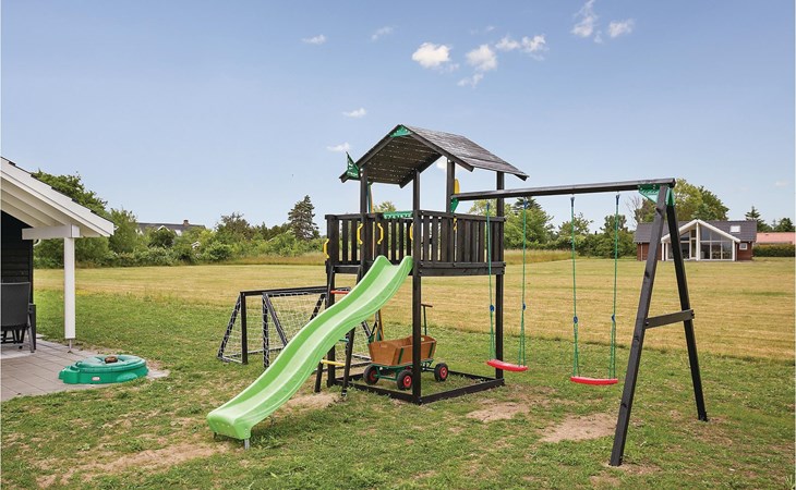 Verbringen Sie sonnige Tage auf der großzügigen Terrasse mit Gartenmöbeln, Grill und viel Platz zum Sonnen. Ihre Kinder finden Abwechslung auf dem großen Spielplatz mit Schaukel, Rutsche und Fußballtoren. Auch ein kleiner Sandkasten steht bereit.