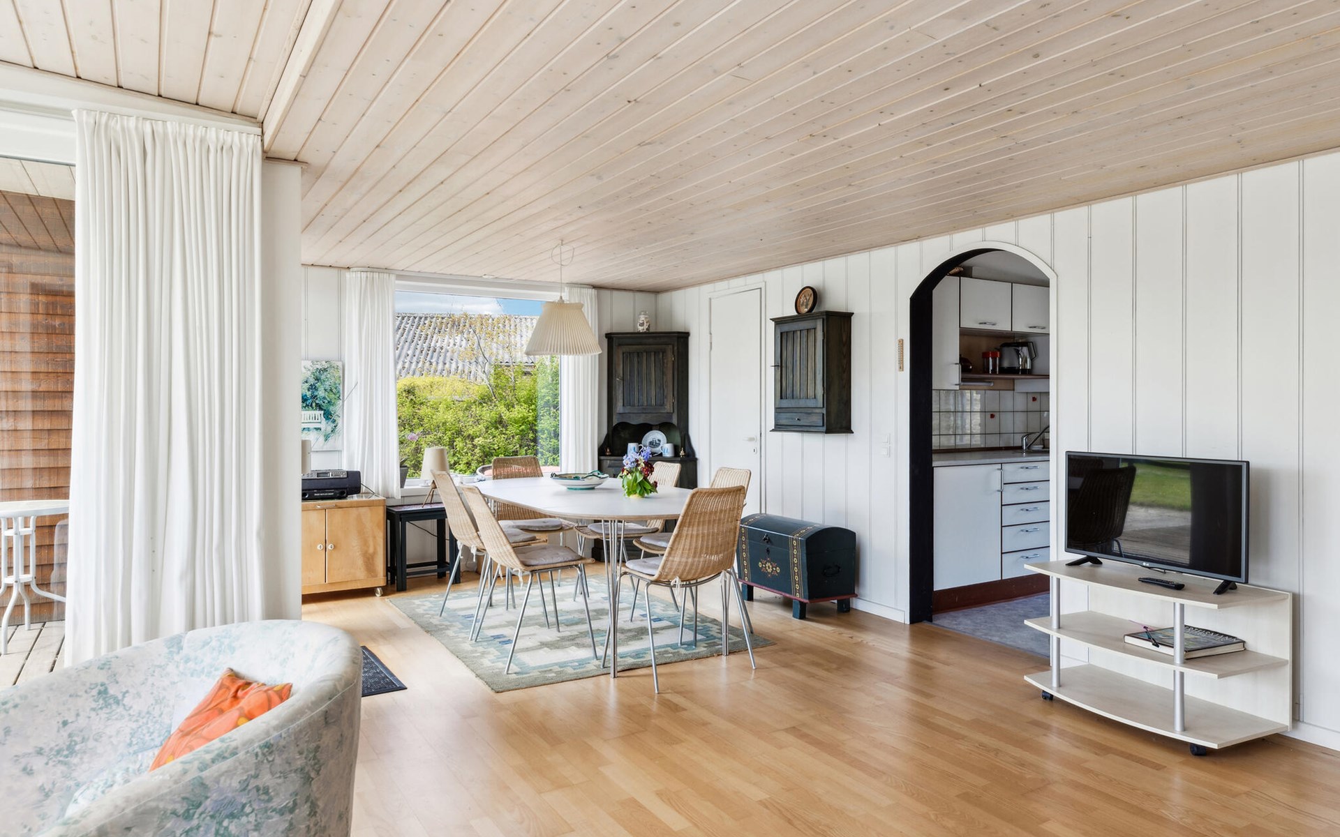 Ein freundlich gestaltetes Ferienhaus erwartet Sie, das Ihnen alles bietet, was Sie für einen gelungenen Aufenthalt benötigen. Genießen Sie die ruhige Lage und den schnellen Zugang zum Strand. Die großen Fensterflächen gestalten den Wohnraum hell und einladend. Machen Sie es sich in der gemütlichen Sitzecke bequem oder nehmen Sie gemeinsam am Esstisch Platz. Ihre Mahlzeiten bereiten Sie in der praktischen, separaten Küche zu.